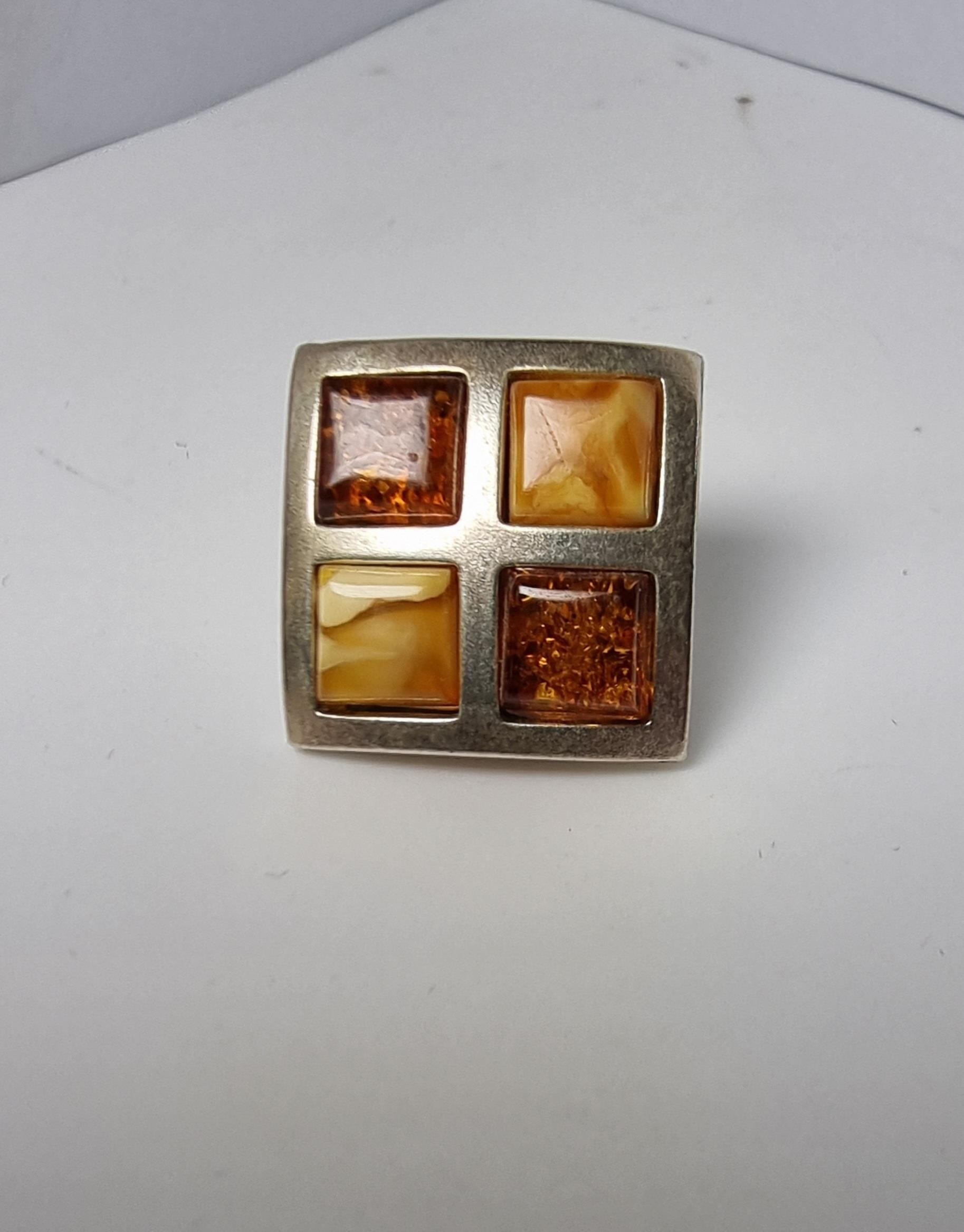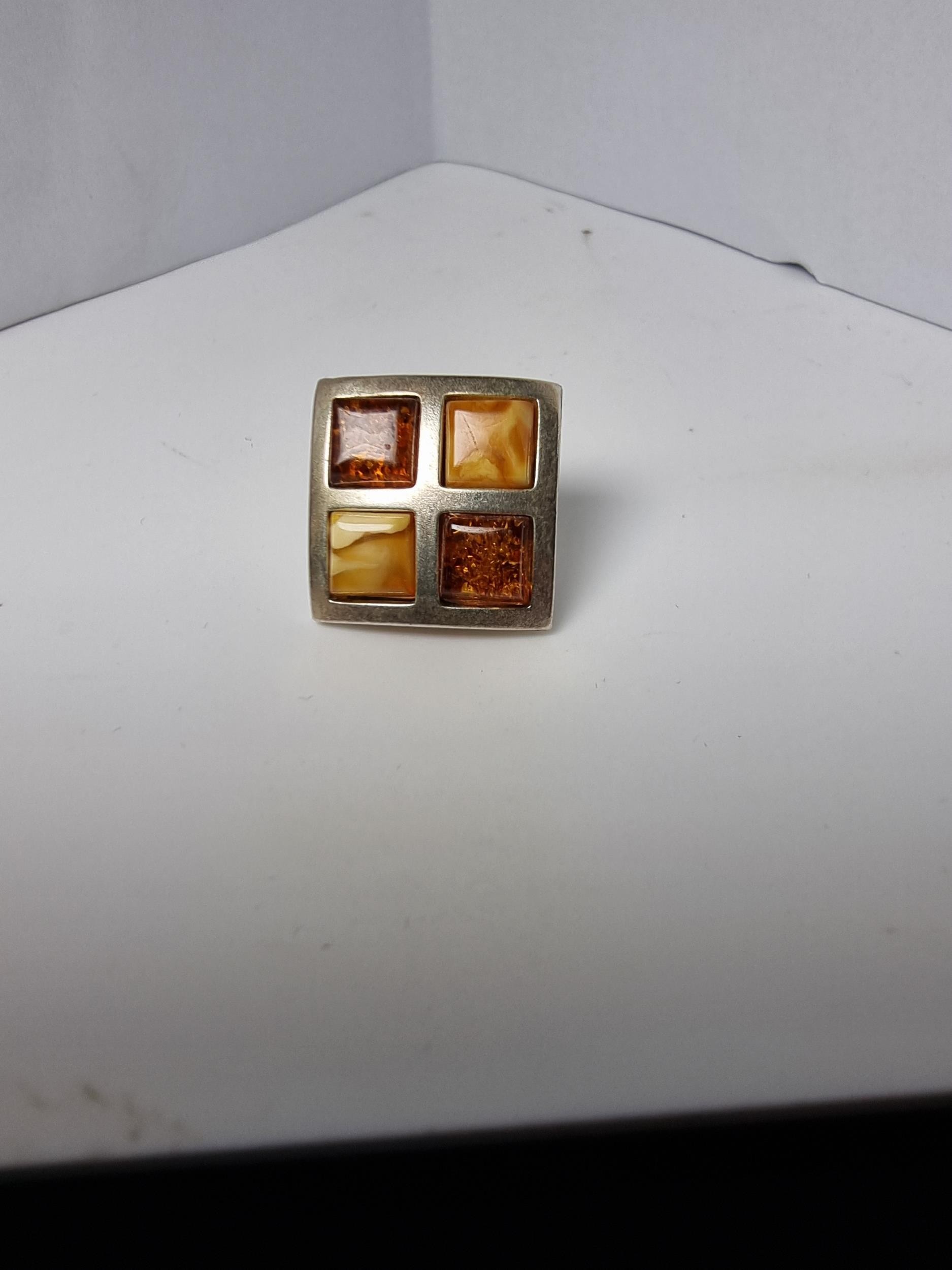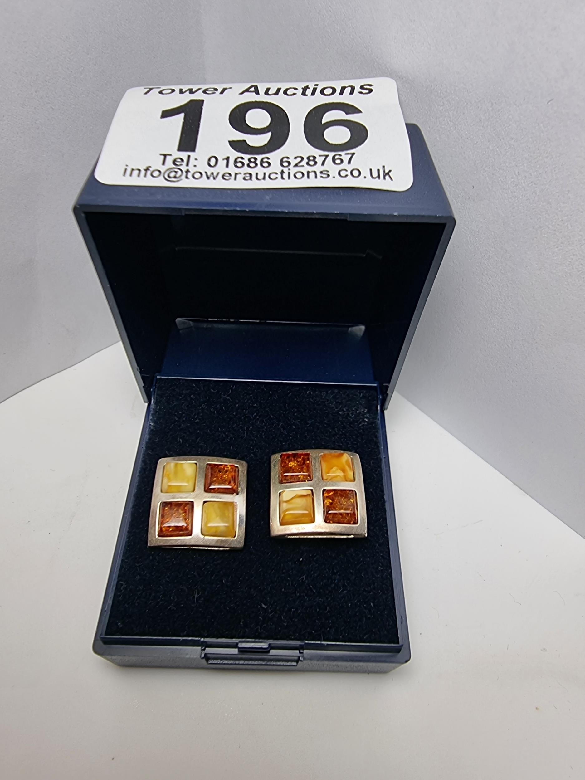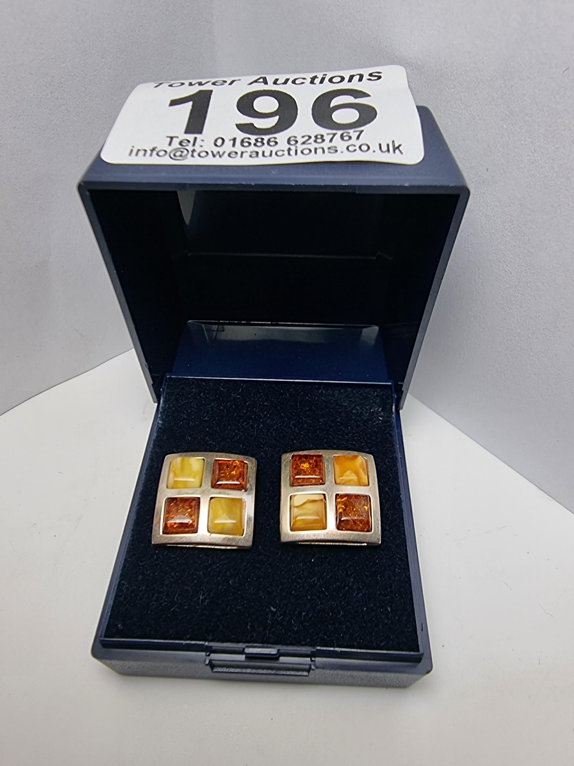 Stunning hallmarked 925 silver square earrings beautifully inset with Butterscotch amber and Baltic amber in a square chequered design. Both in good condition complete with butterfly backs.