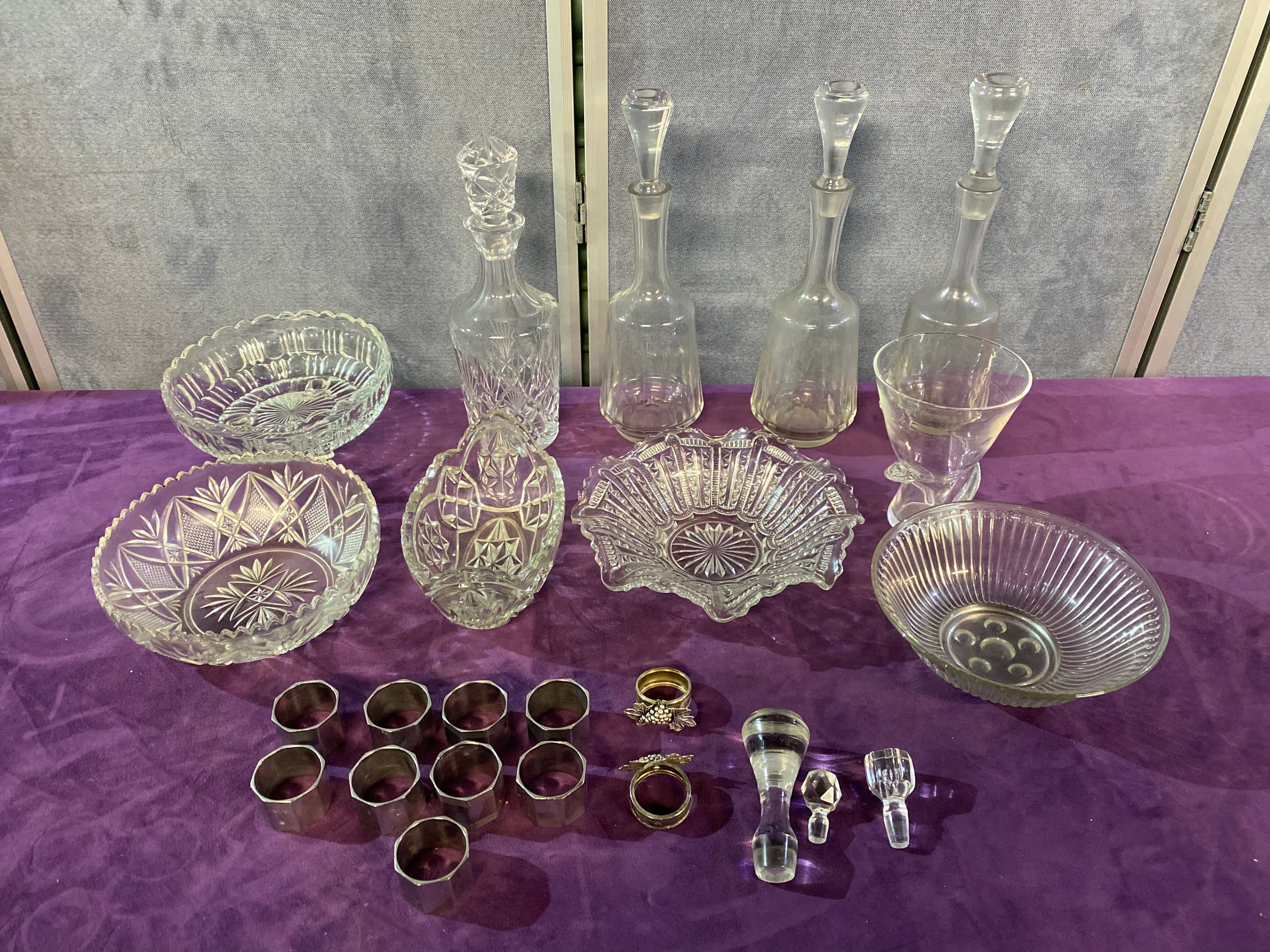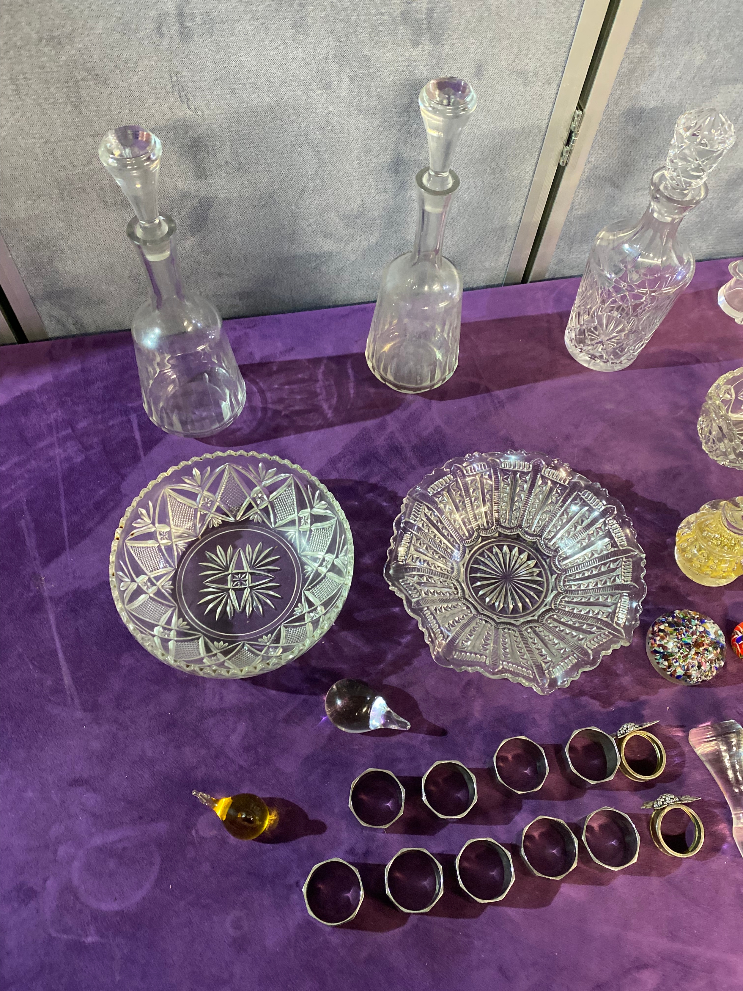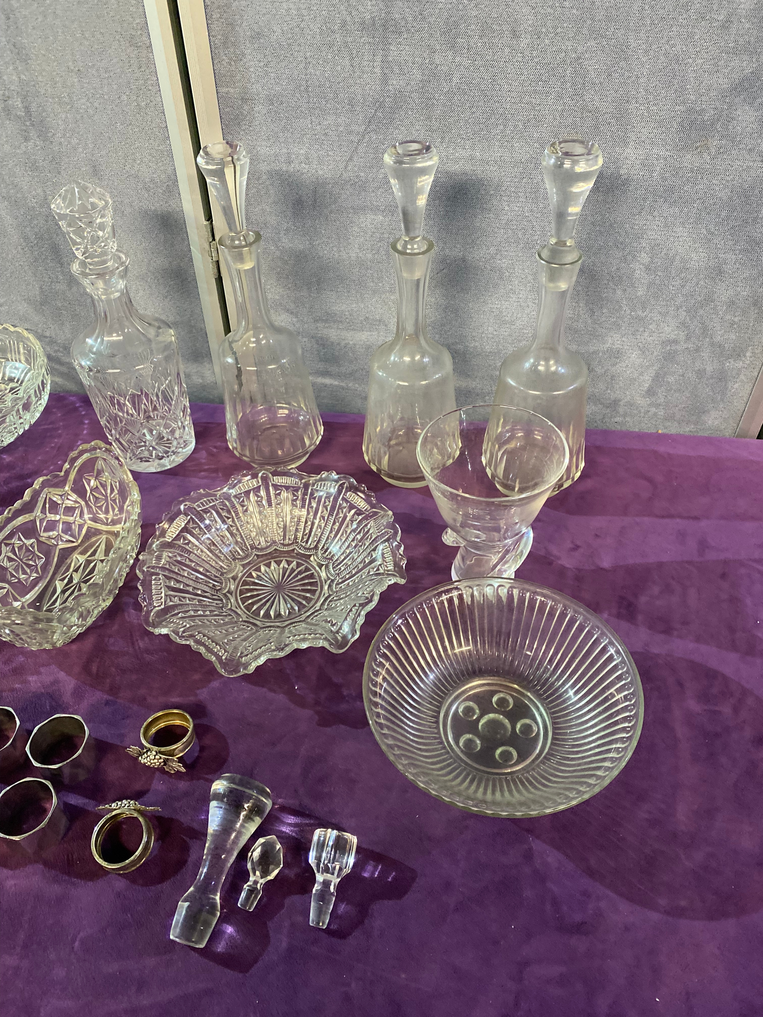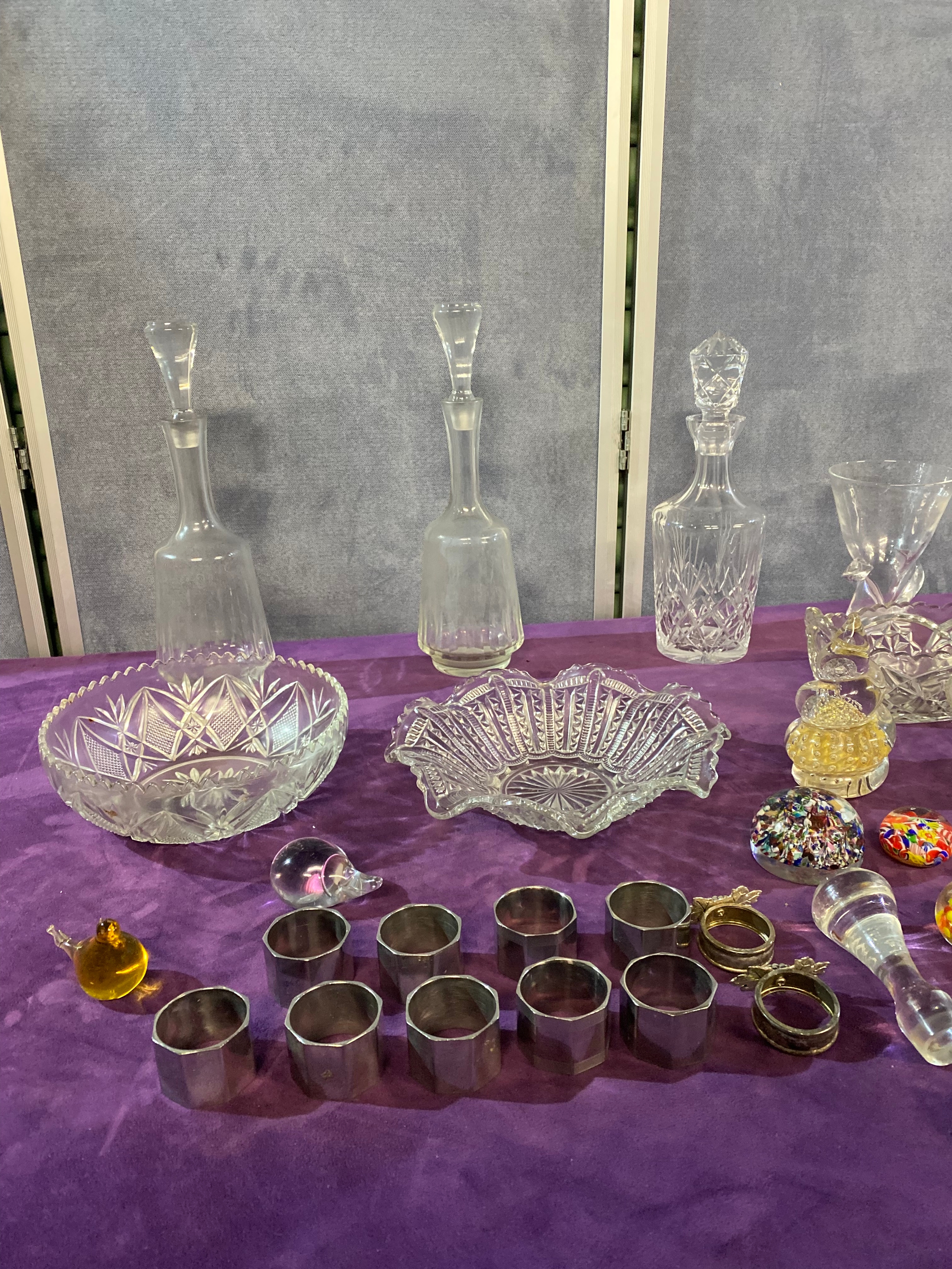 A quantity of Collectable glasswares including, Bowls, Decanters, Paper weights and some Napkin rings