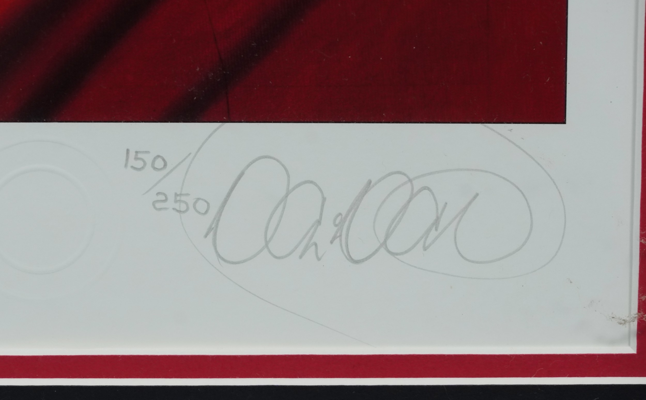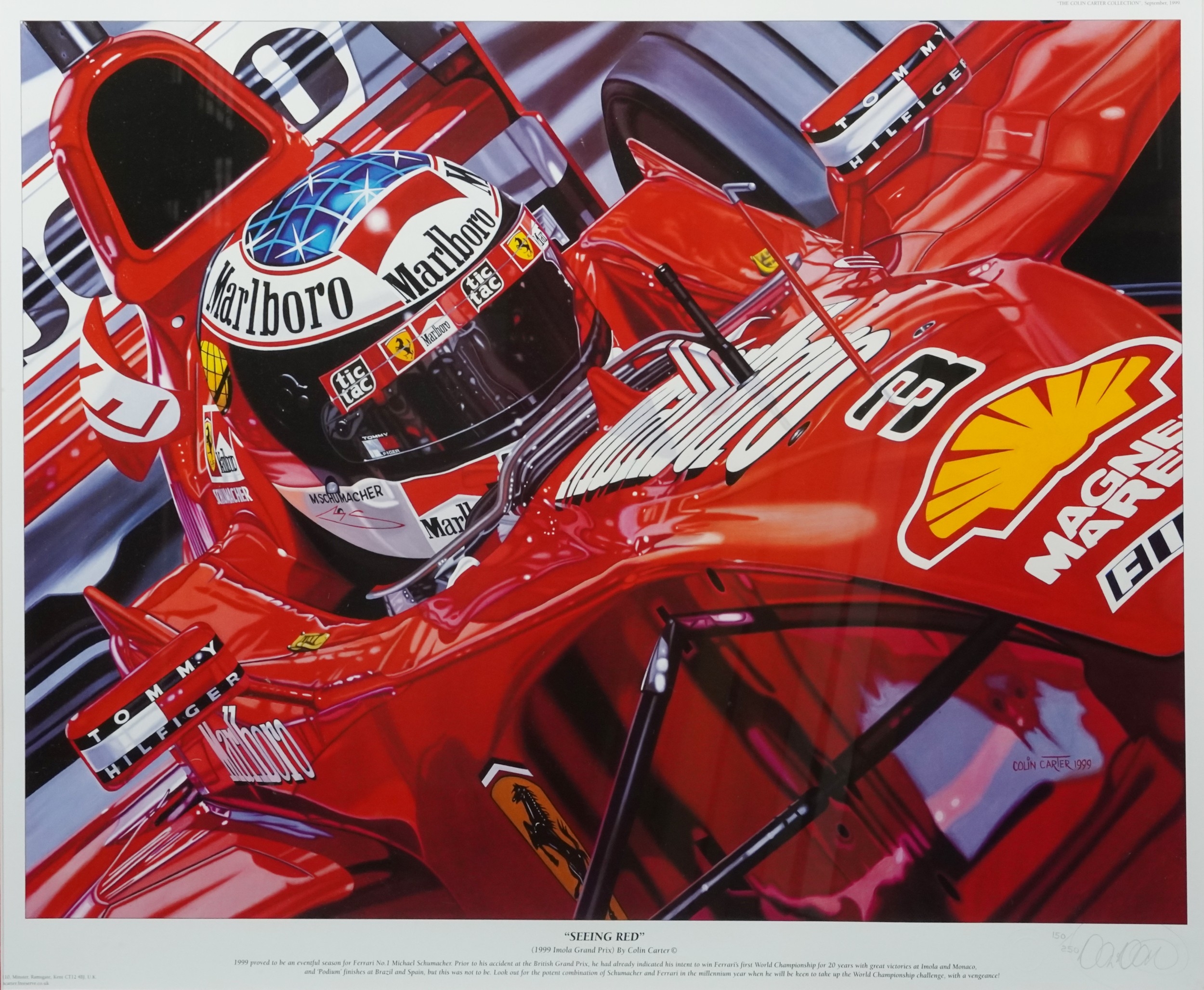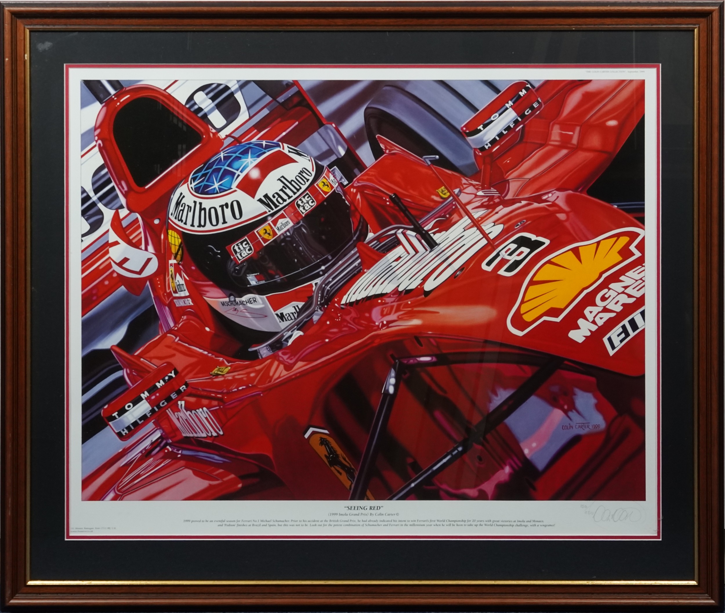 Colin Carter - Seeing Red (1999 Imola Grand Prix), a signed and editioned print 150/250, framed and glazed, 68cm x 86cm.