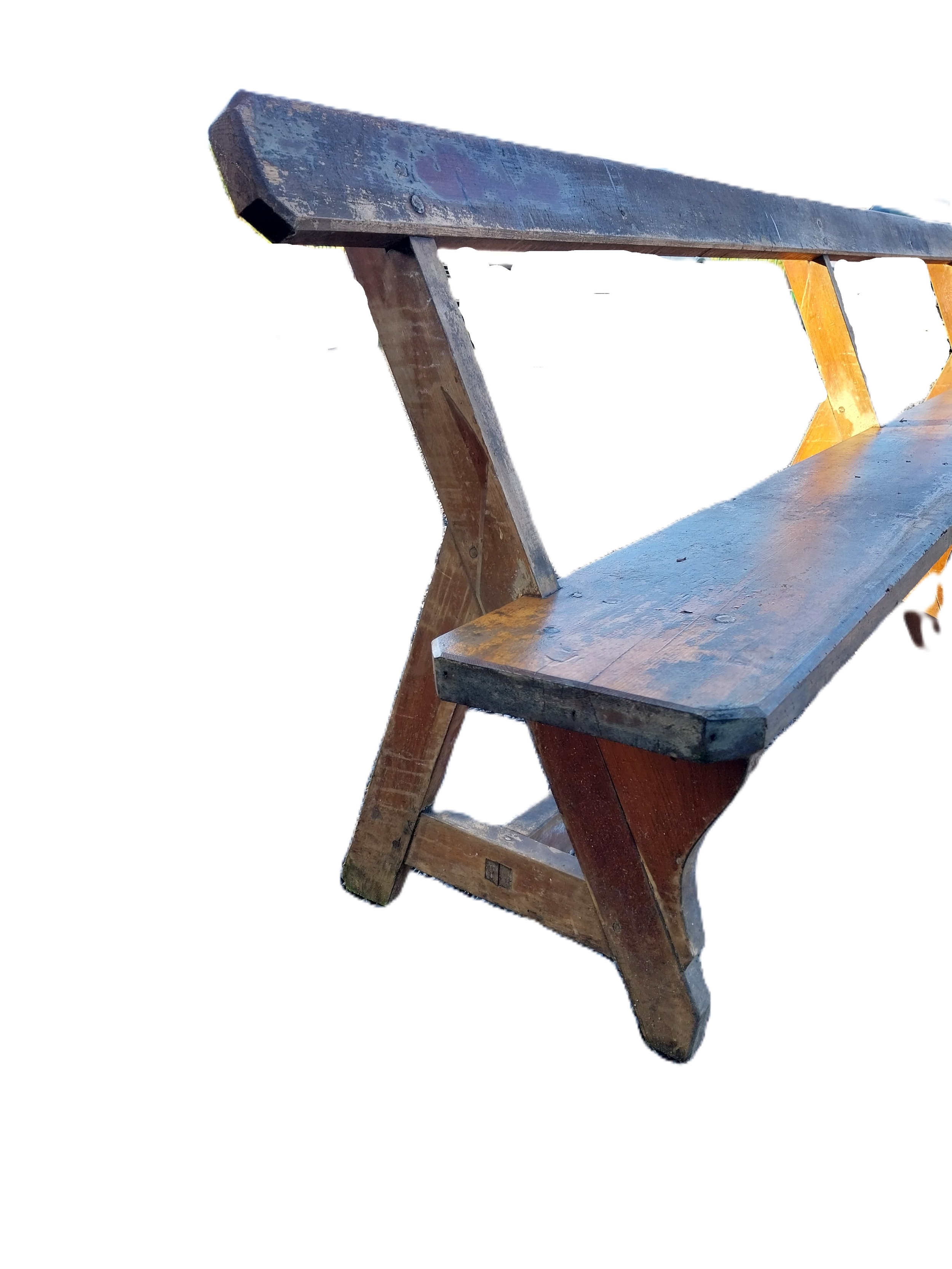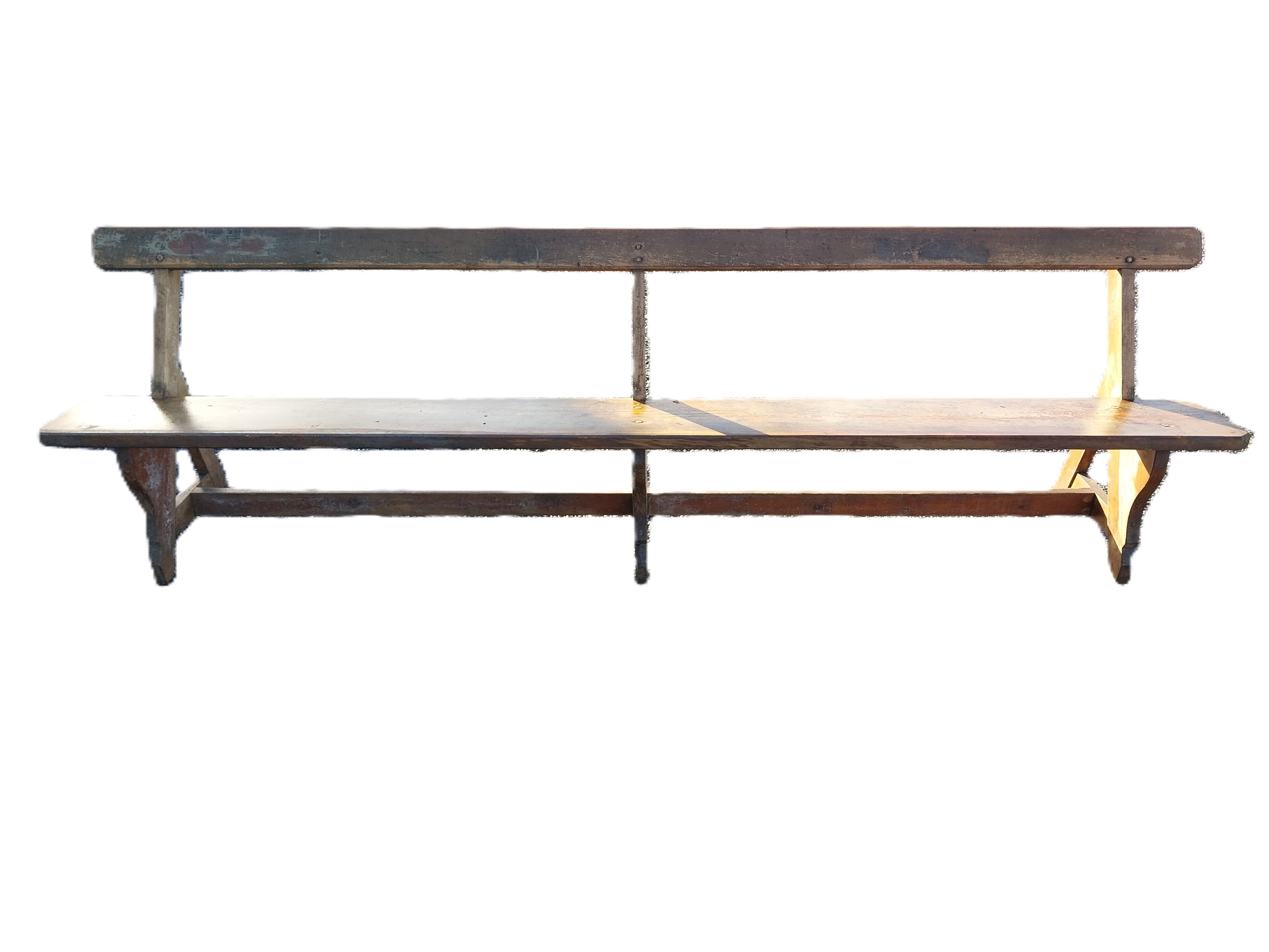 19th C. scumbled pine bench. {85 cm H x 290 cm W x 50 cm D}.