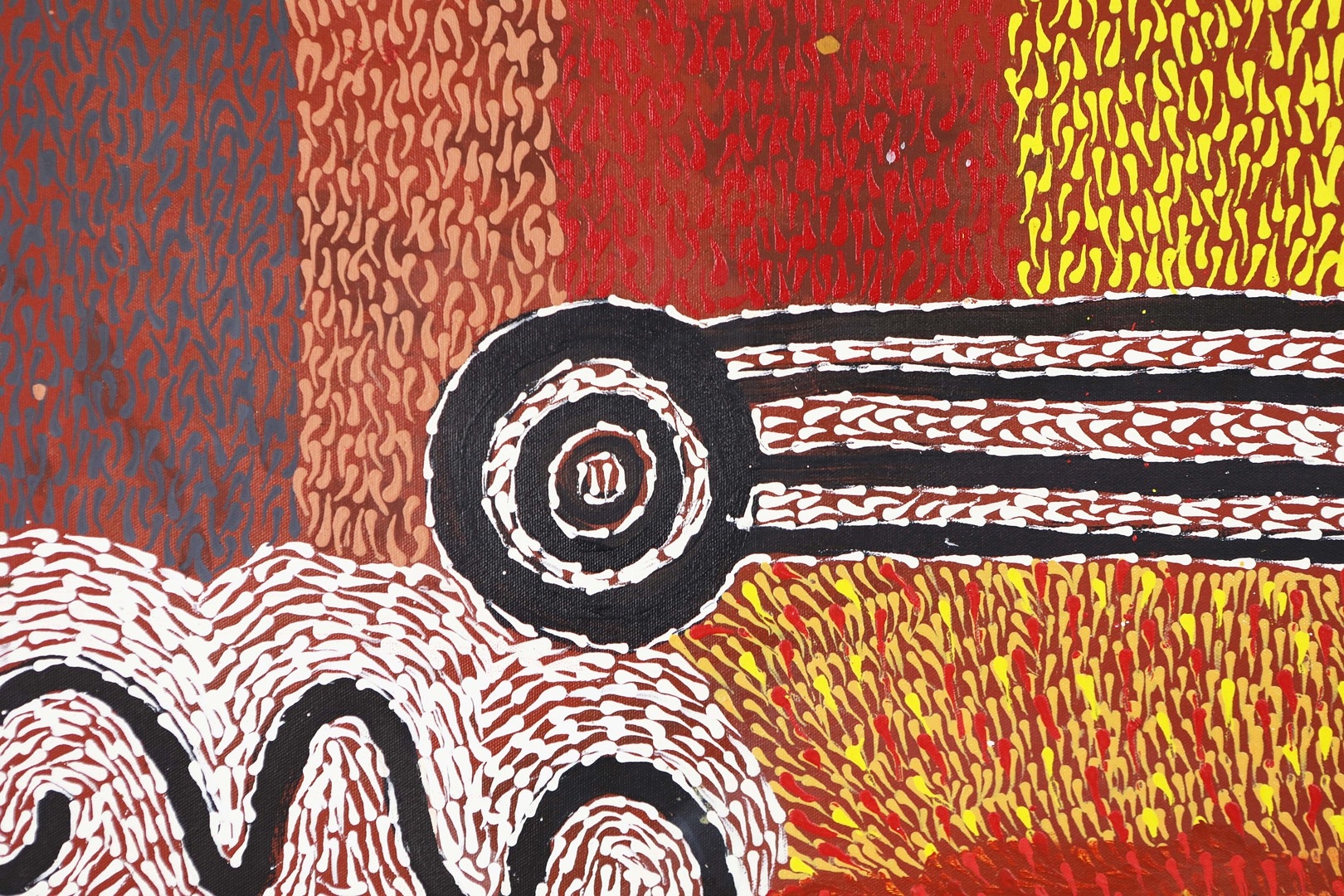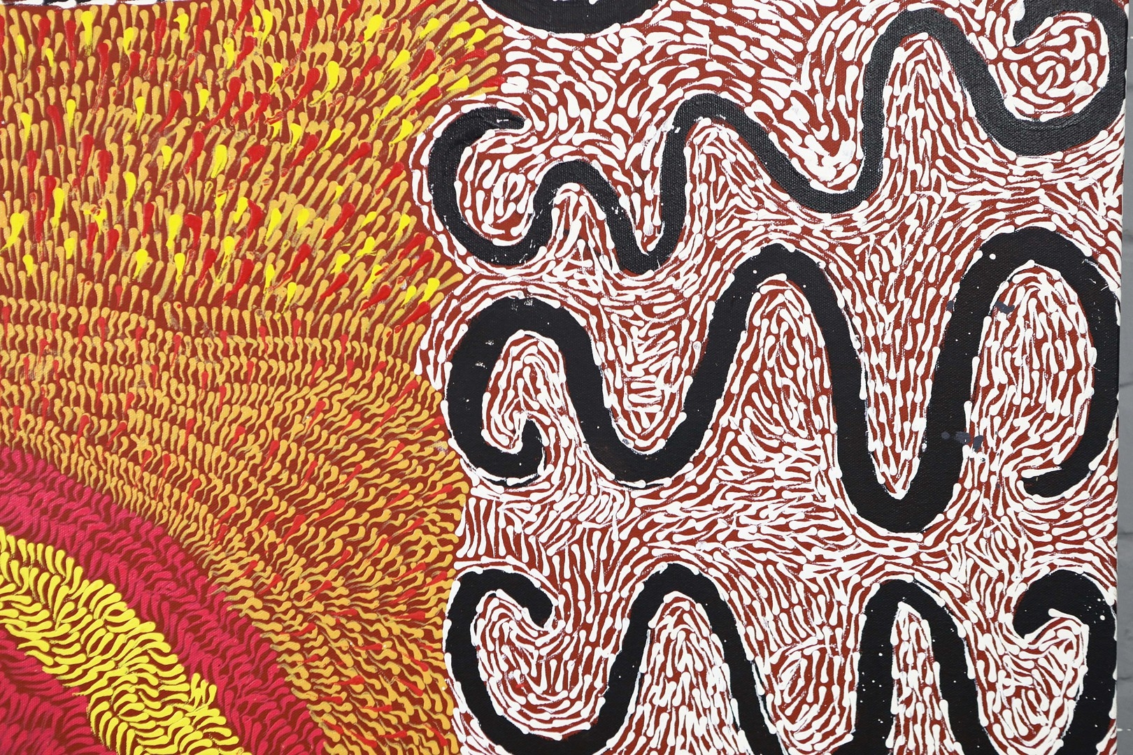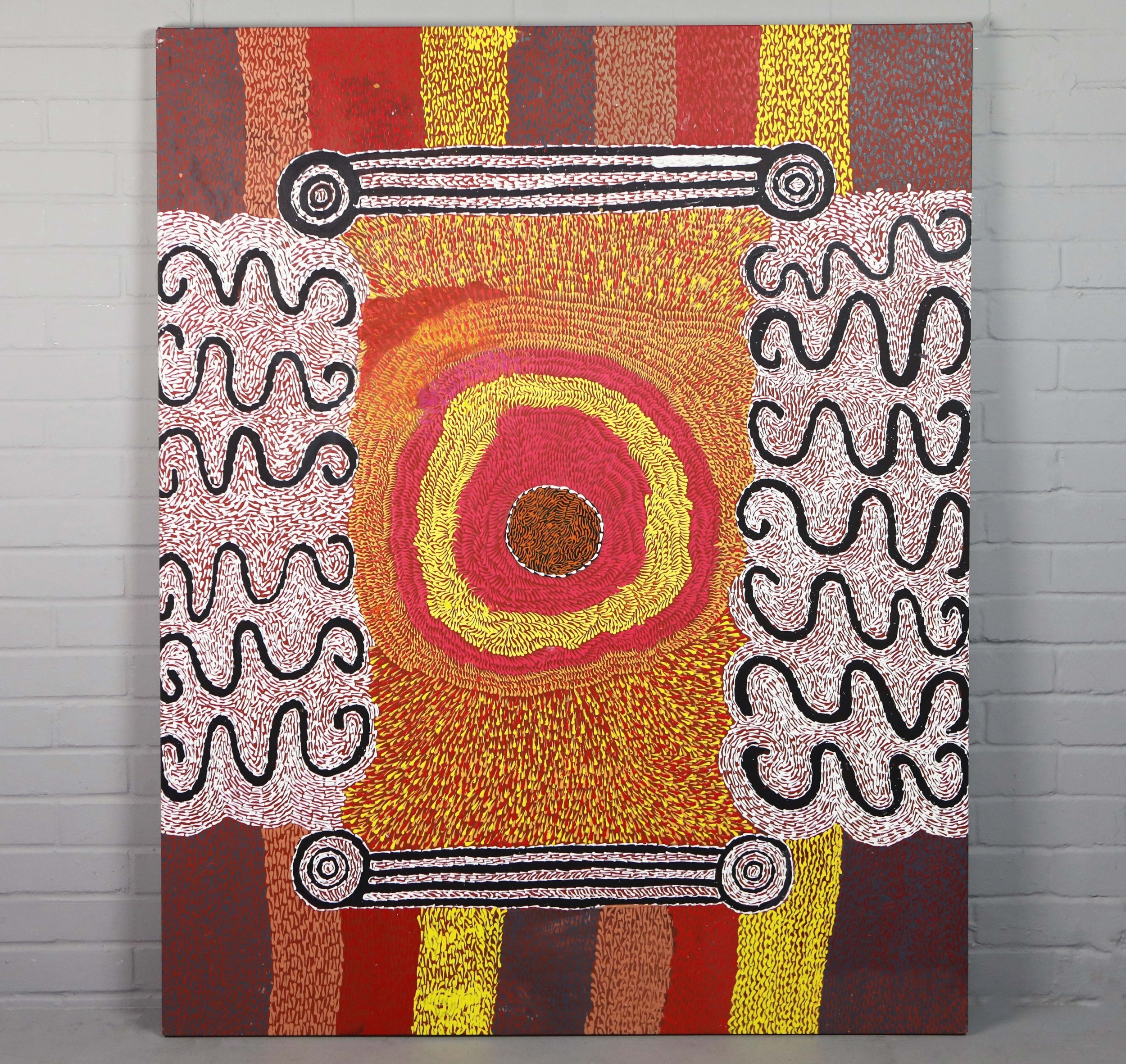 TESS NAPALJARRI ROSS (20TH CENTURY AUSTRALIAN ABORIGINAL). CEREMONY. (d) oil on canvas, 147cm x 120cm. (Subject to ARR - see Buyers Conditions).