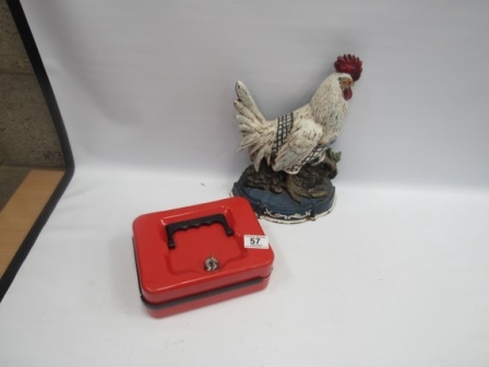 Very Large Heavy Old Cockerel Door Stop & Cash box