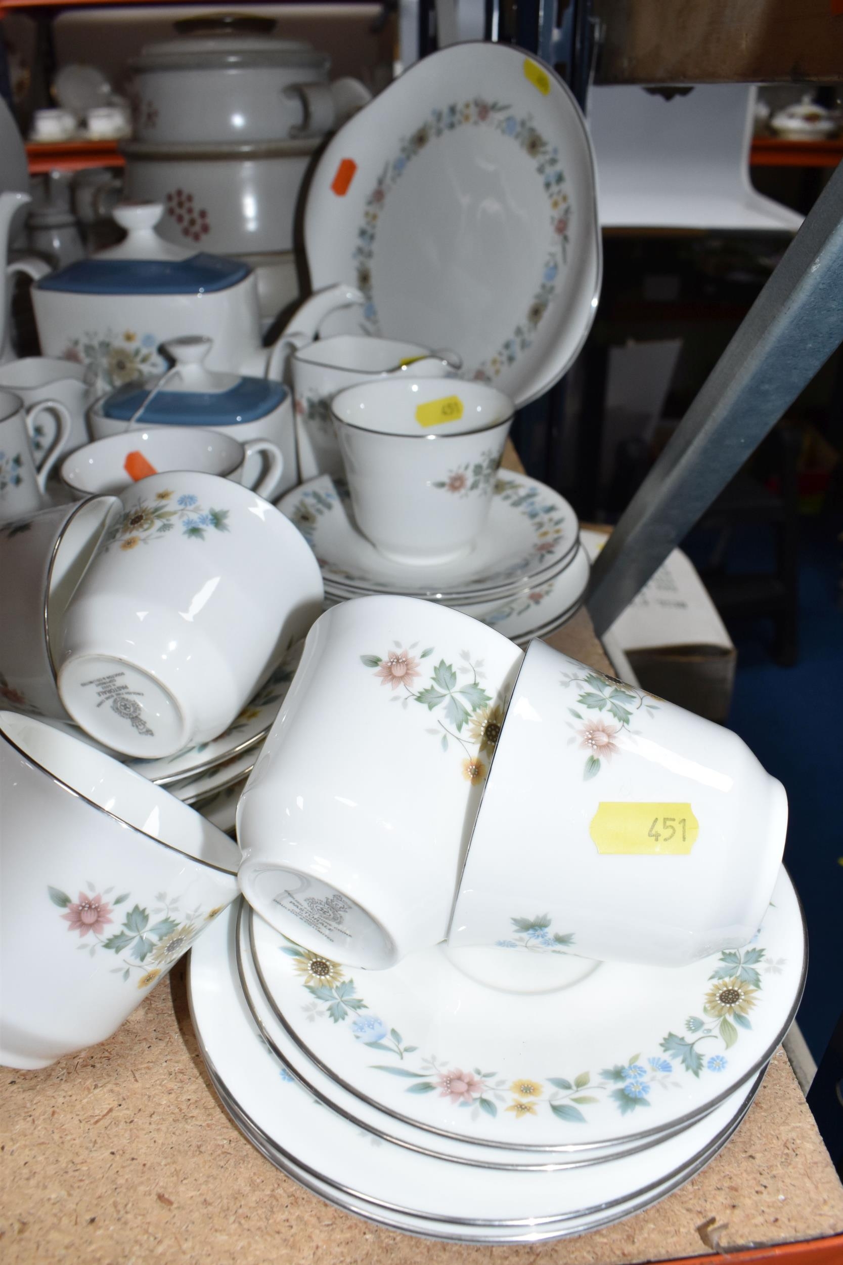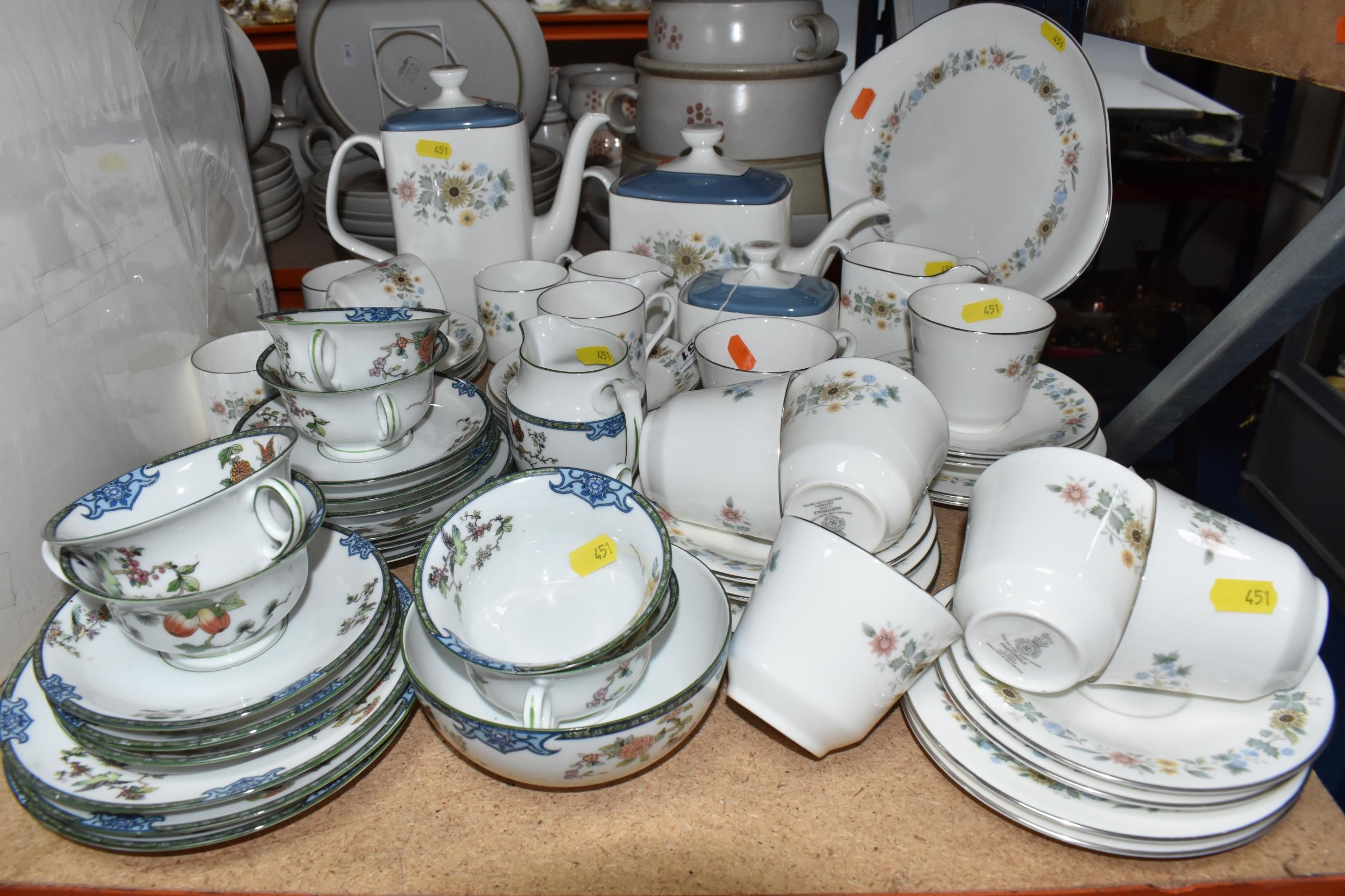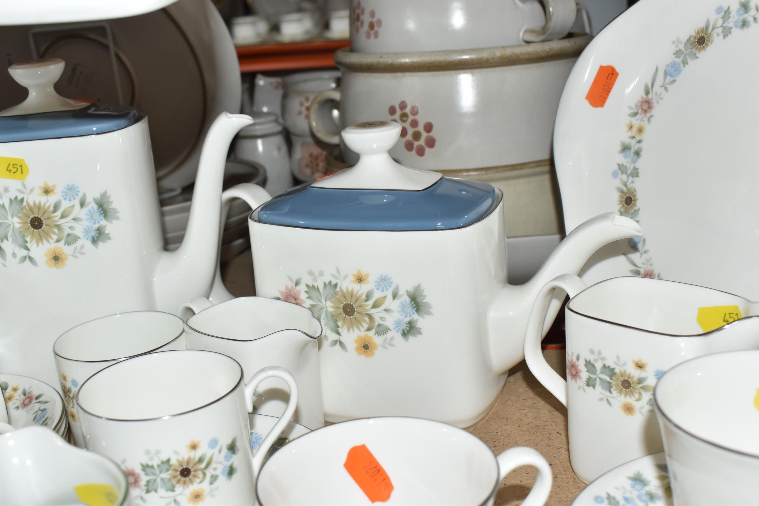 A LARGE GROUP OF ROYAL DOULTON TEA AND COFFEE WARES AND CONTINENTAL TEA WARES comprising a group of Royal Doulton 'Pastorale' tea and coffee wares comprising a teapot, seven tea cups, six tea saucers, and six side plates, a milk jug, a coffee pot, five coffee cups, six saucers, a cream jug, a sugar bowl, a lidded sugar jar, and a double handled cake plate, and a group of Czech Altrohlau tea wares comprising six teacups, six saucers, six side plates, milk jug, and a slop bowl (qty) (Condition Report: items appear in fair condition)