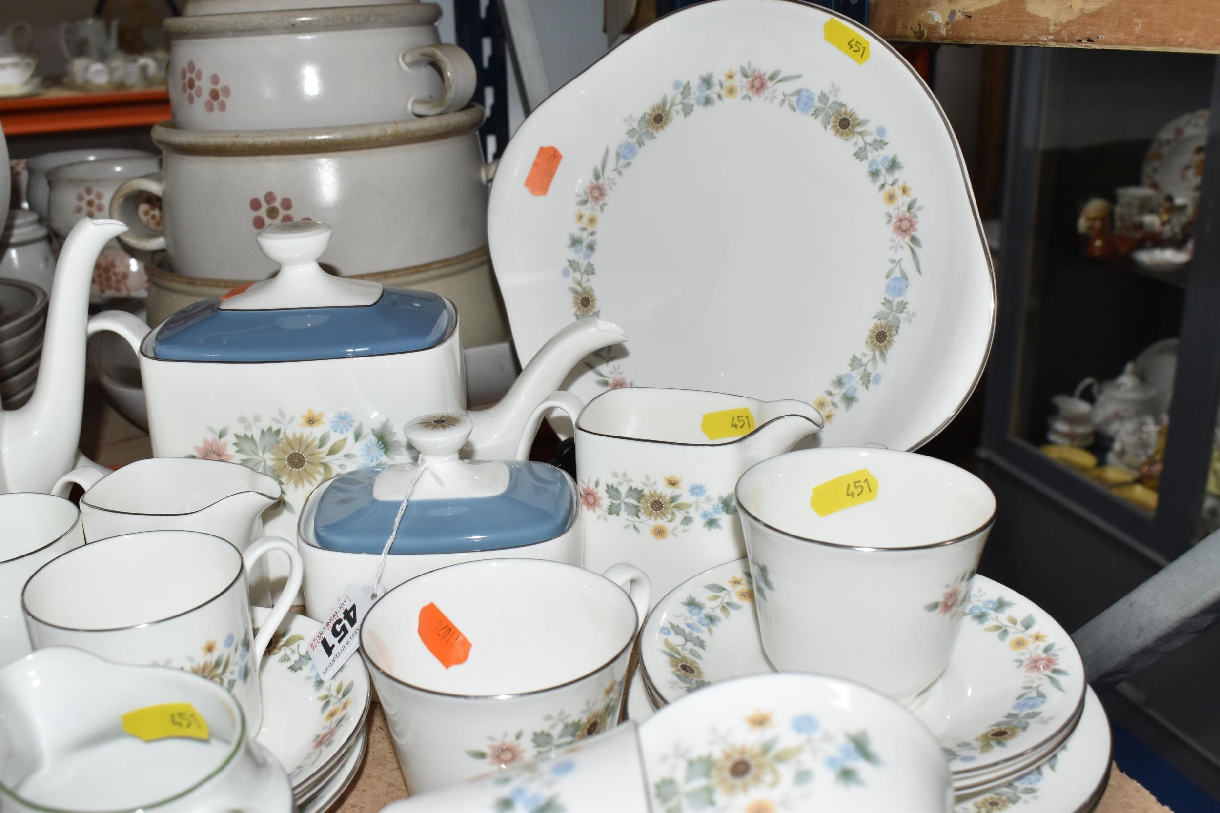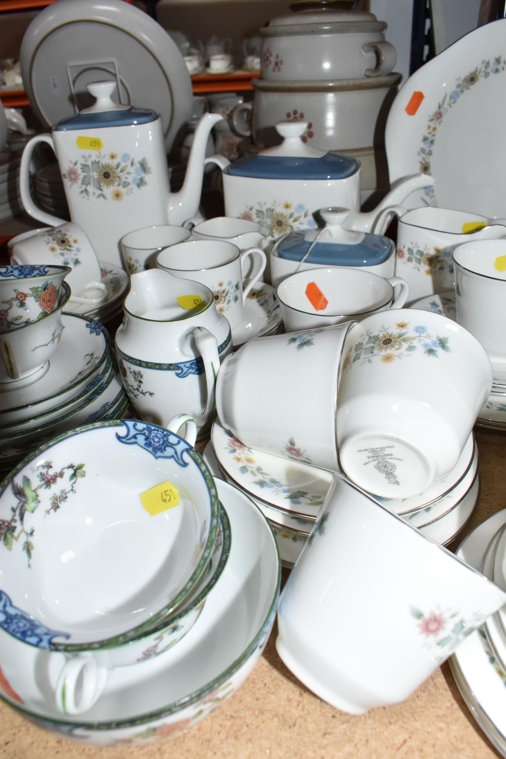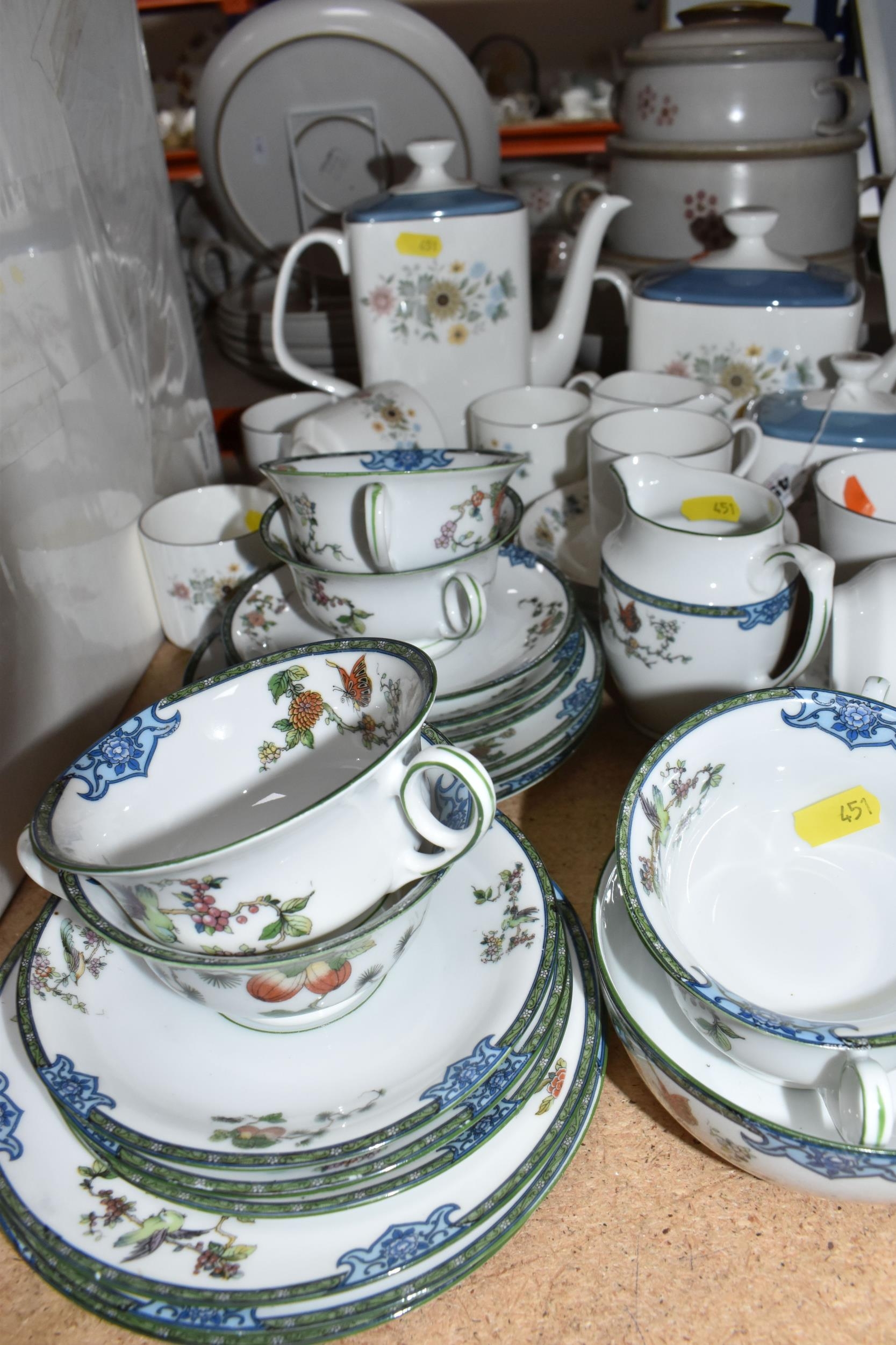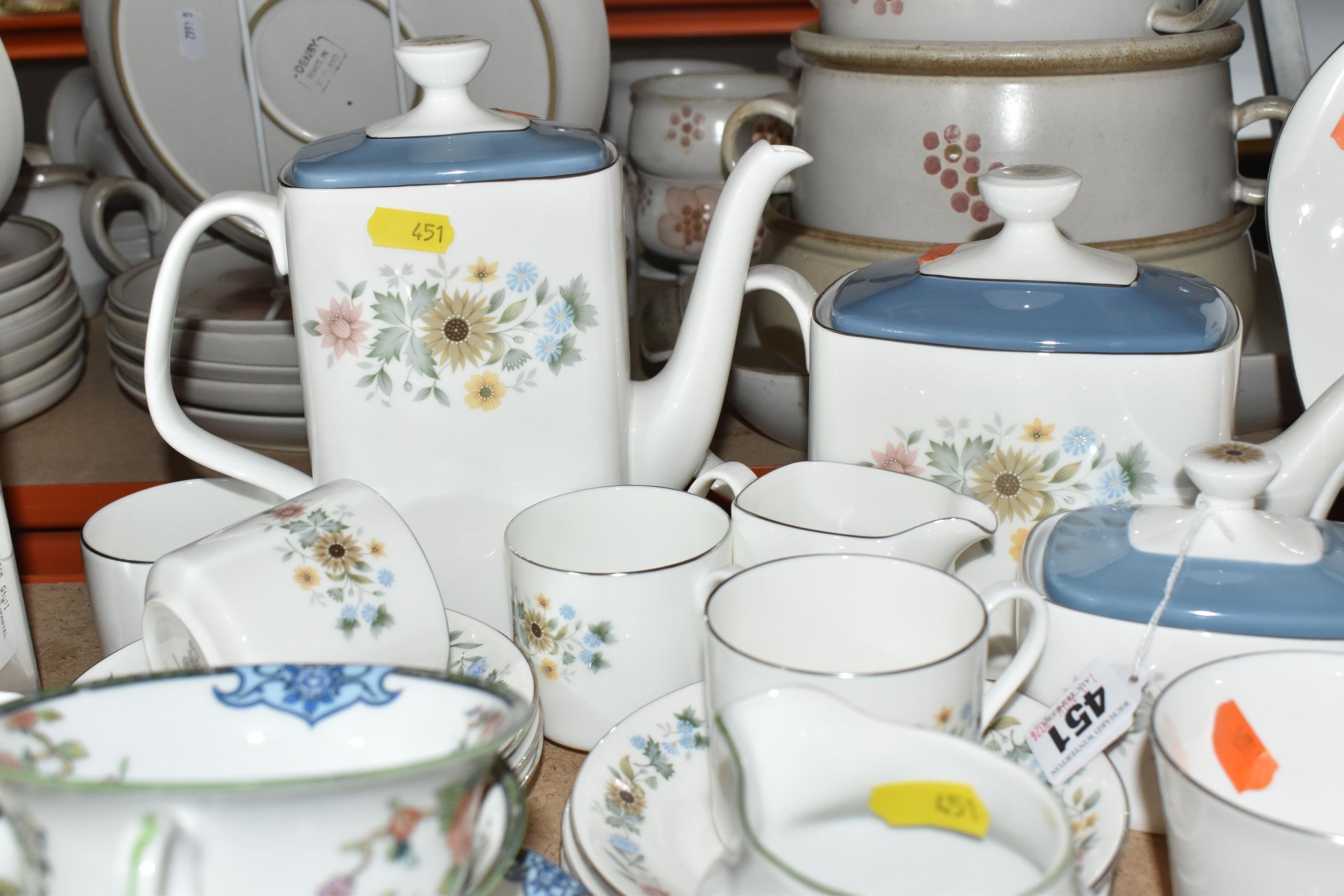A LARGE GROUP OF ROYAL DOULTON TEA AND COFFEE WARES AND CONTINENTAL TEA WARES comprising a group of Royal Doulton 'Pastorale' tea and coffee wares comprising a teapot, seven tea cups, six tea saucers, and six side plates, a milk jug, a coffee pot, five coffee cups, six saucers, a cream jug, a sugar bowl, a lidded sugar jar, and a double handled cake plate, and a group of Czech Altrohlau tea wares comprising six teacups, six saucers, six side plates, milk jug, and a slop bowl (qty) (Condition Report: items appear in fair condition)