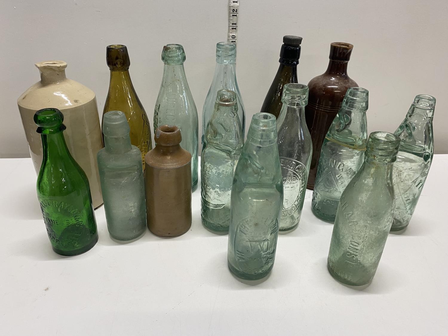 A selection of assorted antique bottles and ceramics. shipping unavailable.