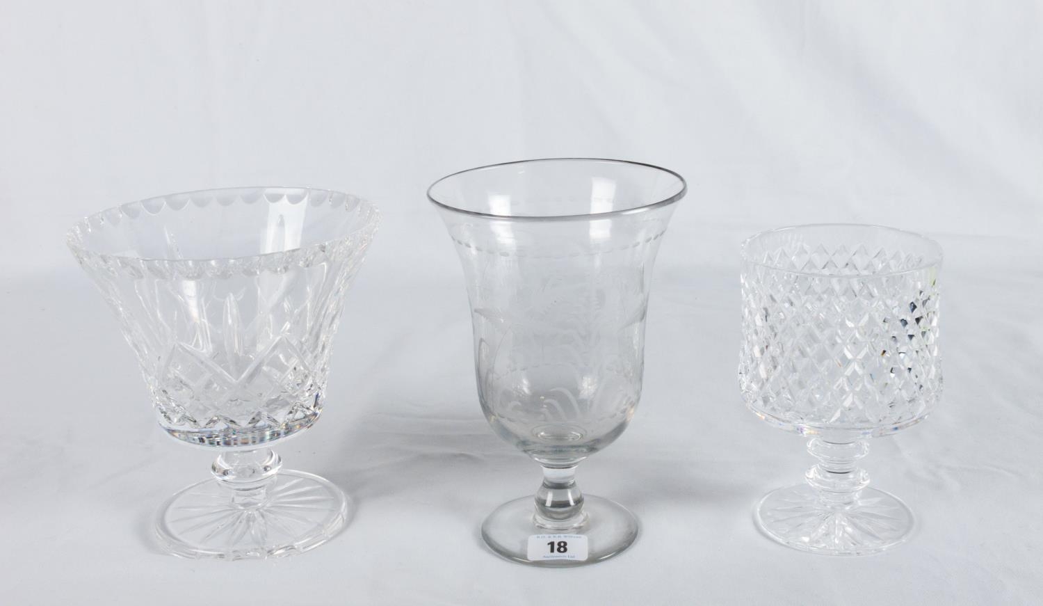 TWO IRISH CAVAN CRYSTAL STEMMED VASES & 1 OTHER