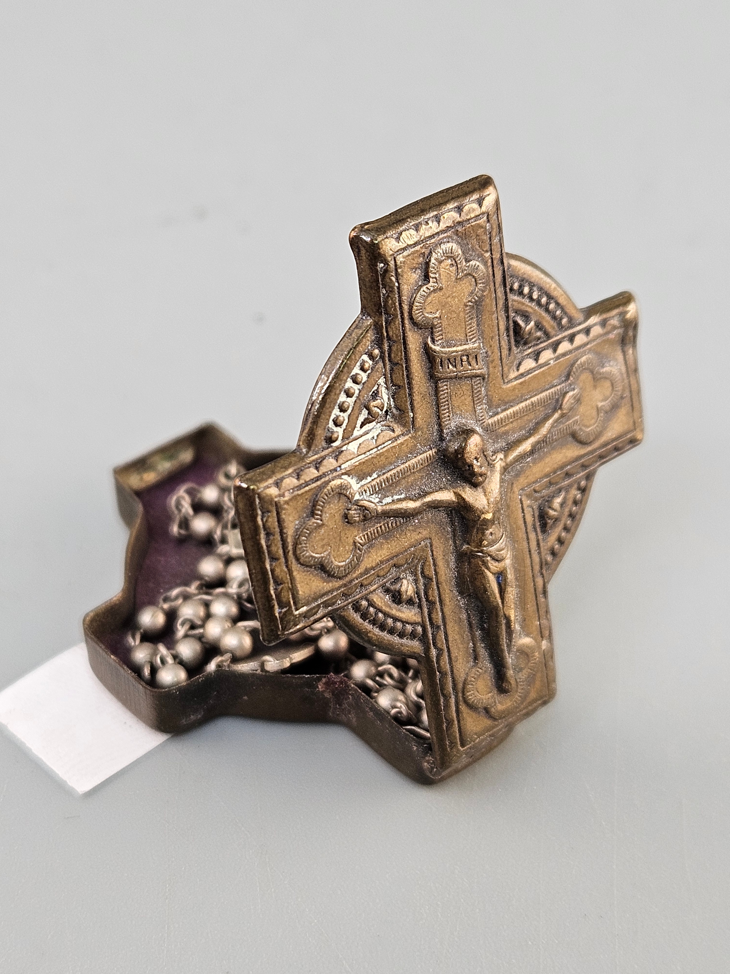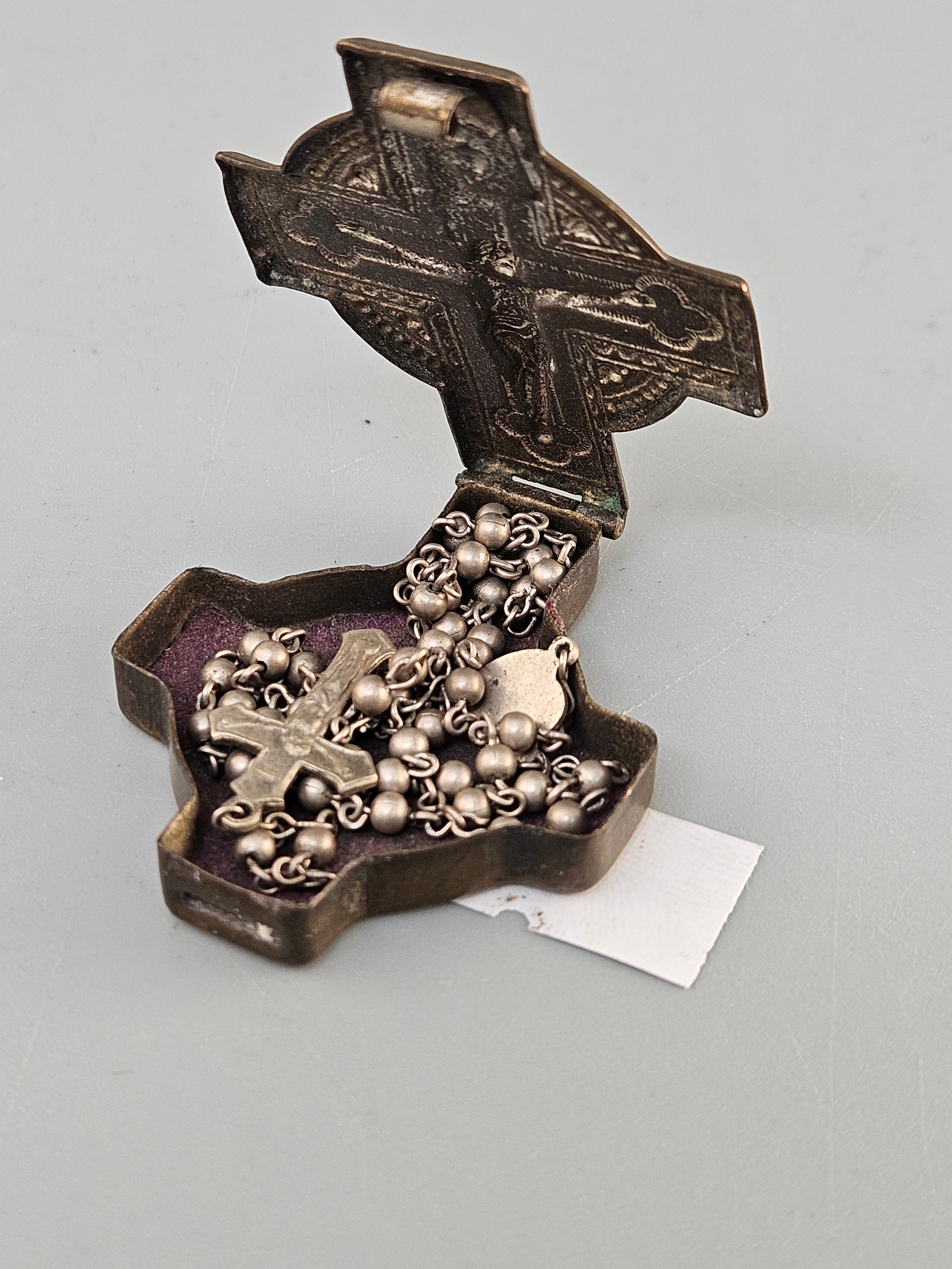 Antique Religious Box with Jesus & Rosary beadsgerman