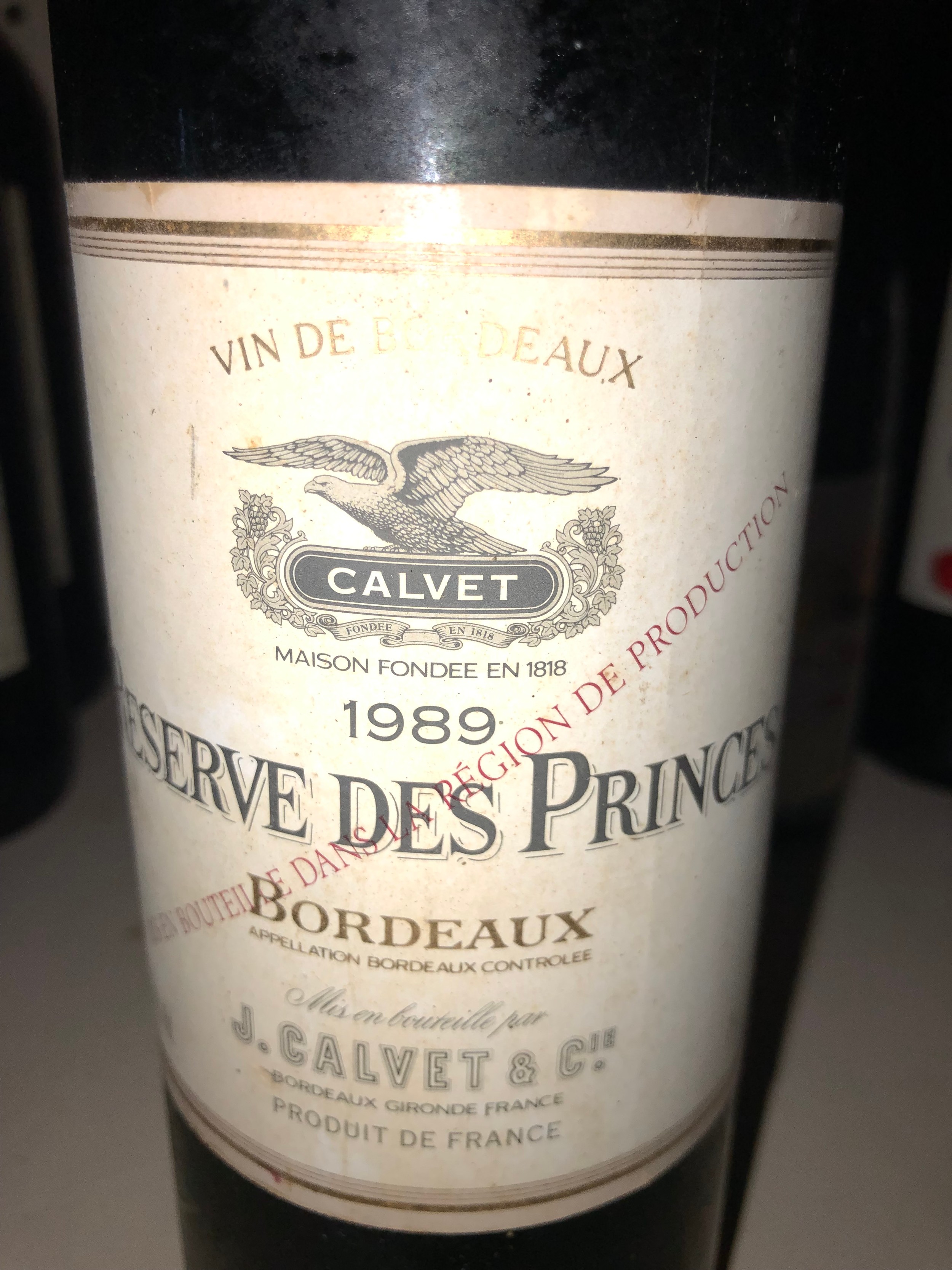 1 bottle of 1989 Calvet Reserve Des Princes Bordeaux, France...