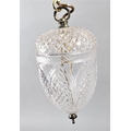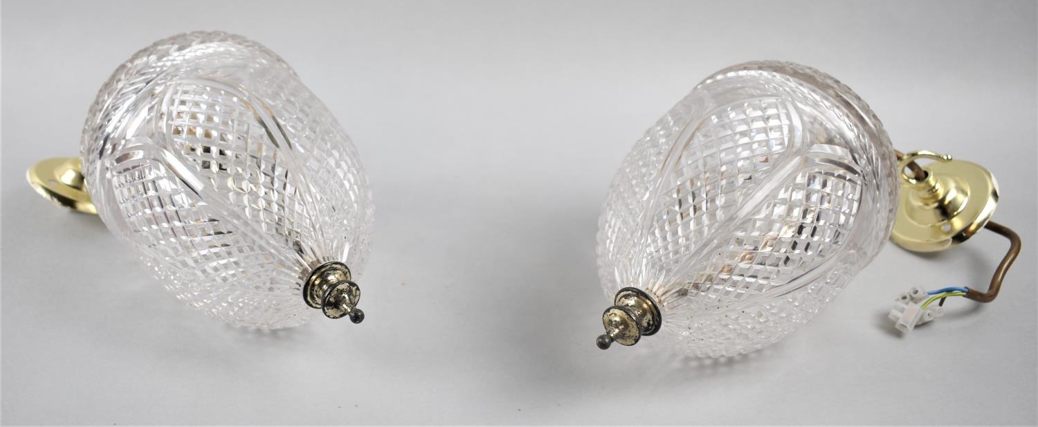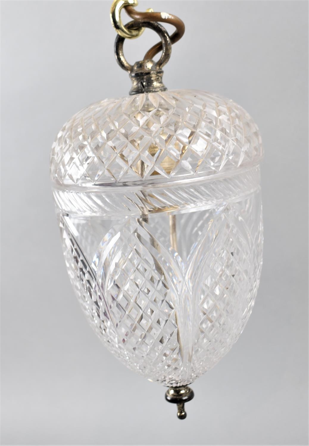 A Pair of Ceiling Hanging Cut Glass Light Fittings of Acorn Form, Each 23cm high