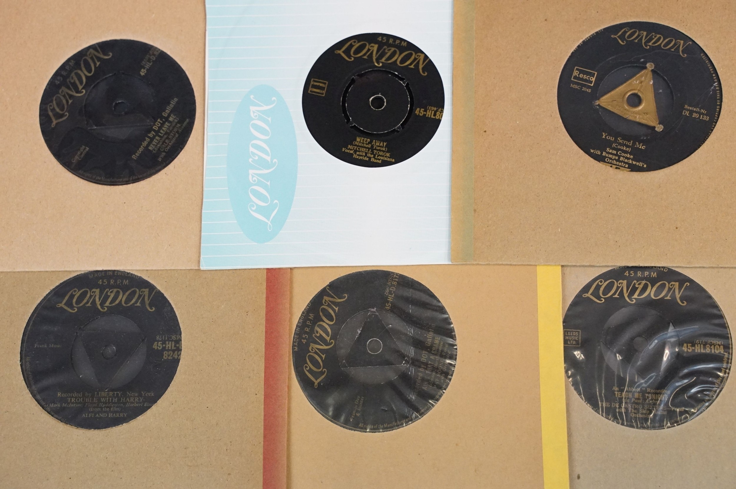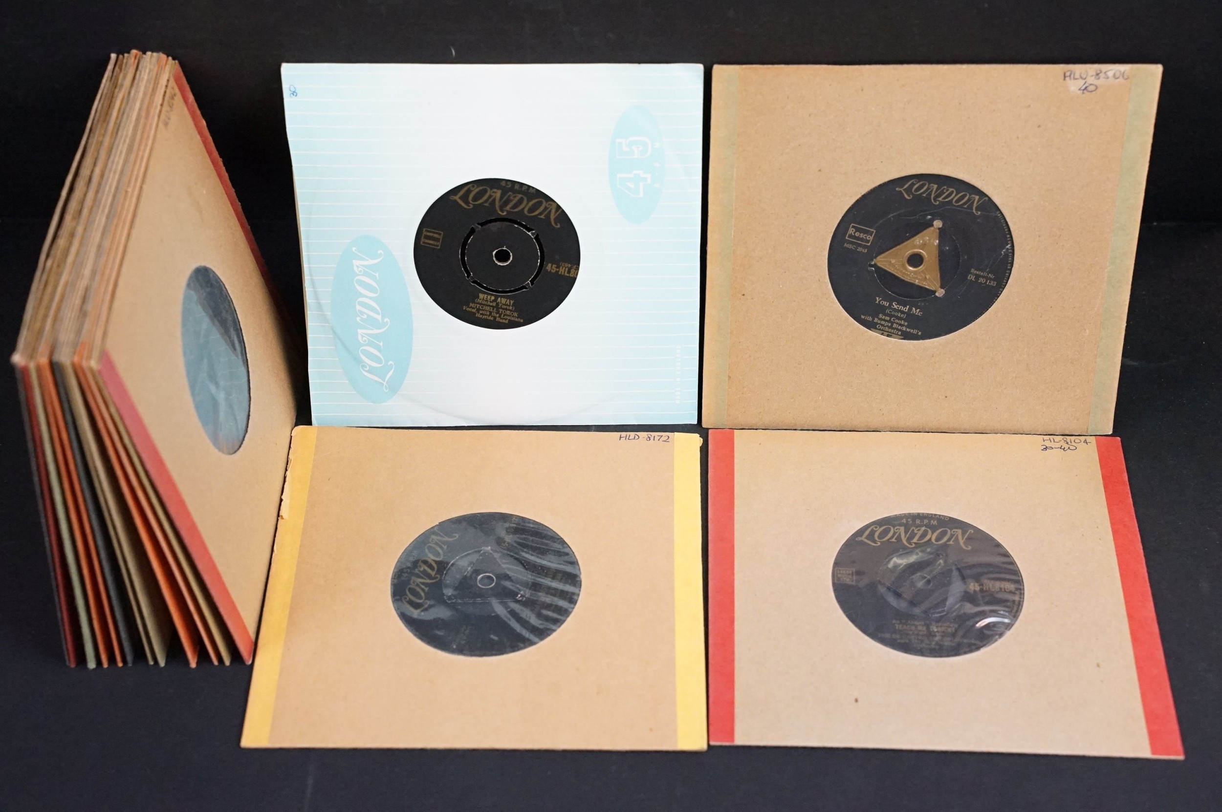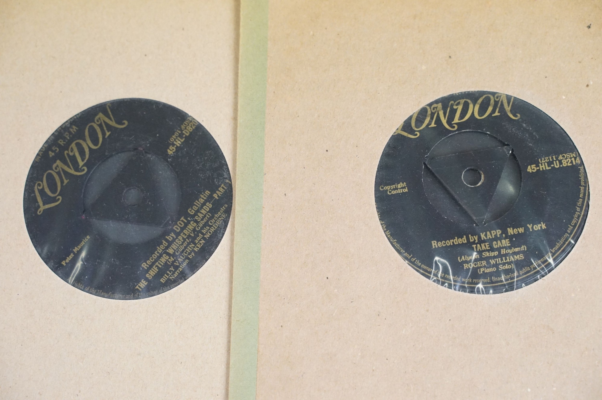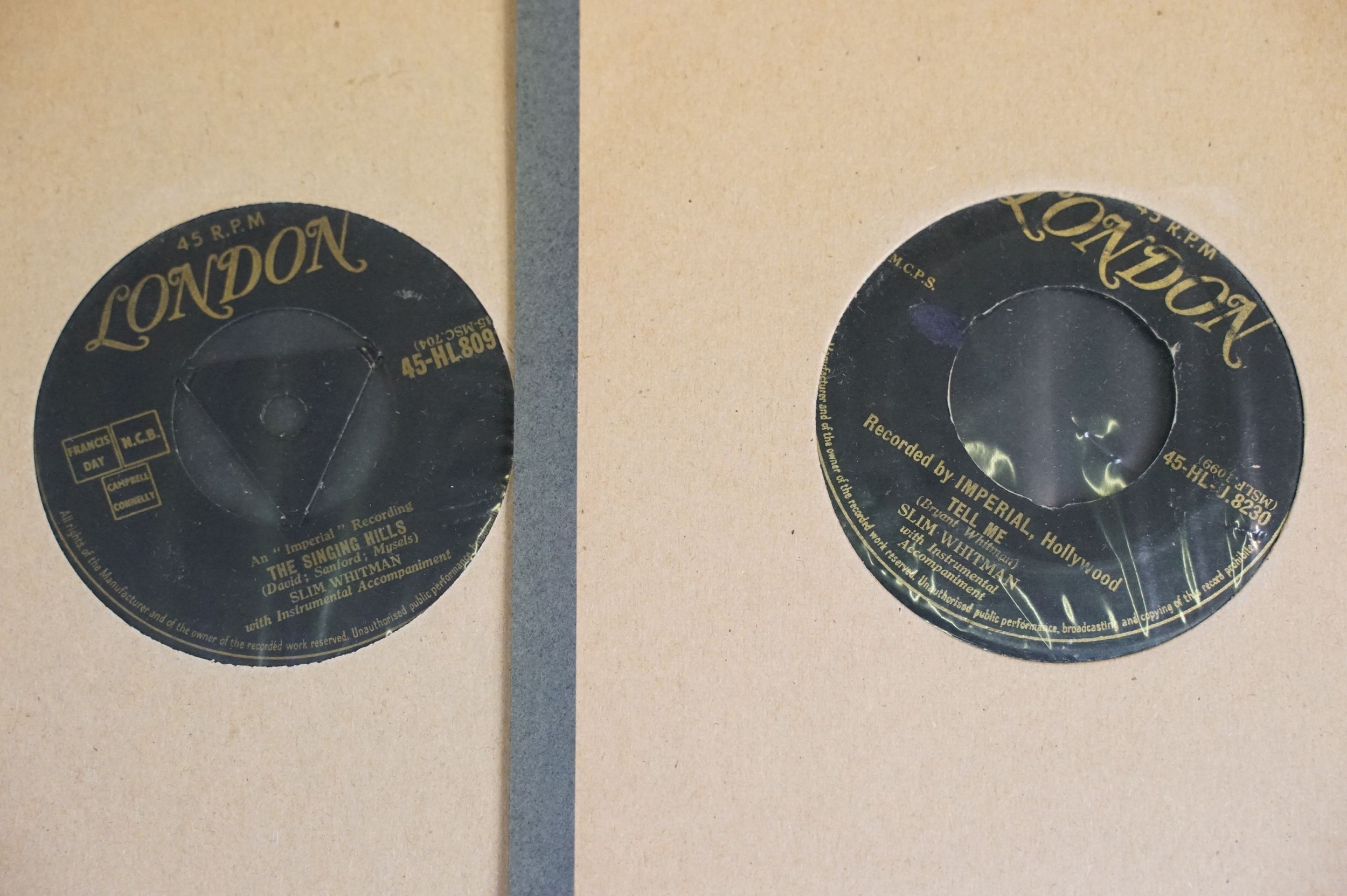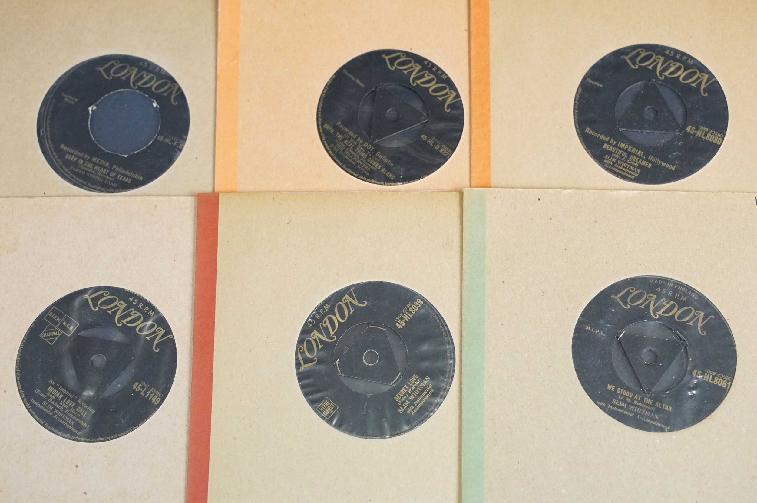 Vinyl - Rock ’N’ Roll - 16 gold labels London Records 7” singles to include: Sam Cooke (DL 20 133 German), Mitchell Torok (45-HL8004 UK), The De Castro Sisters (45-HL 8104), Pat Boone, Alfi And Barry, Gale Storm, The Hilltoppers, Ferro String Band, Roger Williams, Billy Vaughn, Slim Whitman x 6. Condition at least VG overall