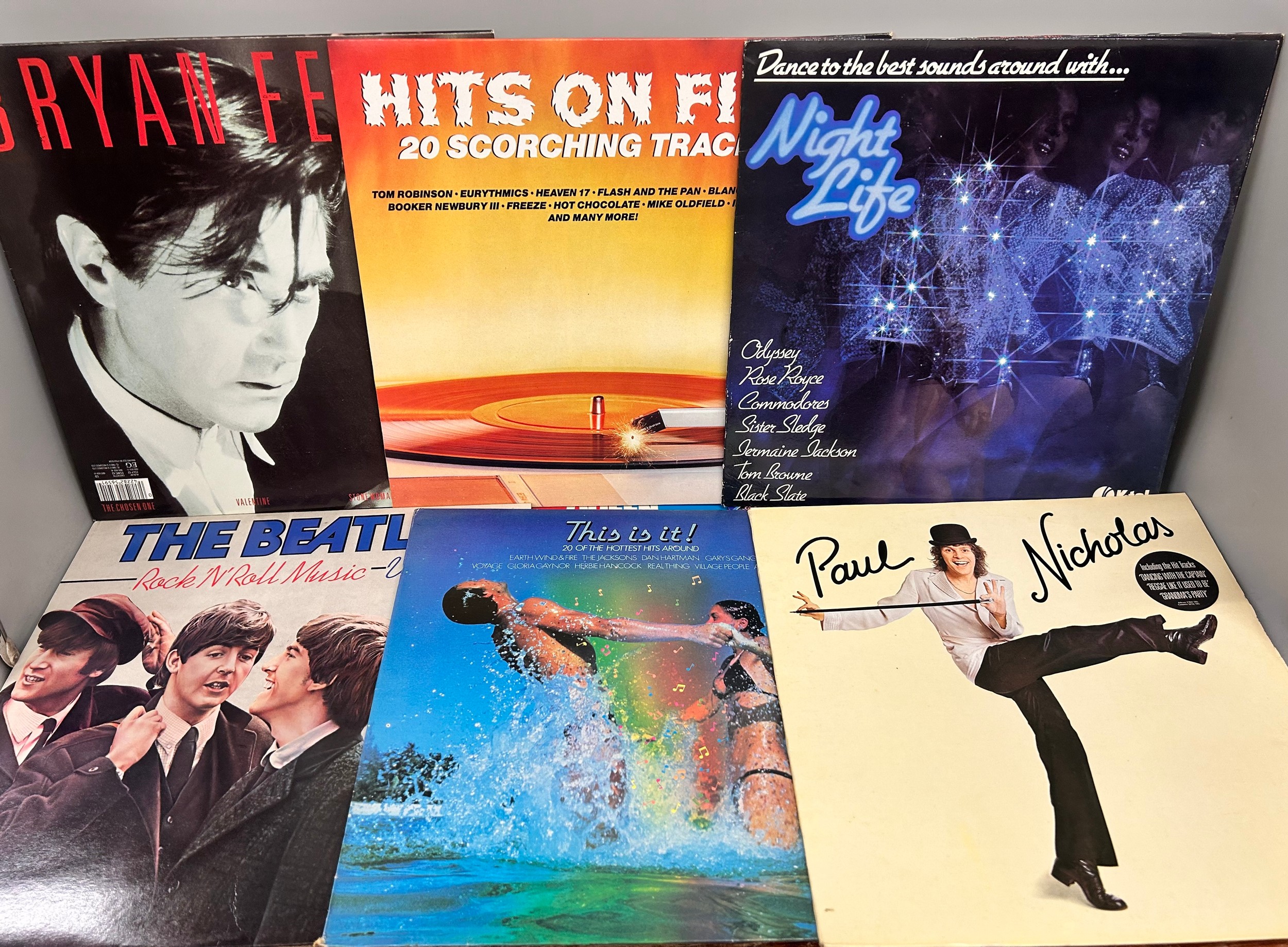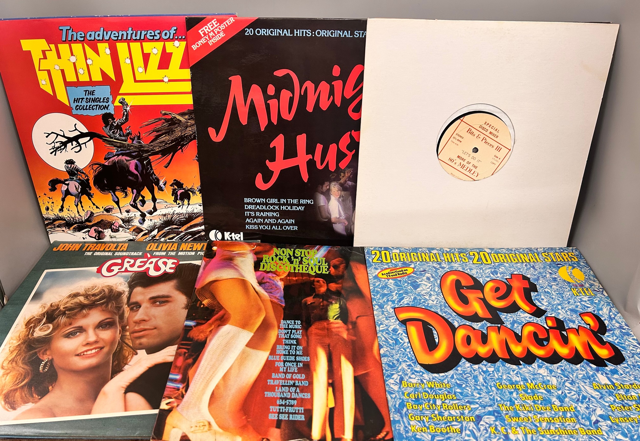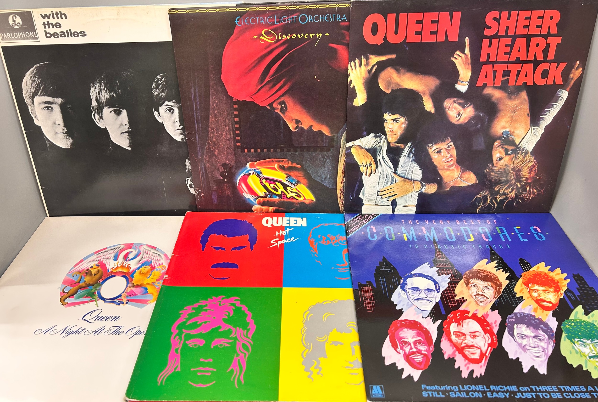 A collection of forty-two LP records to include With The Beatles, Queen, Thin Lizzy, Ultravox, Duran Duran, Monkees, Grease, etc.
