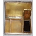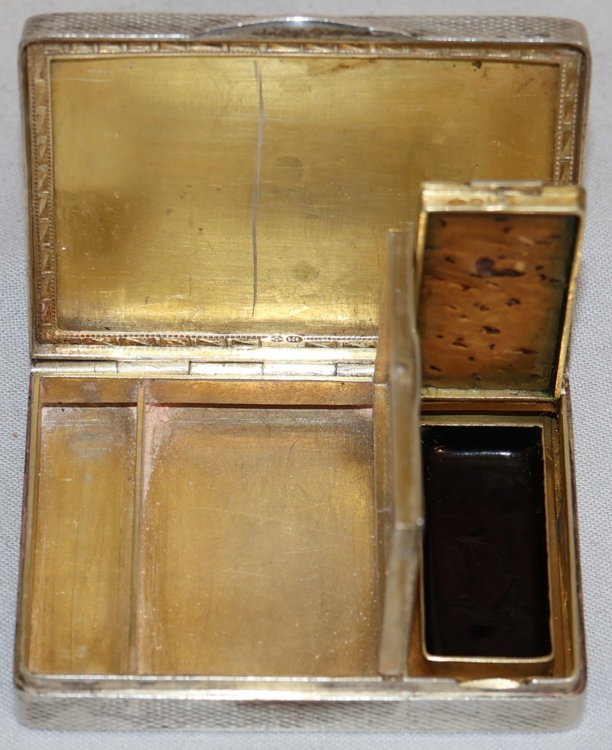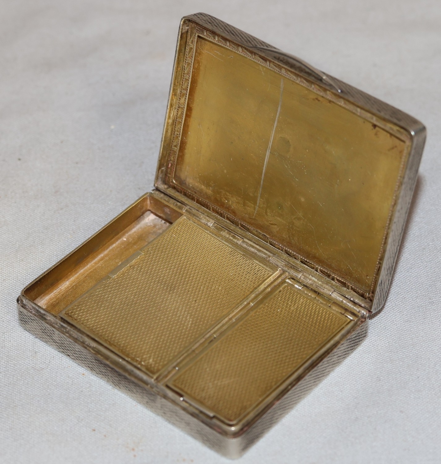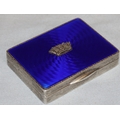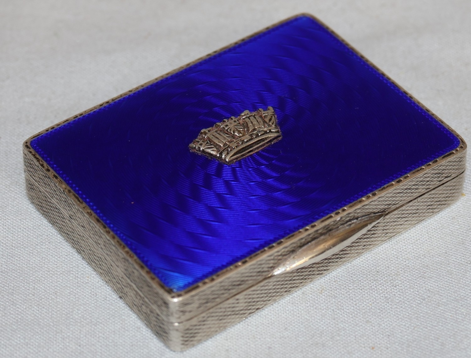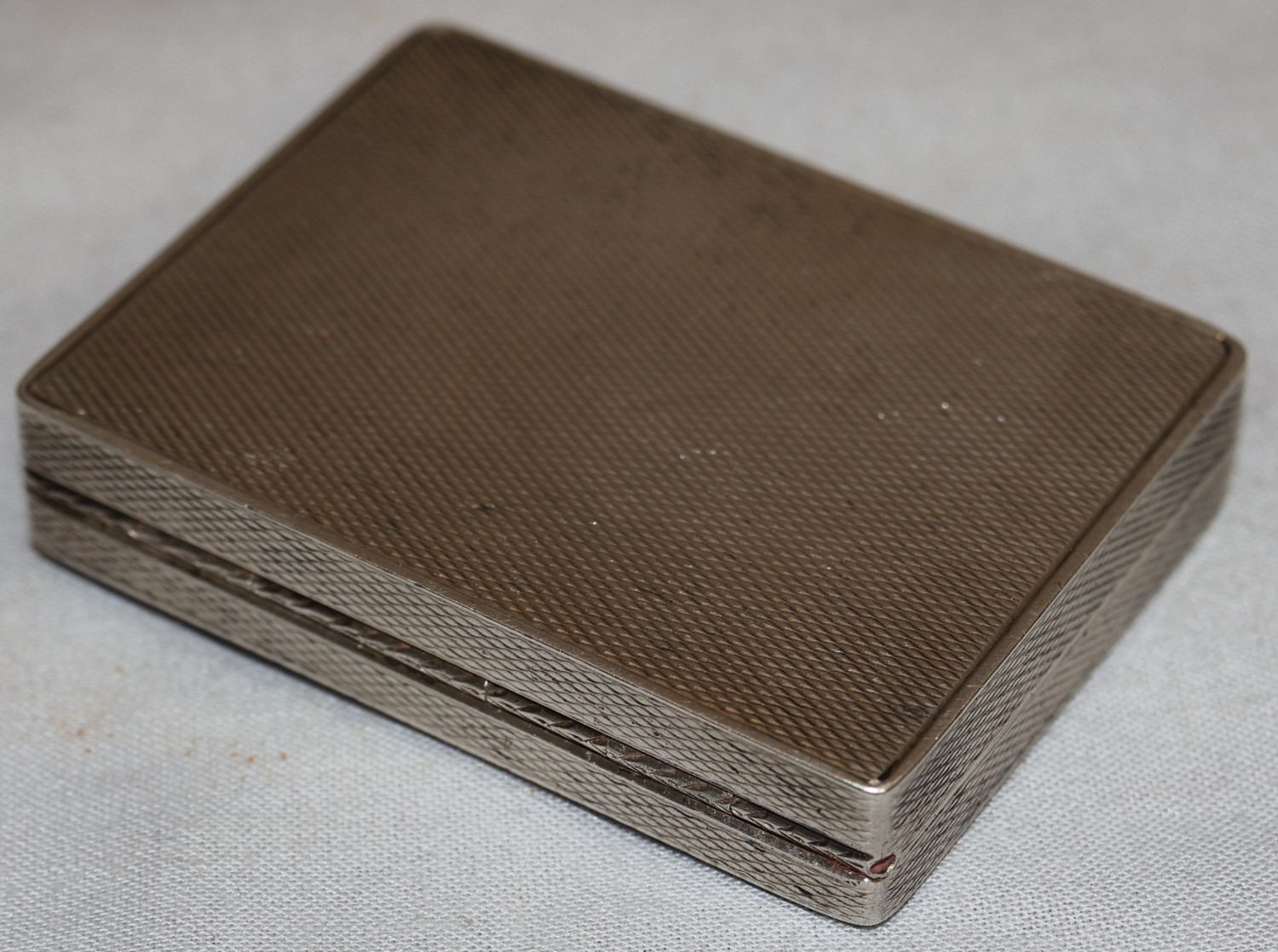 An Art Deco style 925 silver minaudiere with allover engine turned decoration, blue enamelled hinged top enclosing fitted interior, maker's mark HCF Ltd., 5.7cm wide, 2.8oz