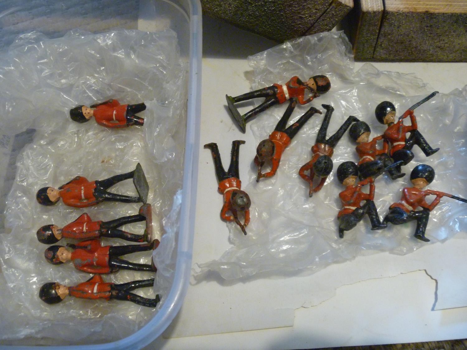 VINTAGE TRIANG BOX FORT AND 26 LEAD SOLDIERS, FORT CONTAINED WITHIN ITSELF