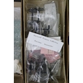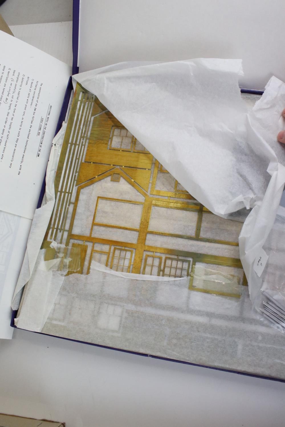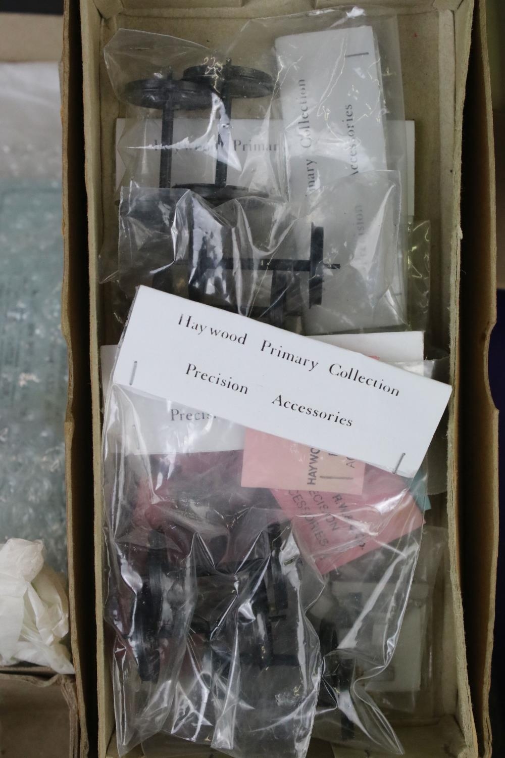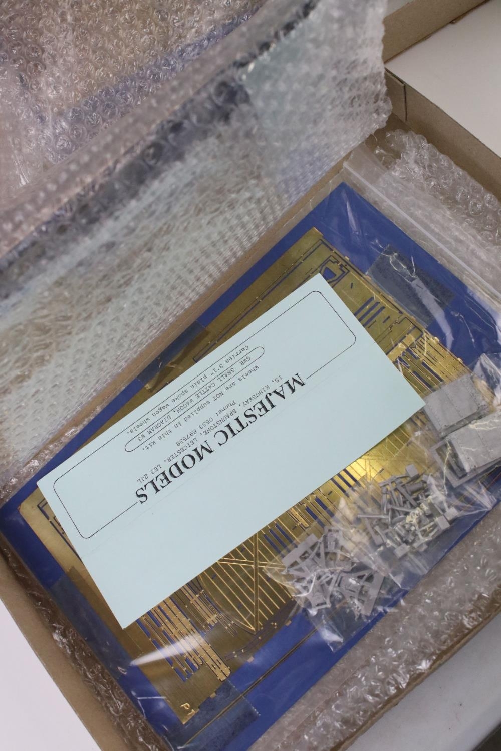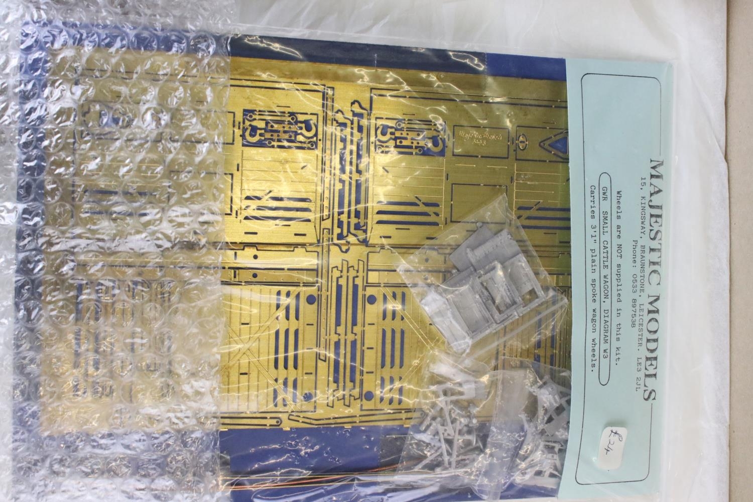 Quantity of O gauge / 7mm scale white metal and brass model railway accessories to include Duncan models Island Platform Shelter, DM Horse Drawn Delivery Van, LH Loveless & Co GWR Footbridge Kit, Modelex CM42 GWR Signal Box kit etc