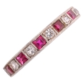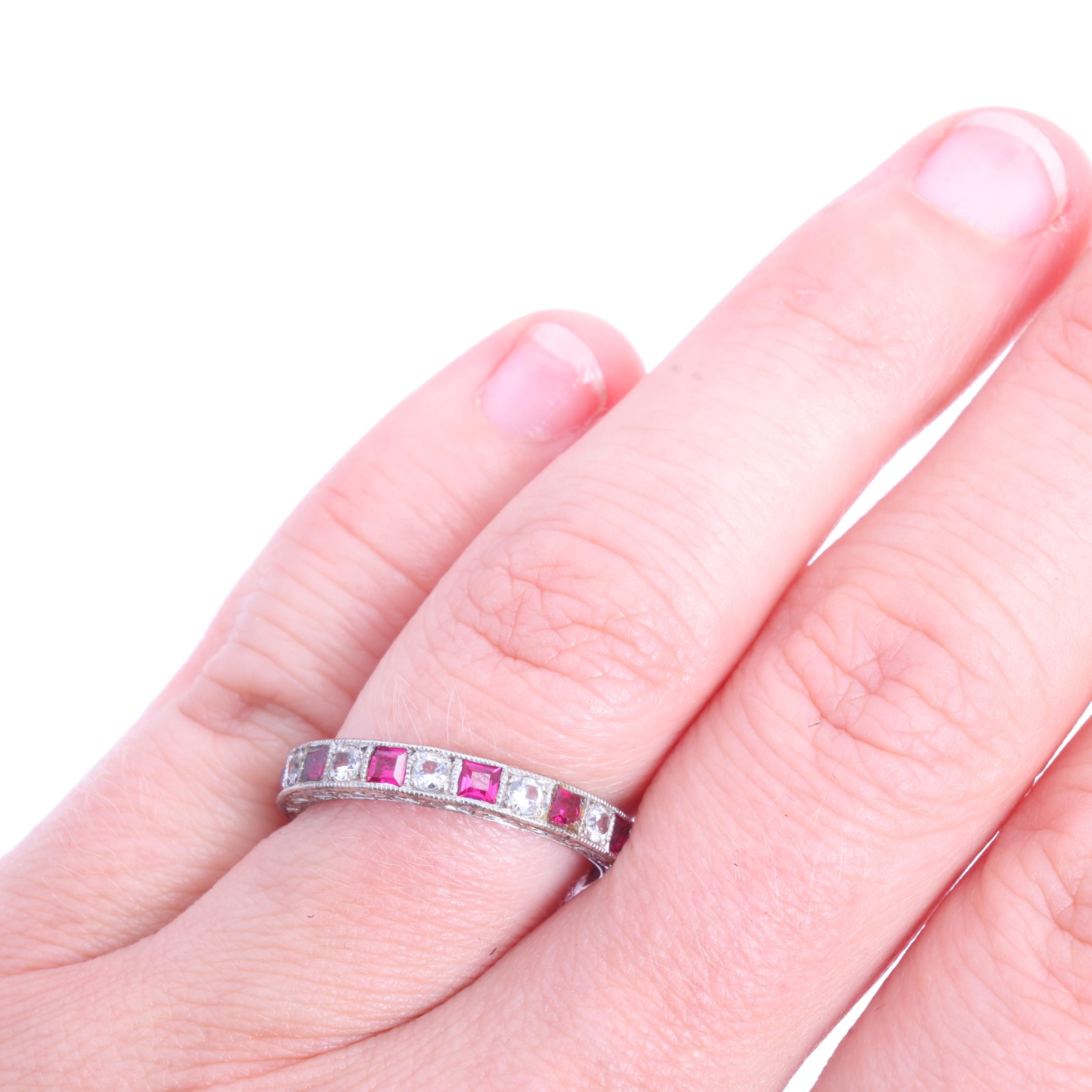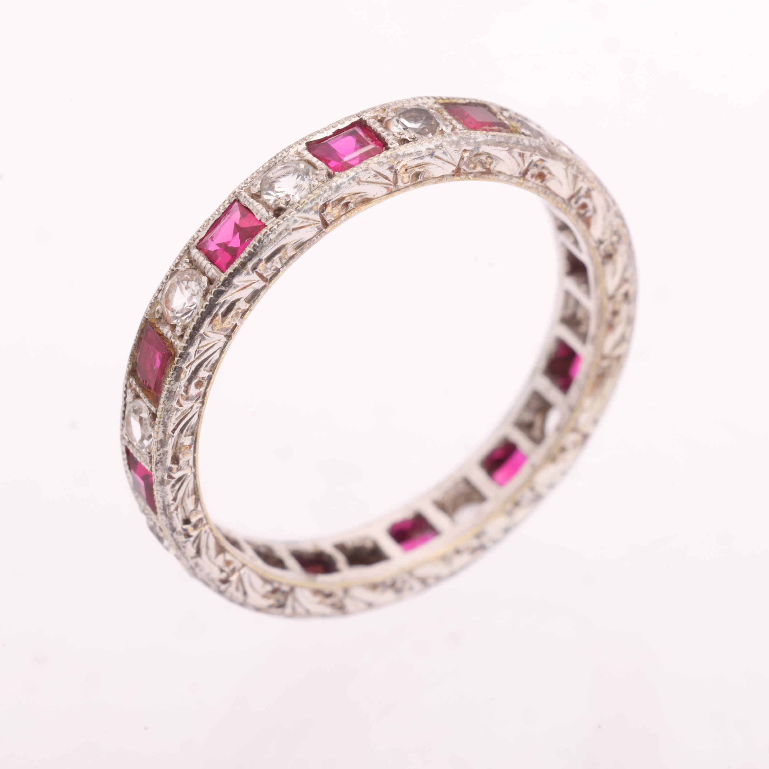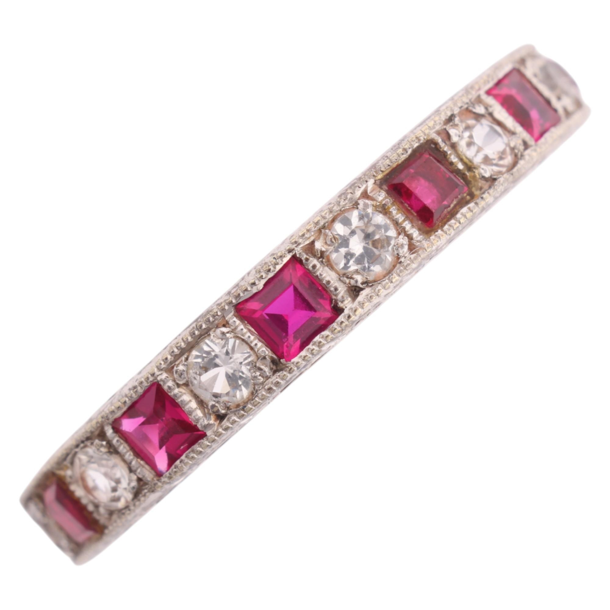 A 9ct white gold ruby and cubic zirconia full eternity ring, Charles Green & Son Ltd, Birmingham 1963, setting height 3.3mm, size O, 2.9g
