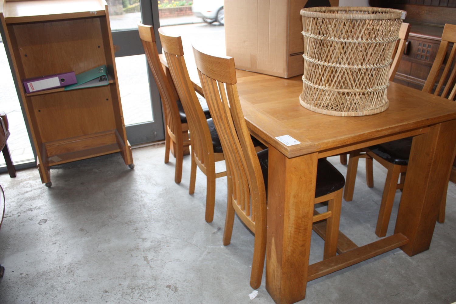 Extending Oak Dining Table 6' x 3' and Six Chairs (seats distressed)
