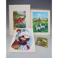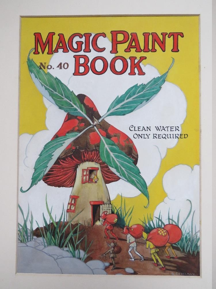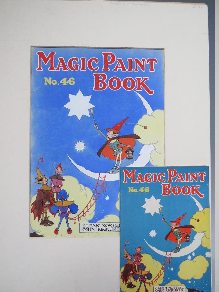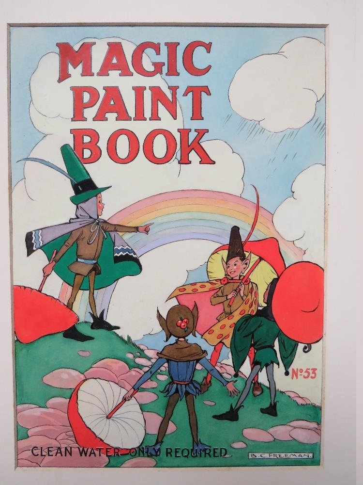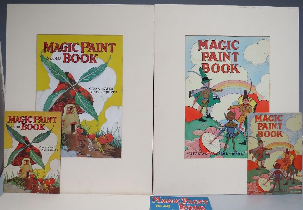 BARBARA CONSTANCE FREEMAN. Three illustrations for the covers of children's 'Magic Paint Books', no. 40, 46 and 53, together with associated books, all signed lower right, gouache, unframed, 30 x 21 cm, together with illustration for cover of children's 'Hidden Colour Paint Book', and associated book, unsigned, gouache, unframed, 22 x 31 cm