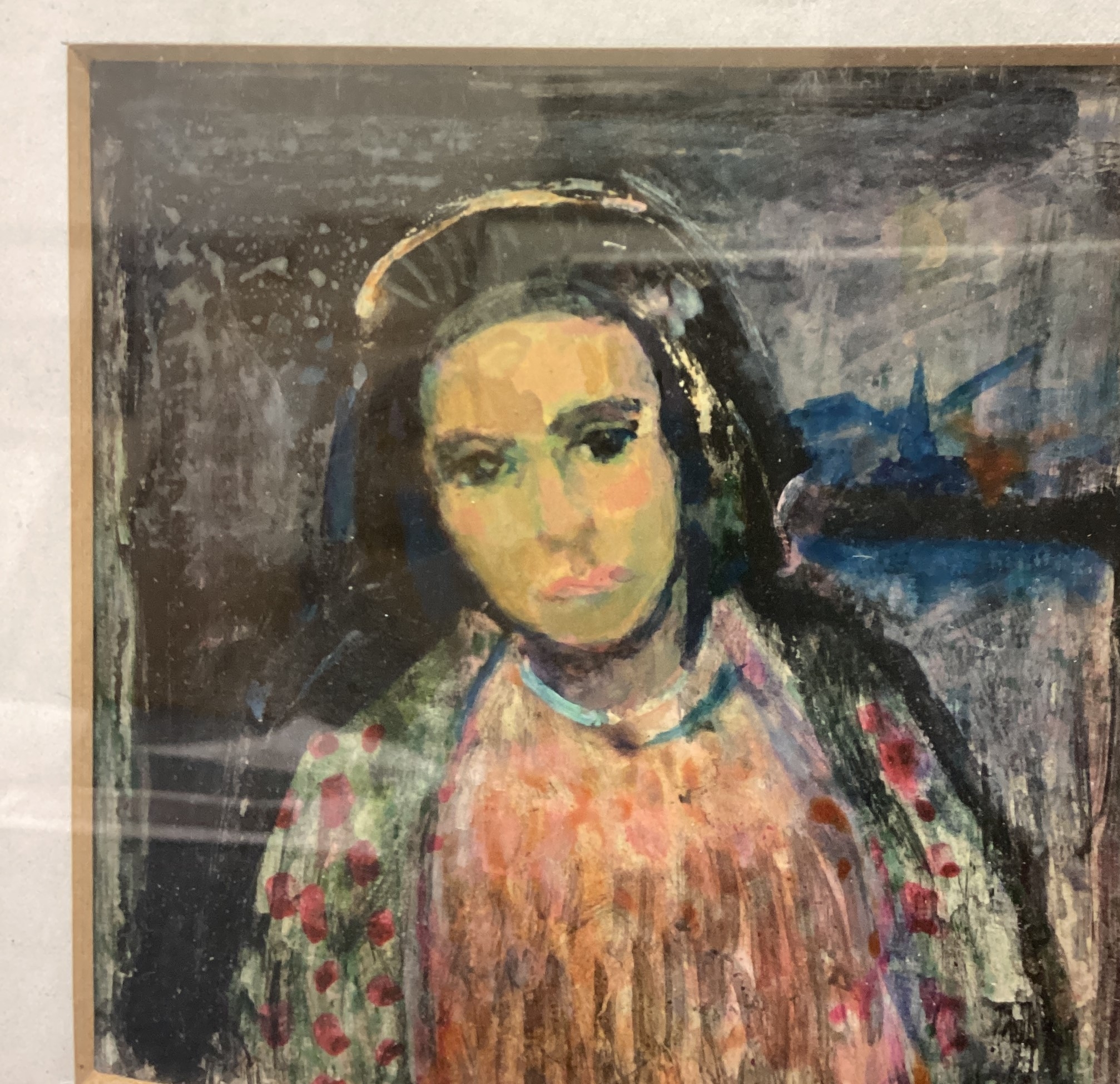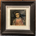 GEORGE GAULT: (British, 1916 - 2001): A framed and glazed mixed media entitled 'Girl with Green Shawl'. Inscribed verso and dated 91. Approx. 13 cm x 13 cm (ss). Est. £30 - £50.