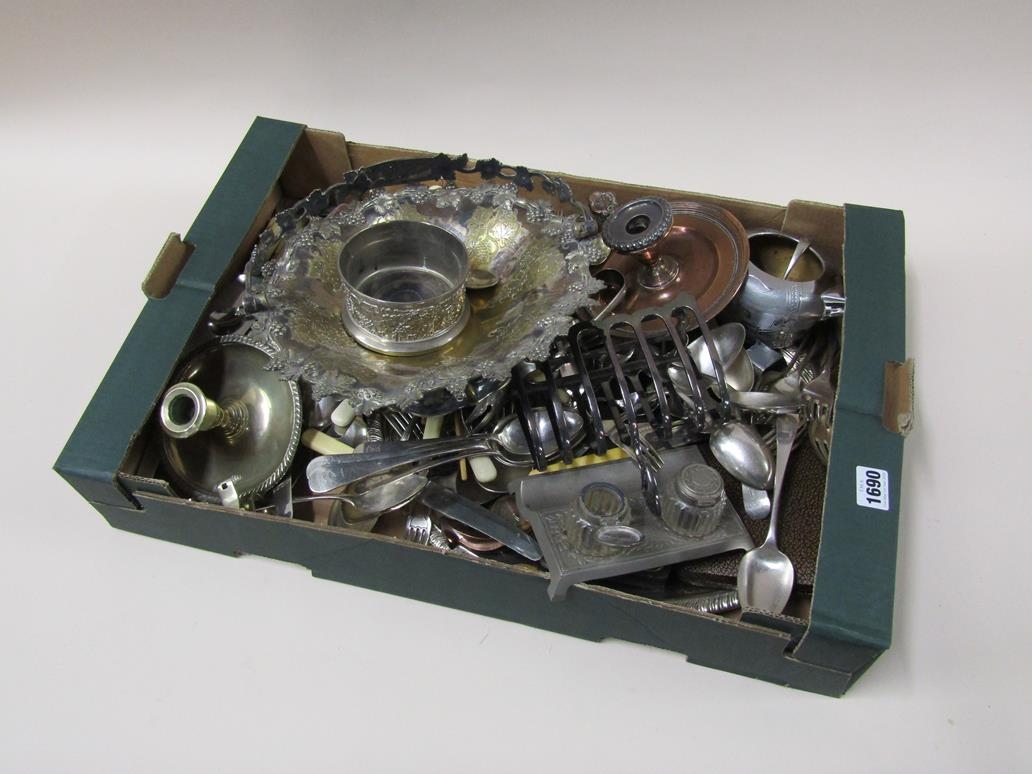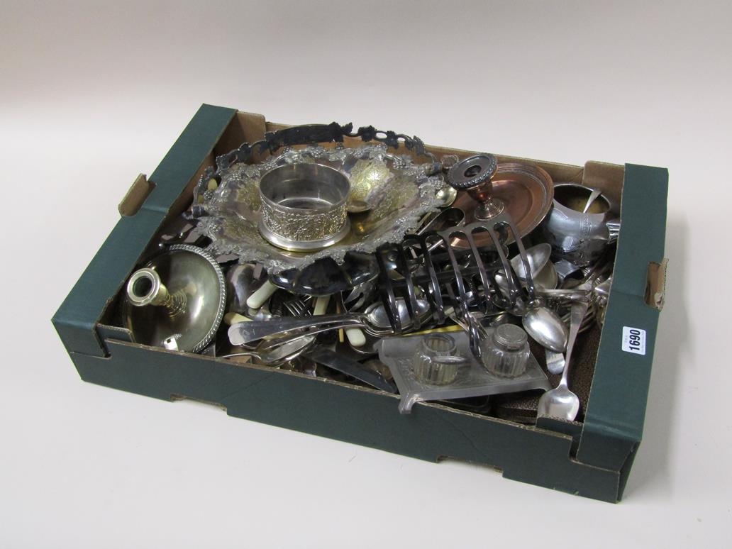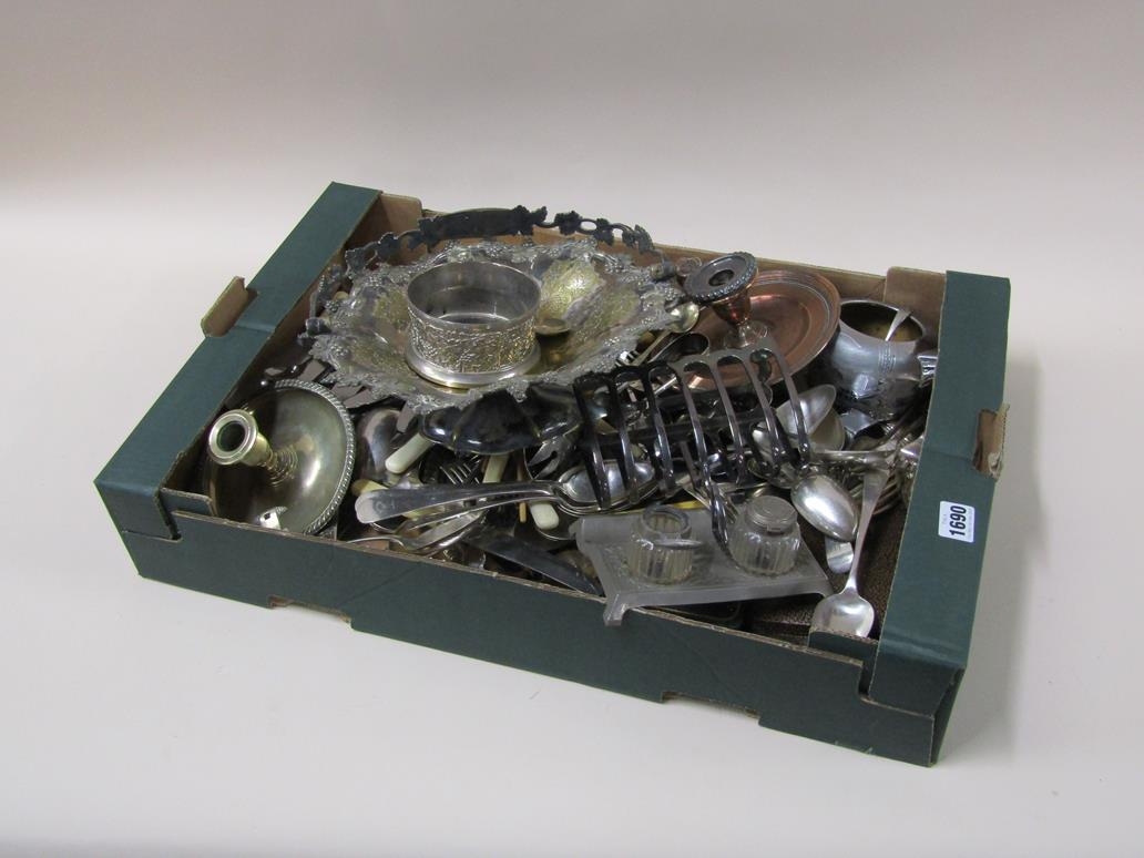 MIXED SILVER PLATED CUTLERY PLUS TOAST RACK ETC