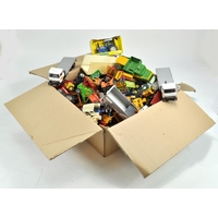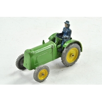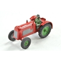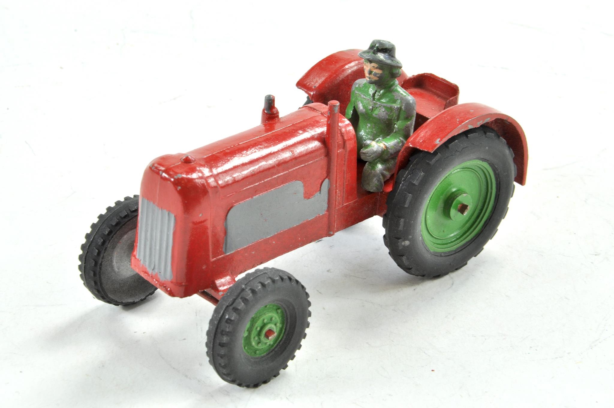 Charbens vintage farm tractor in red with grey / silver and trim, green wheel centres. Driver is legless, otherwise very good.