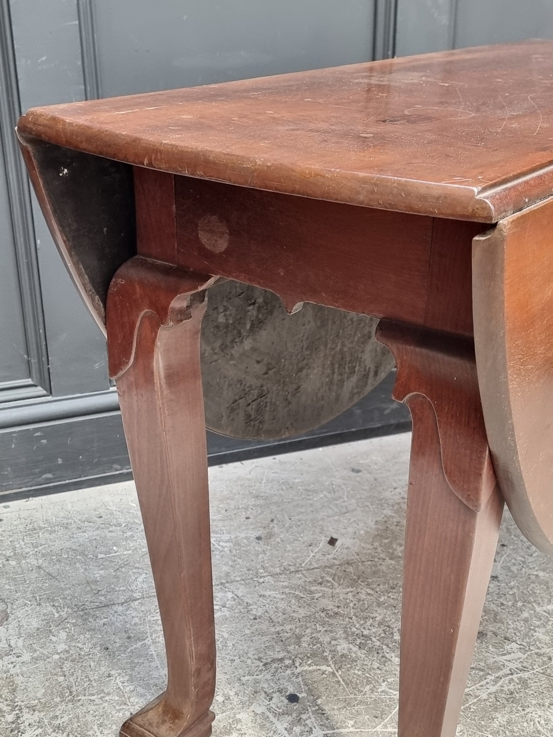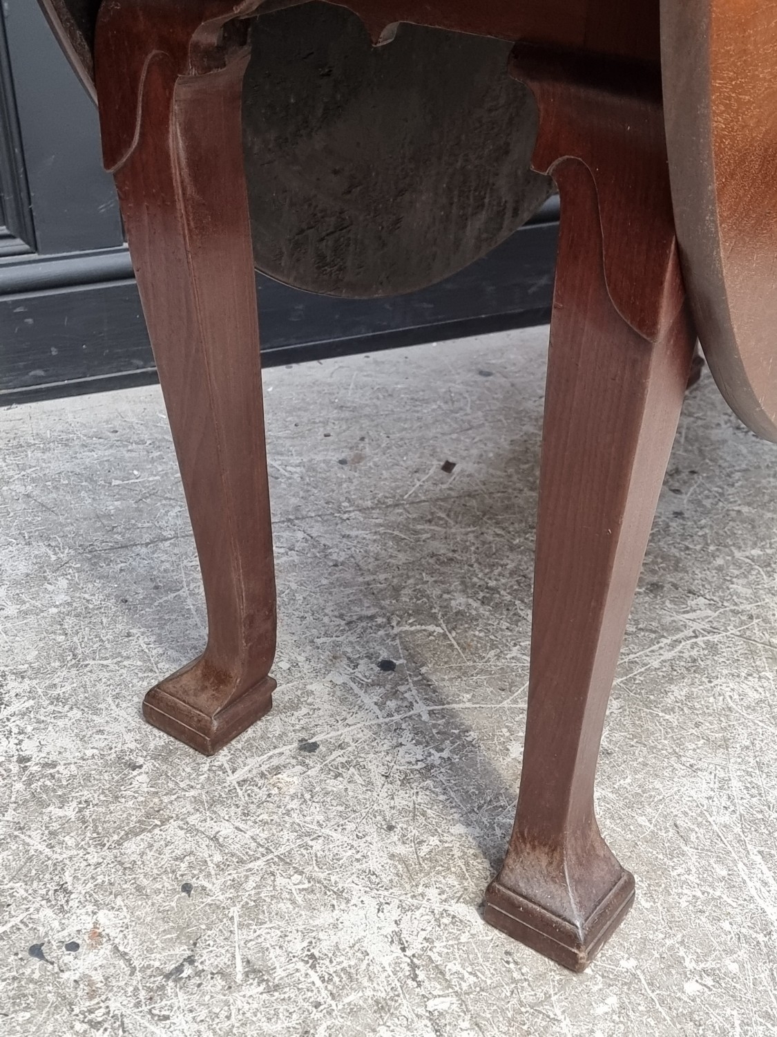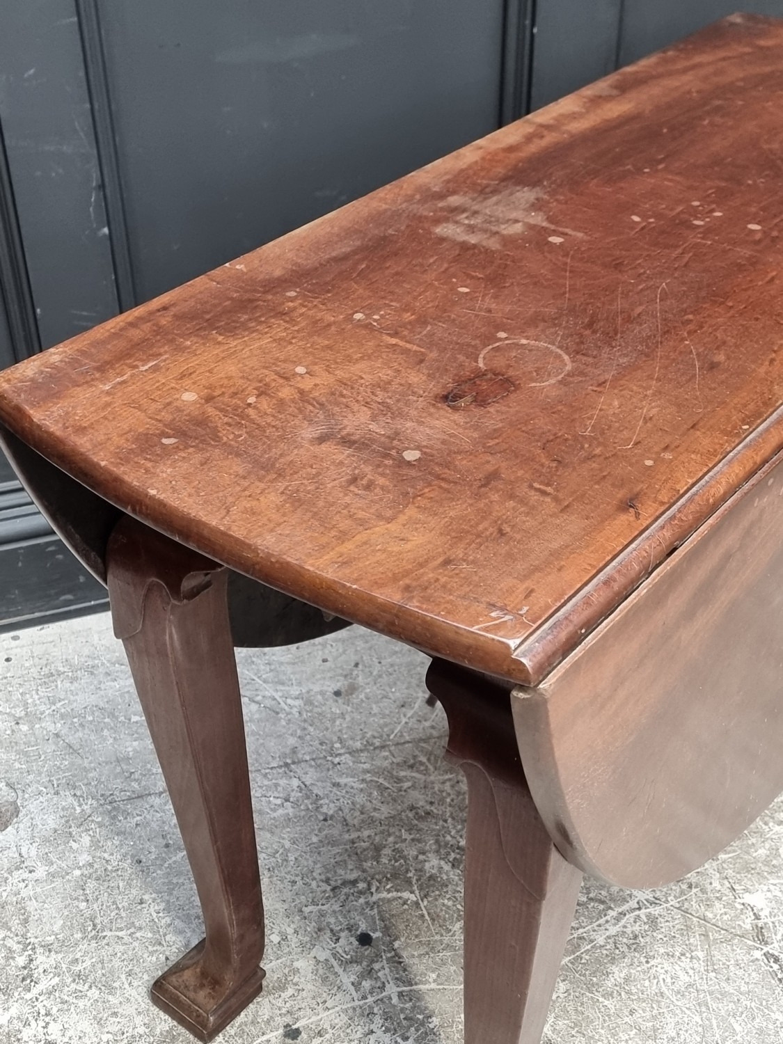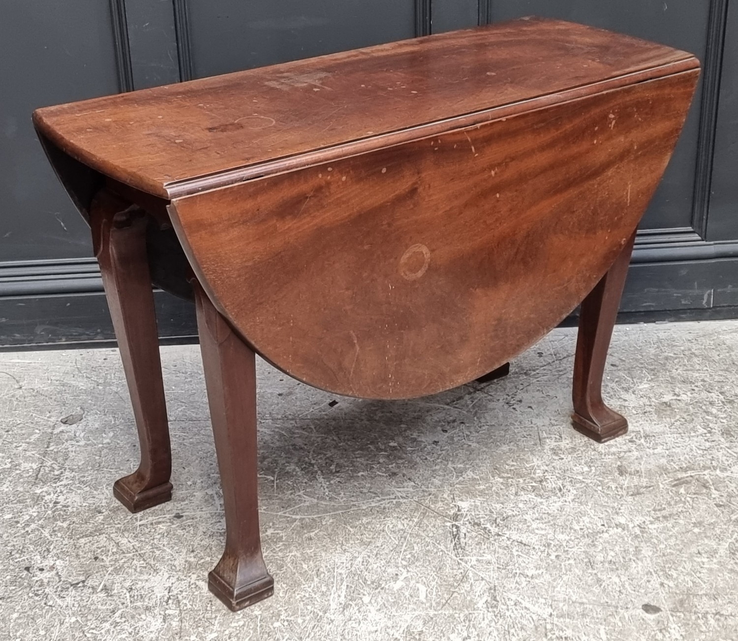 An 18th century Irish mahogany drop leaf table, with unusual feet, 104.5cm wide.