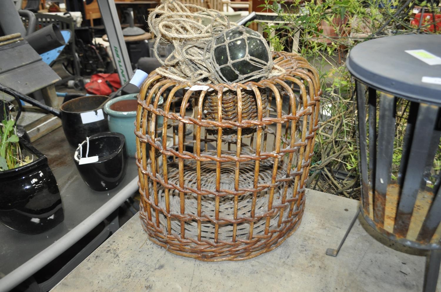GOOD CONDITION LOBSTER BASKET AND GLASS FISHING FLOATS 20 INCH