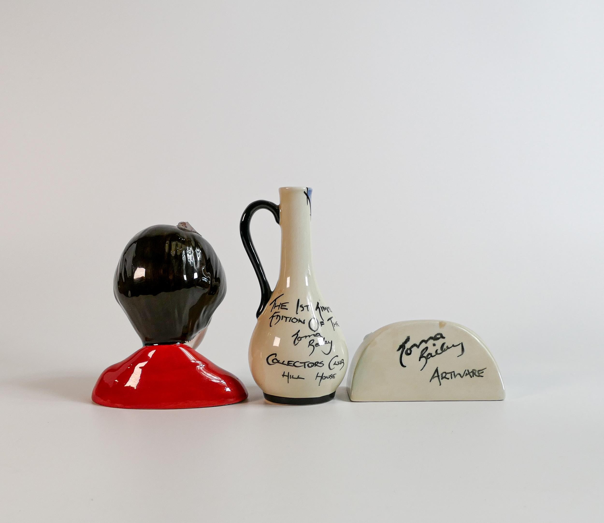 Lorna Bailey Collectors Club Hill House jug, bust & name stand, height of tallest 14cm (3)
