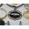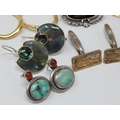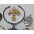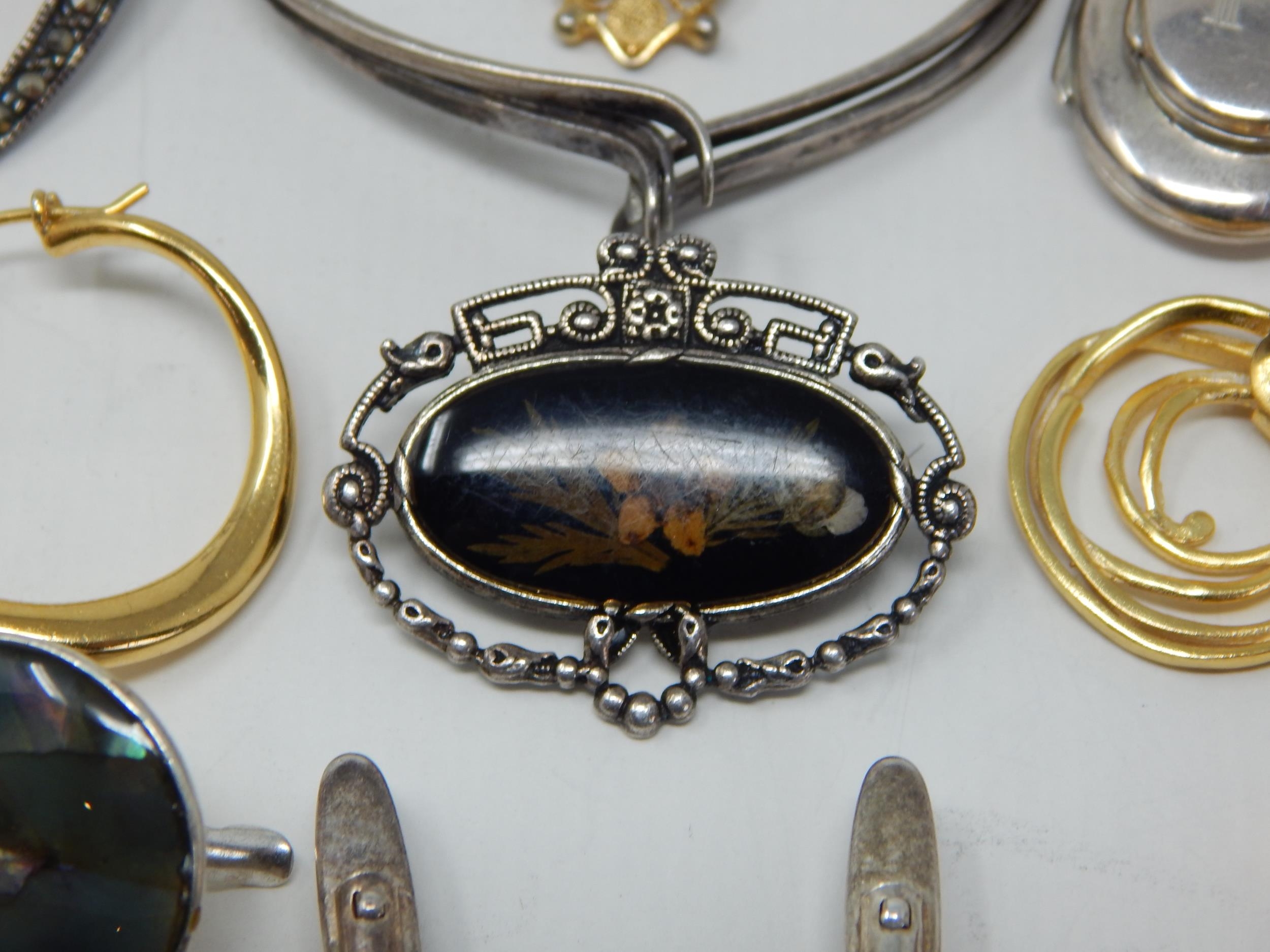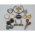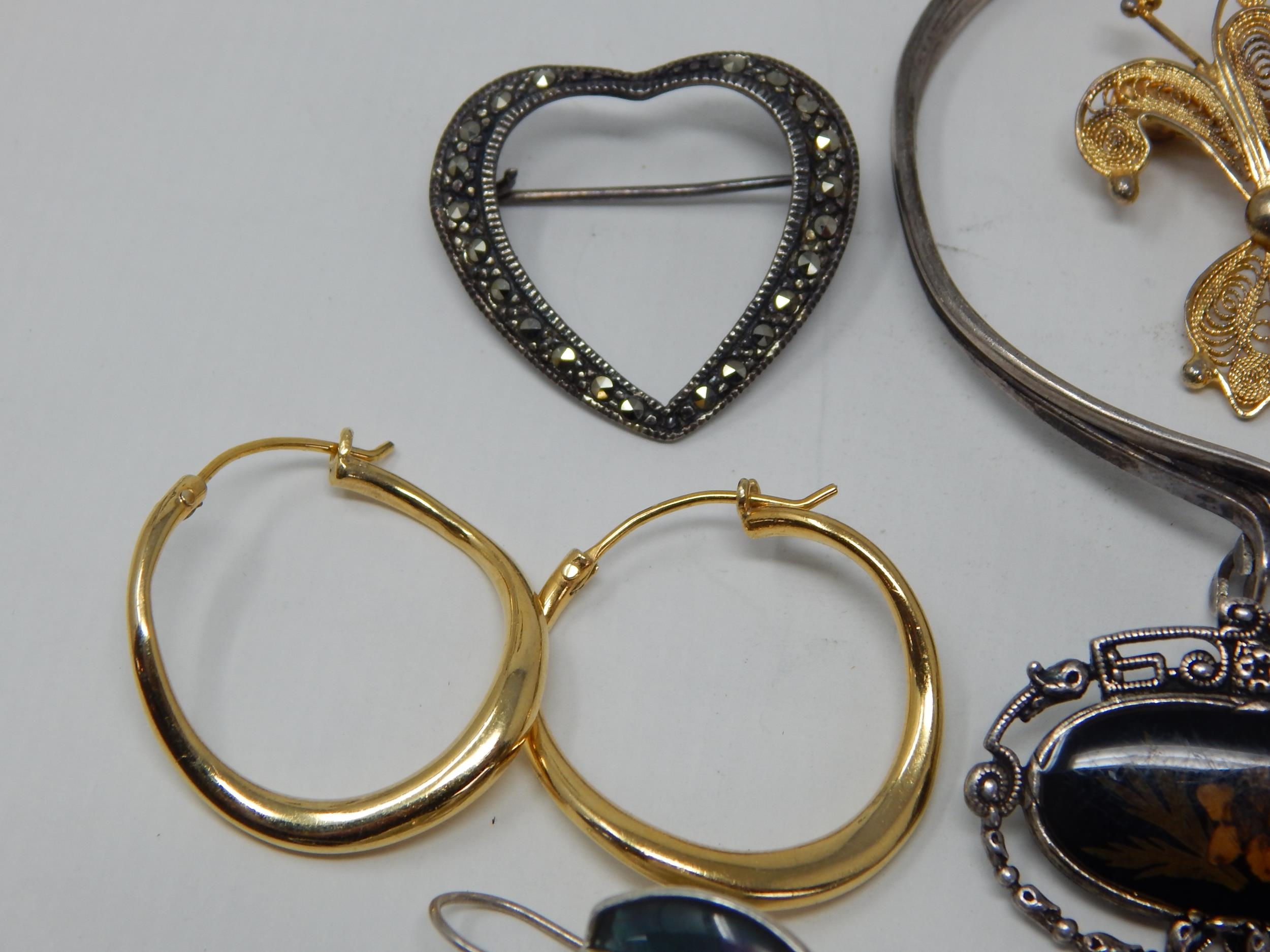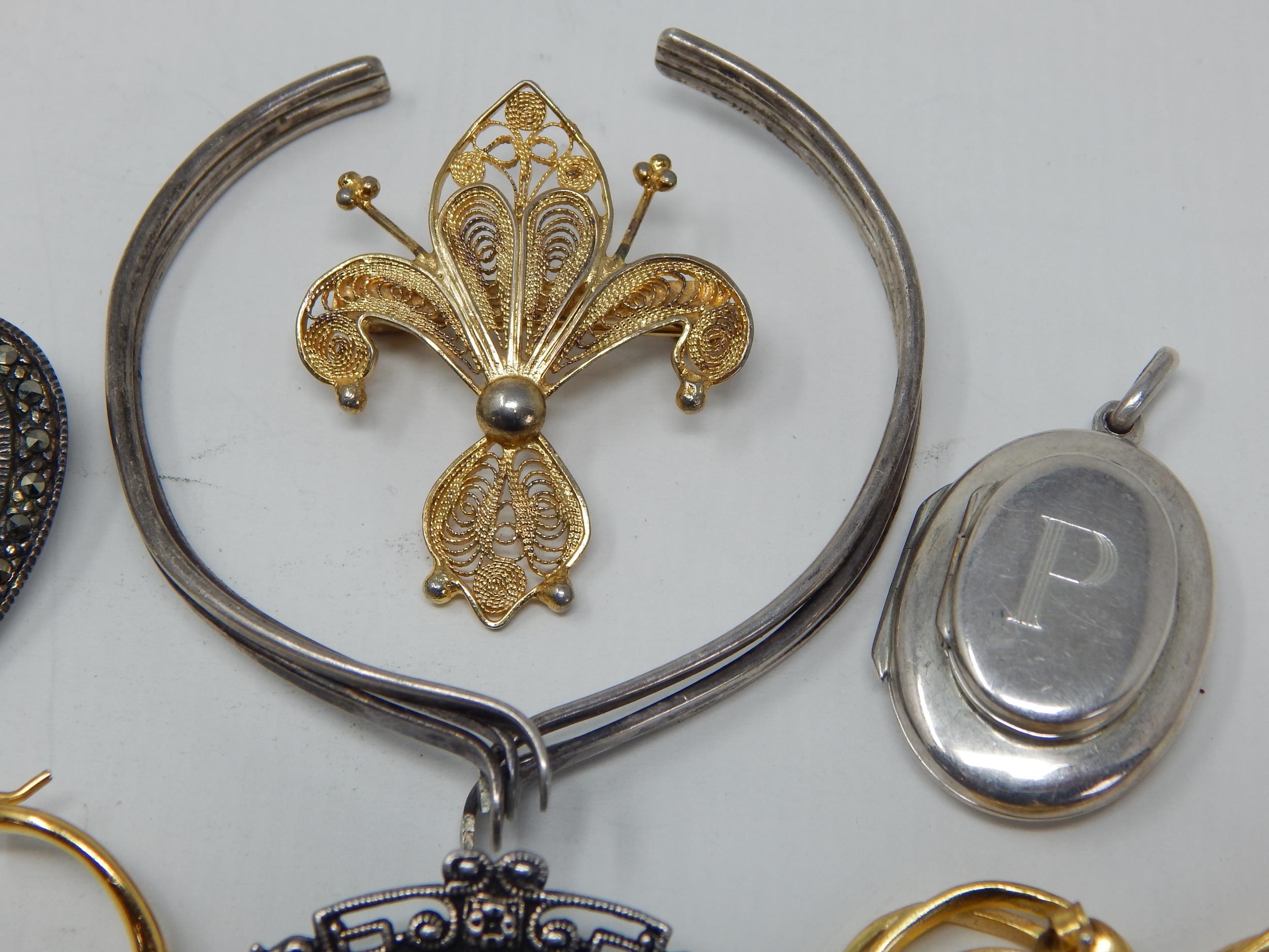 A Quantity of Silver Jewellery to Include a Pair of Tennis Related Cufflinks, Brooches, Earrings, Locket & Bangle.