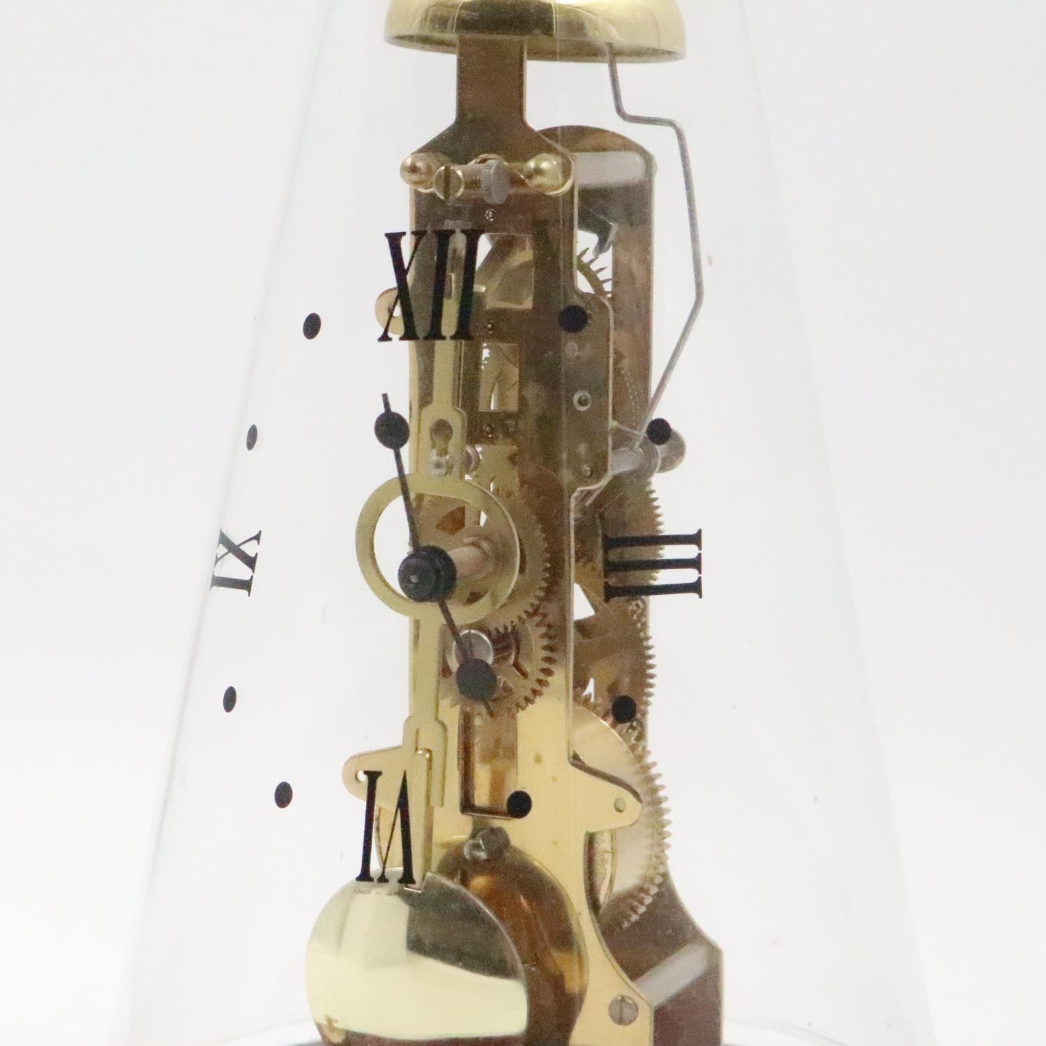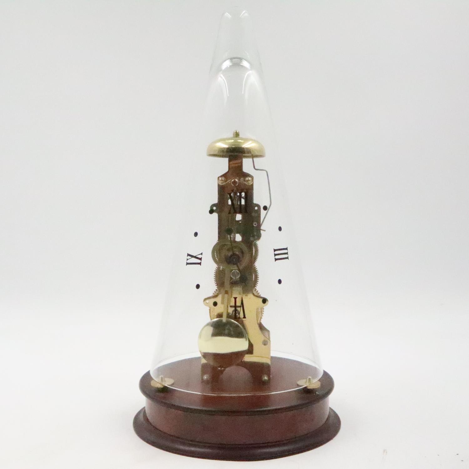 Hermle brass skeleton clock beneath a conical glass dome. UK P&P Group 3 (£30+VAT for the first lot and £8+VAT for subsequent lots)