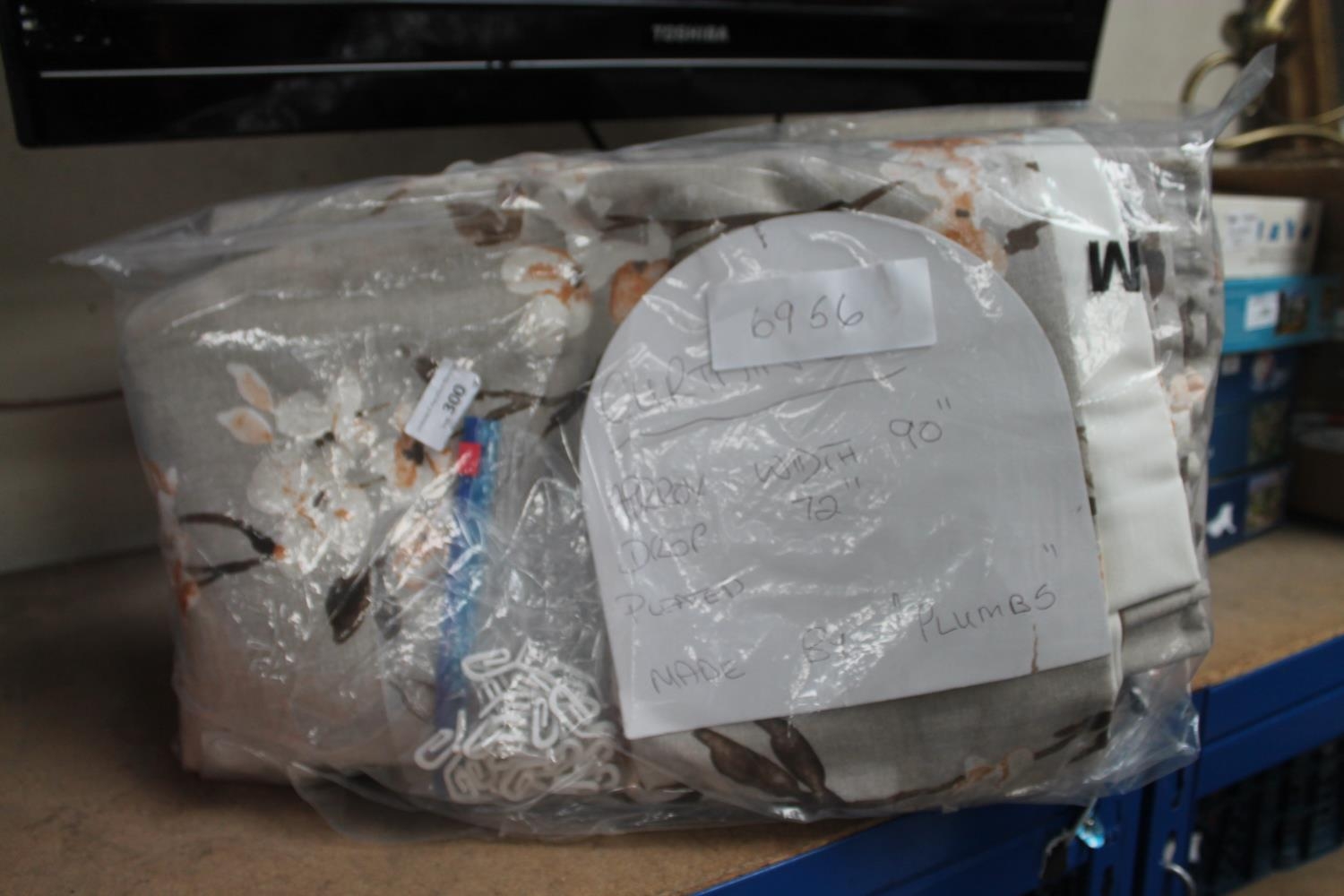 CURTAINS APPROX 90"(W) X 72"(D), PLEATED, MADE BY PLUMS