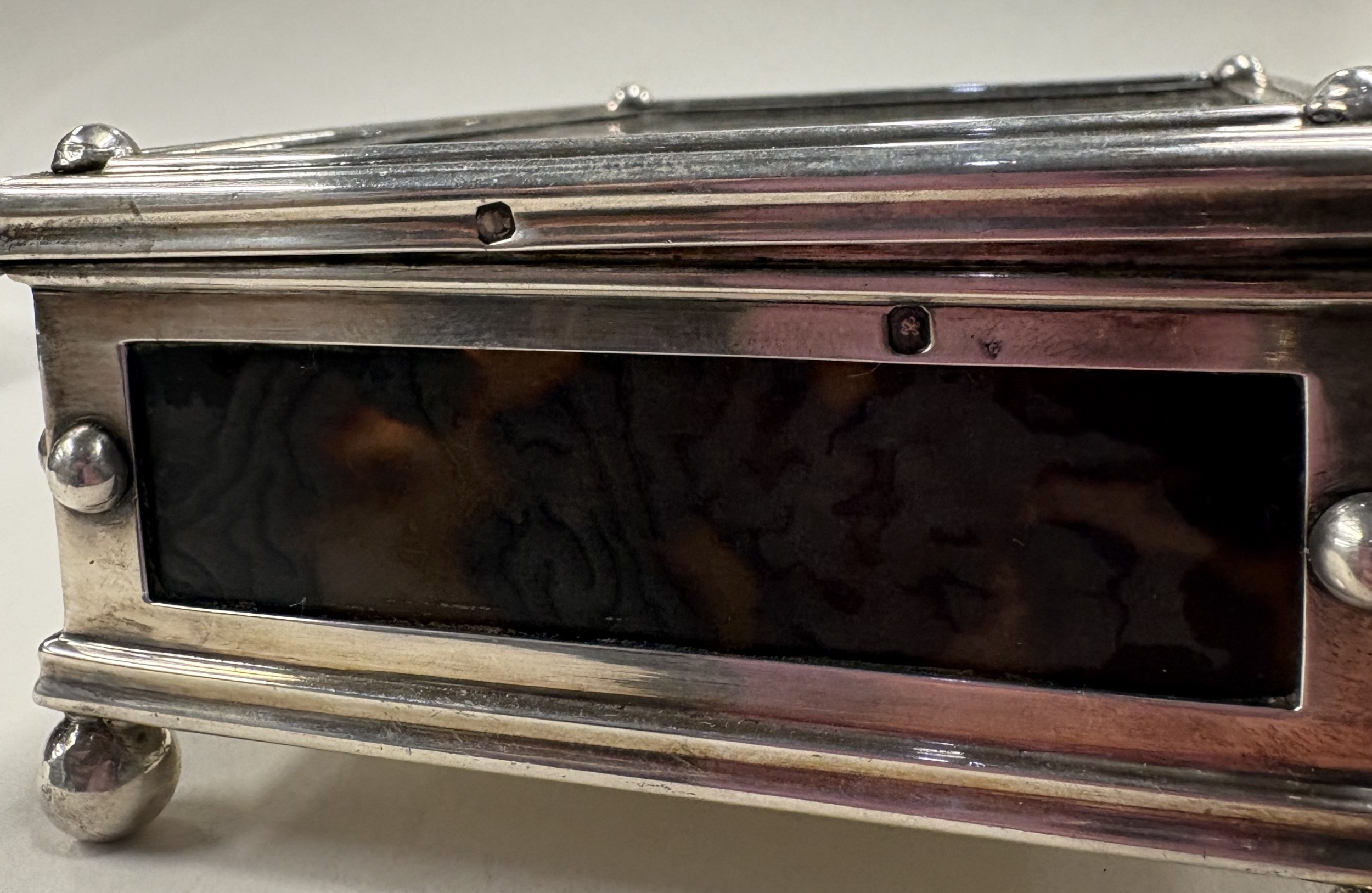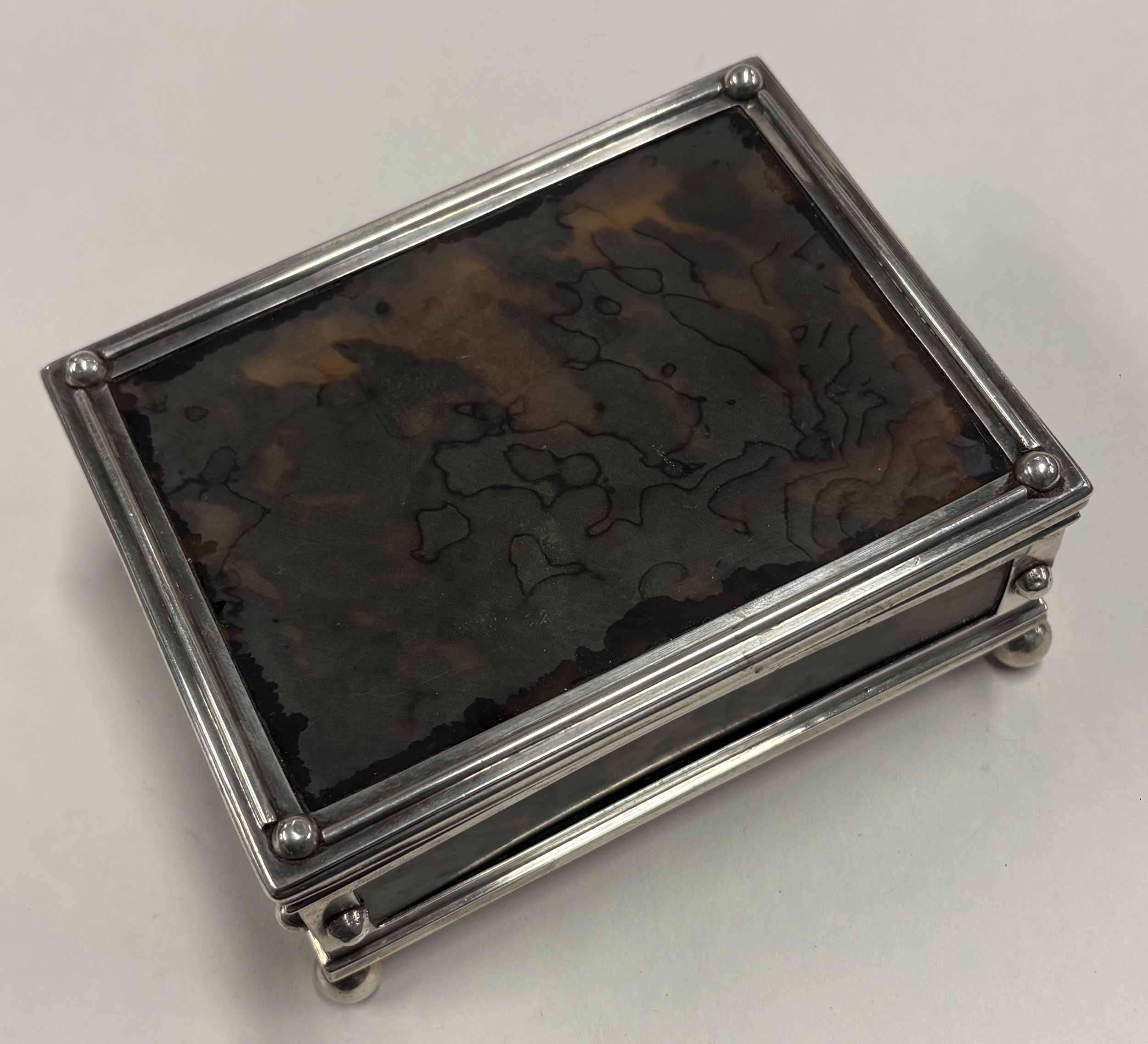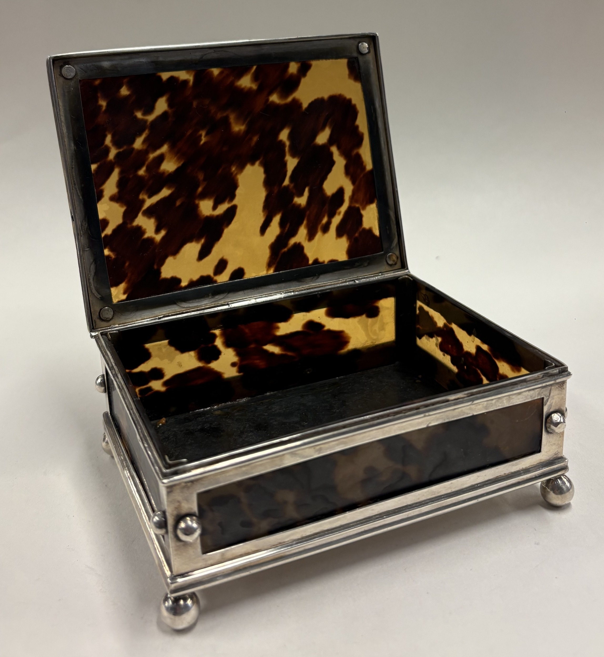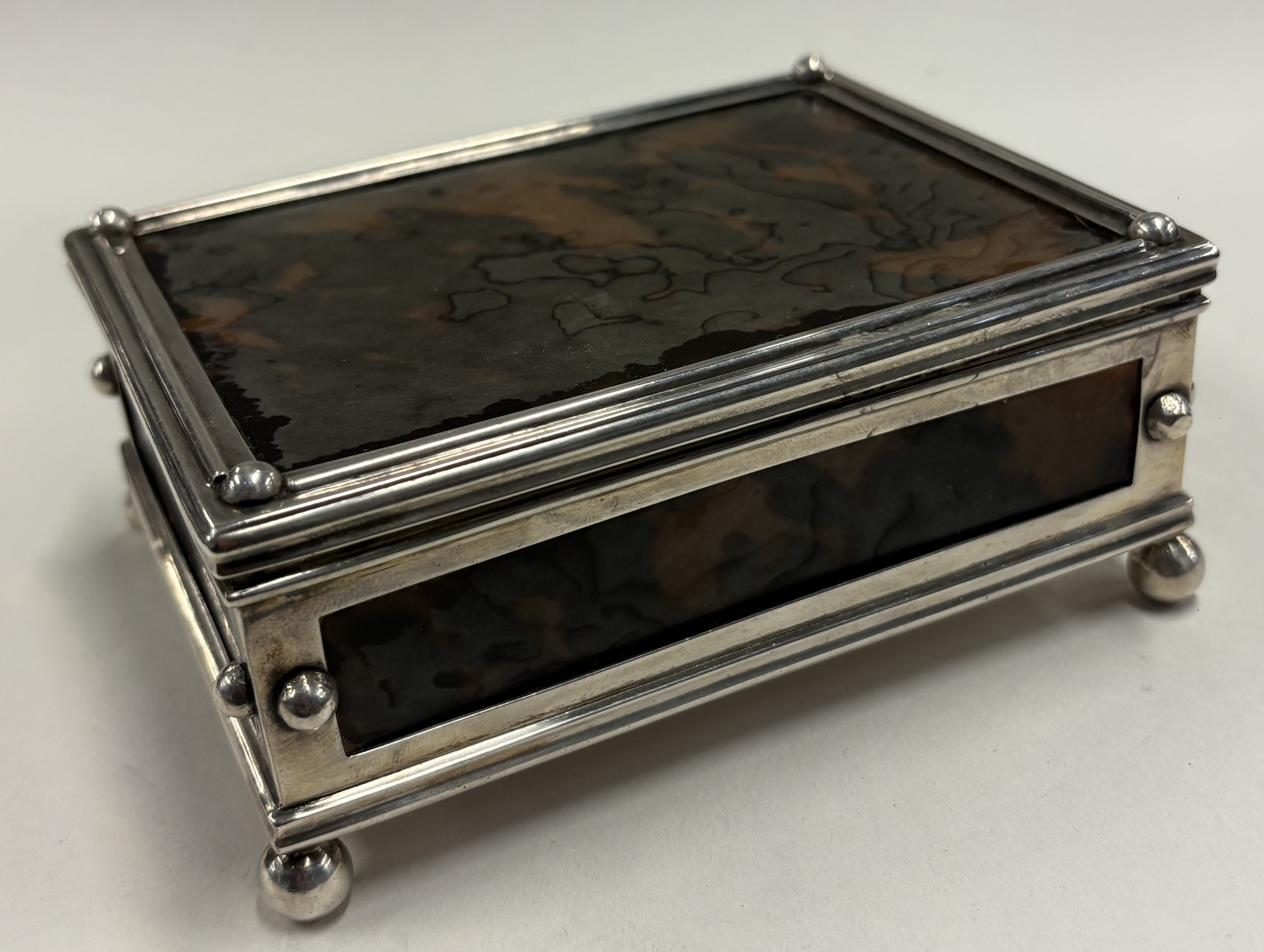 An early 20th Century French silver and faux tortoiseshell jewellery box. Approx. 318 grams of gross weight. Est. £400 - £600