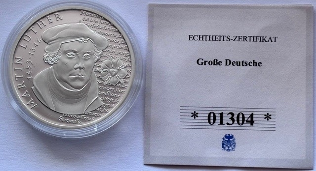 2017 Cu Silver Plated Medallion, Great Germans, Martin Luther, Diameter 40mm, Weight 32g, COA