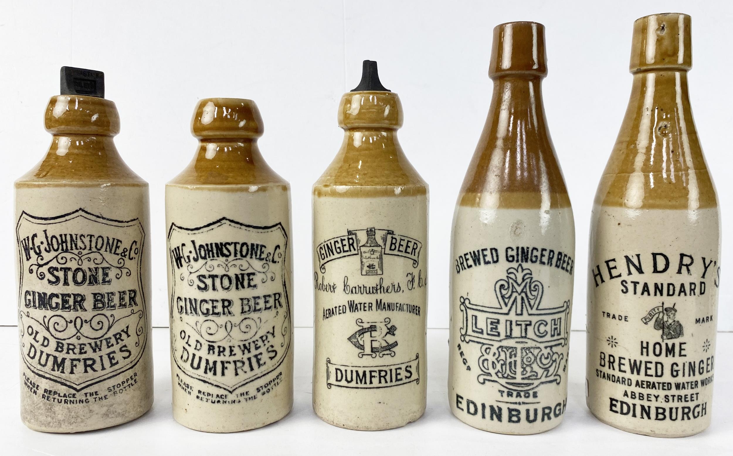 SCOTTISH GINGER BEER GROUP. Tallest 8.5ins. Various shapes & sizes. Inc. Dumfries & Edinburgh. Damages. (5)