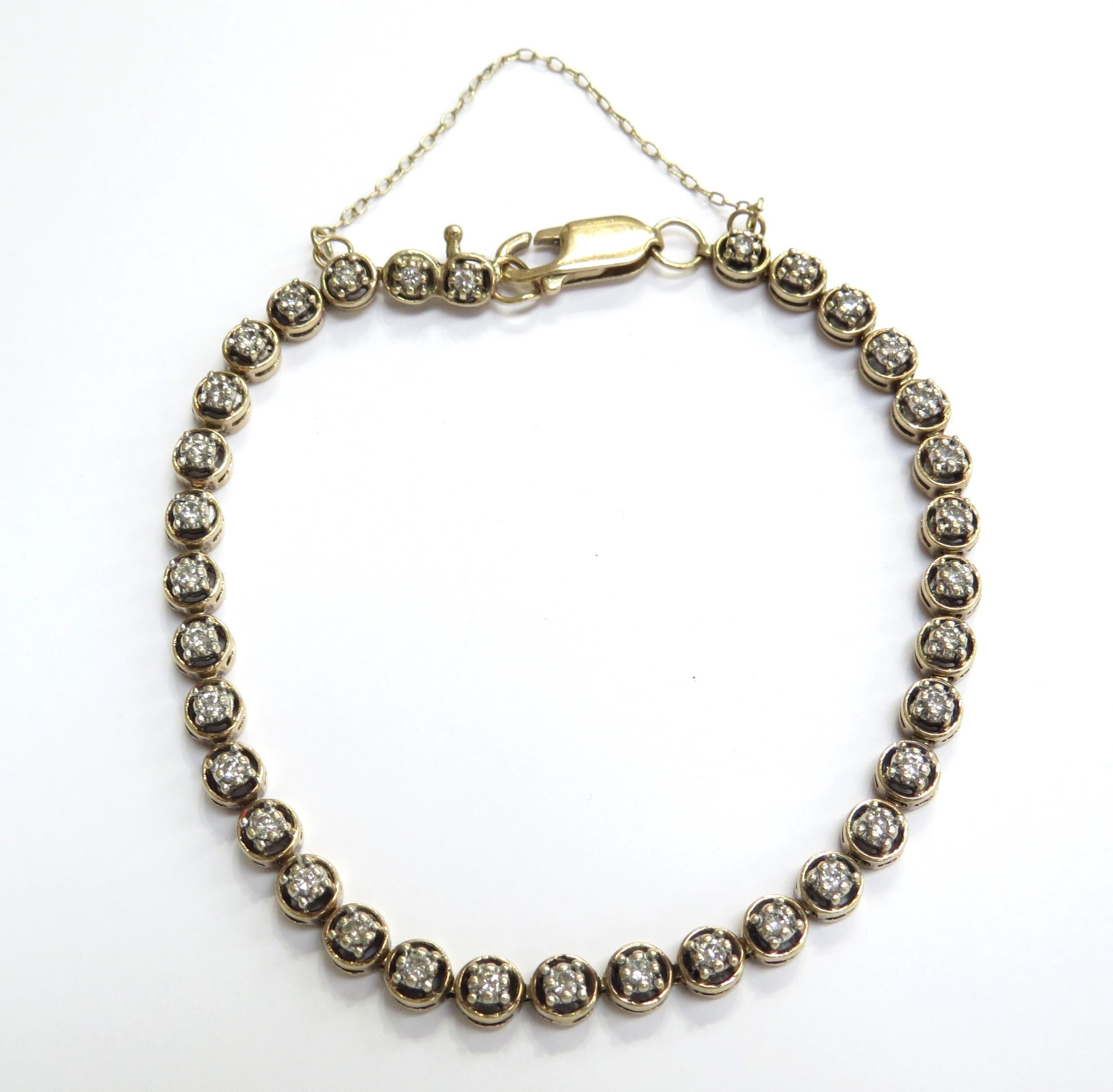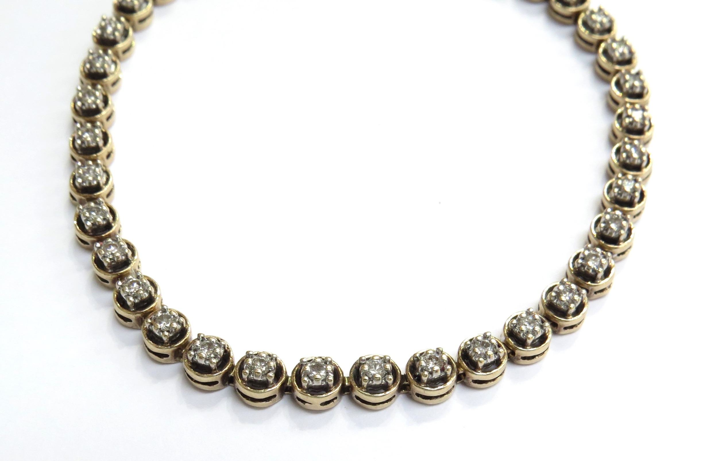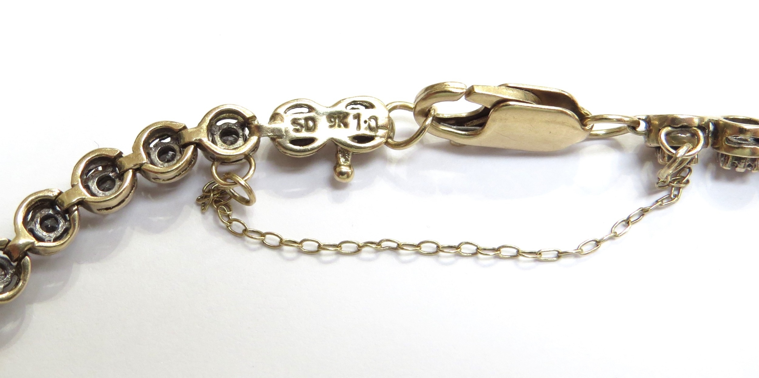 A diamond set bracelet 1ct total, stamped 9k, 18.5cm long, 10.5g