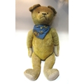 A mid 20th Century American golden mohair jointed teddy bear with amber glass eyes, with growler, black stitched nose, mouth and claws, with felt pads, 100cm tall