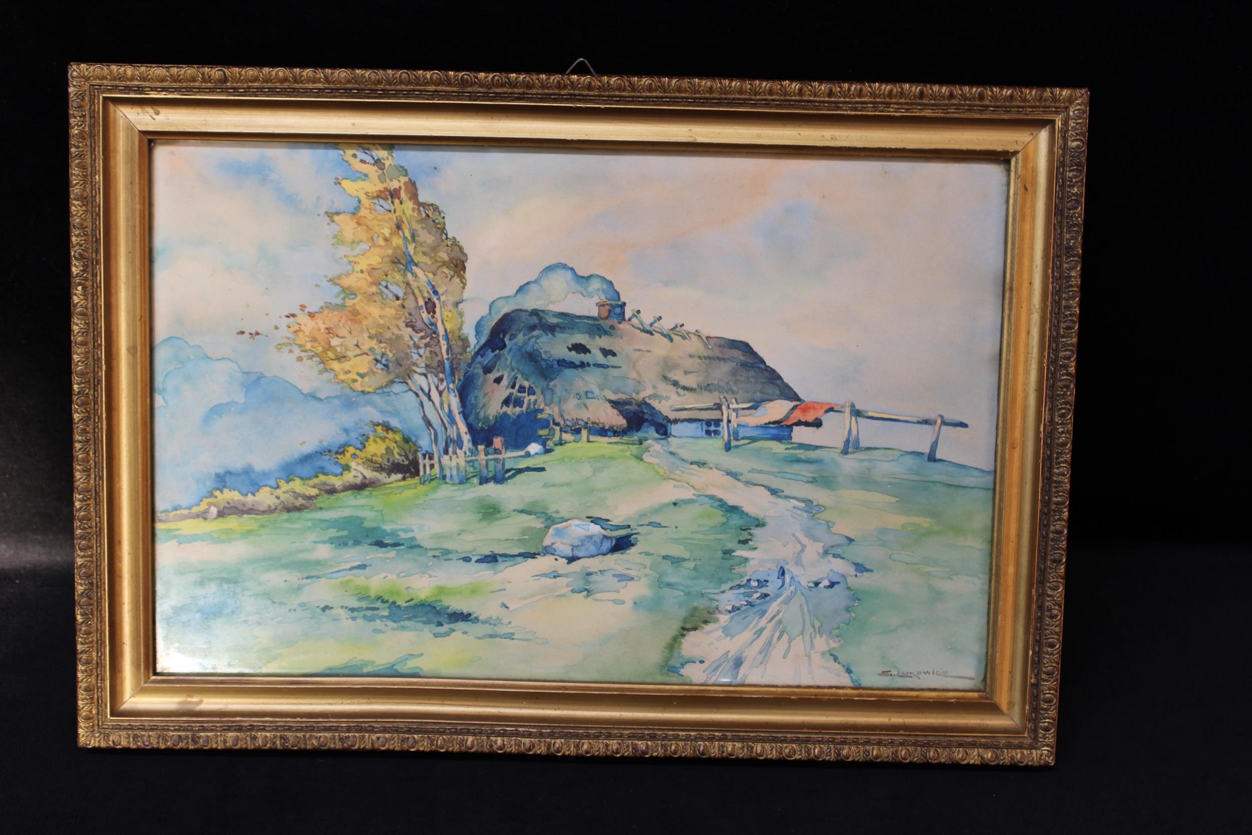 A gilt framed cottage picture - 51cm x 35cm