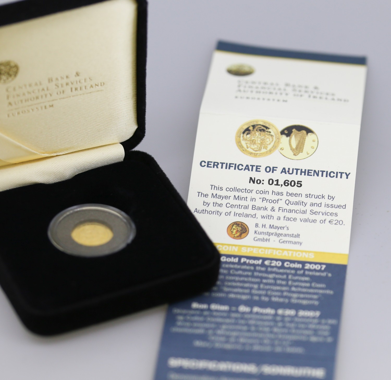 Fine Gold Proof 20 Euro Coin Celebrating Influence of Ireland's Celtic Culture Throughout Europe Issued with Europa Coin Programme Dated 2007 Encapsulated with Original Presentation Case, Box and Certificate