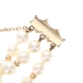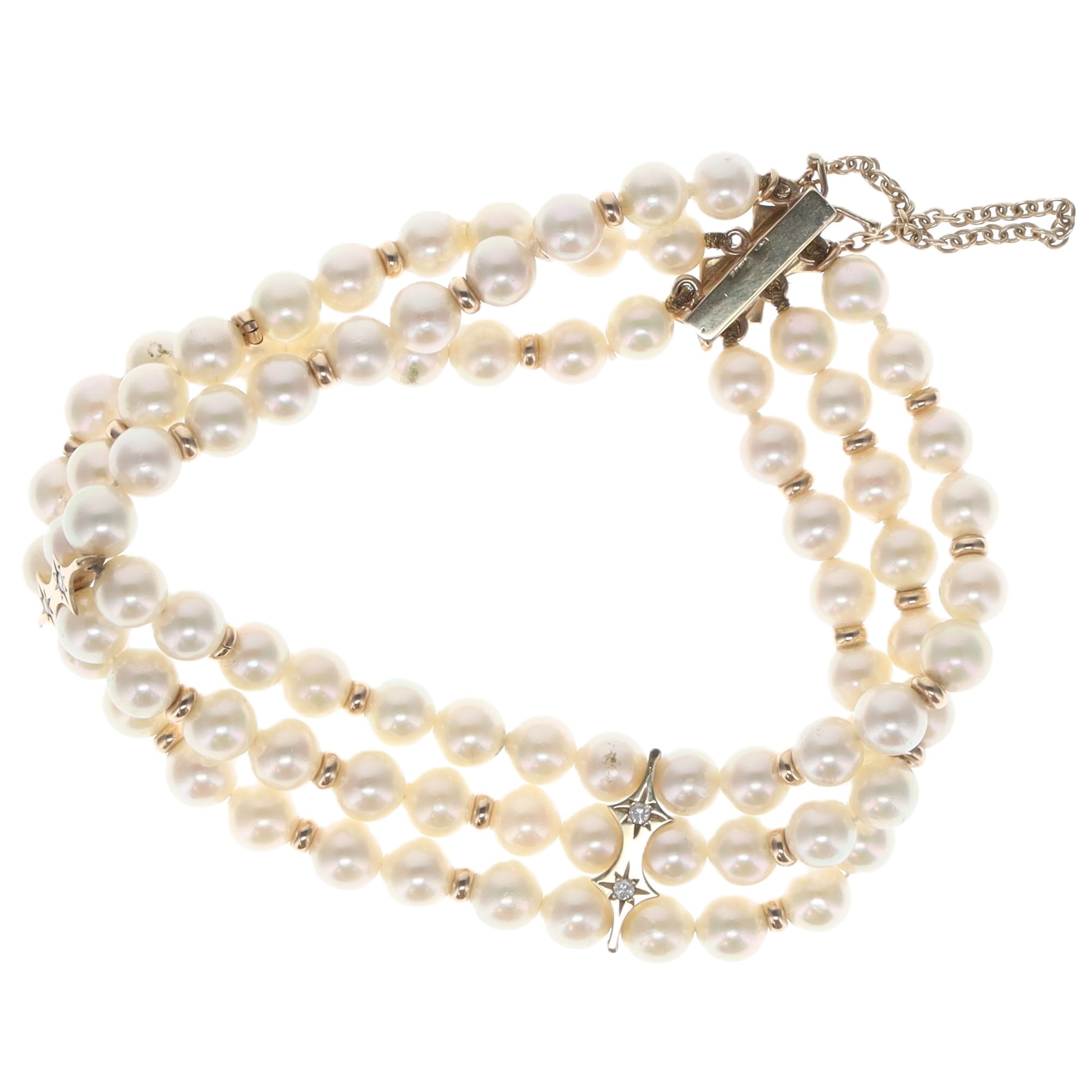 Pearl and Diamond Multistrand 9ct Gold Bracelet, 26g