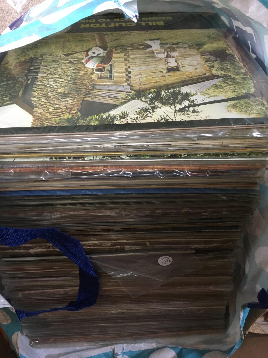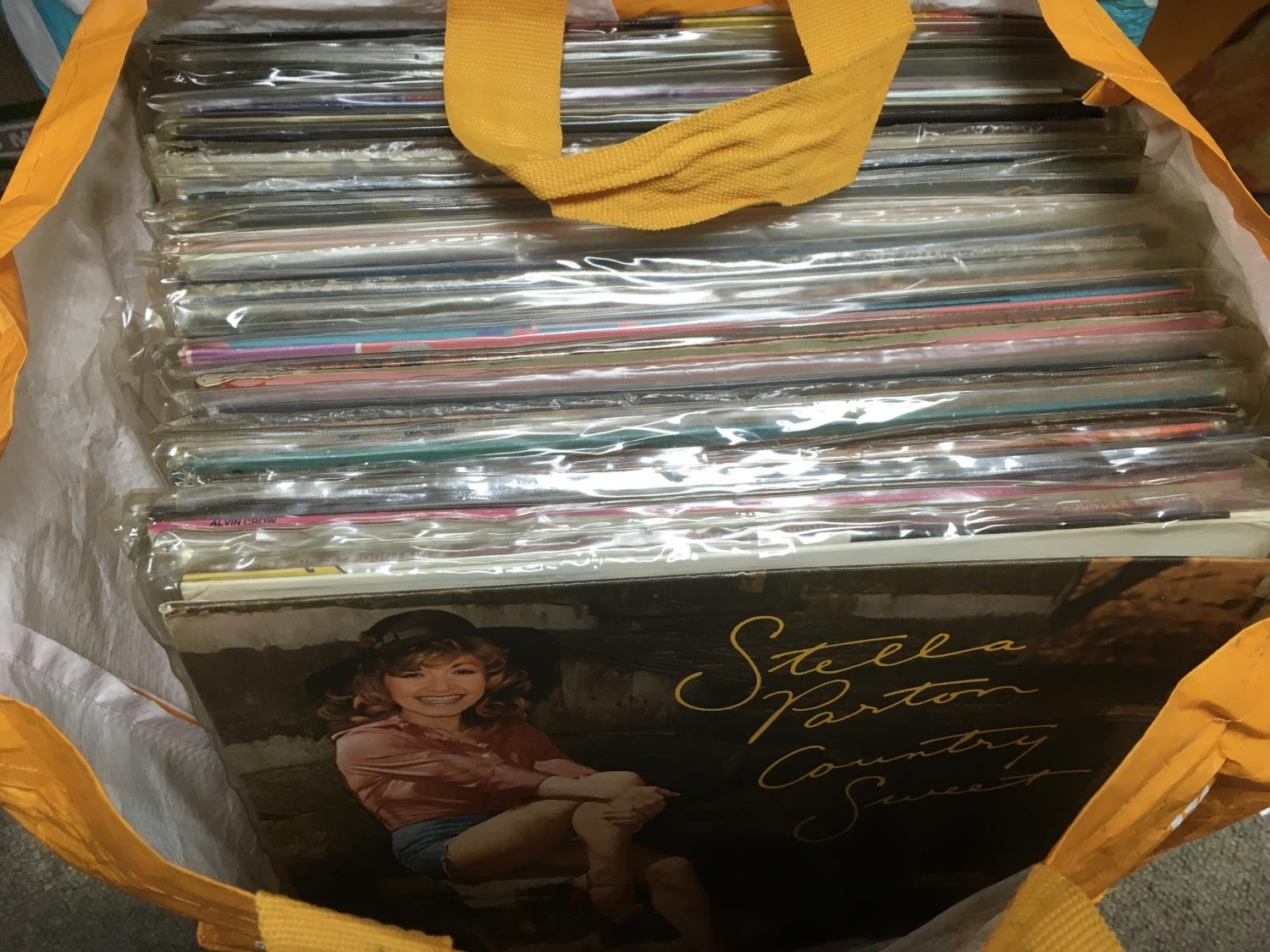 Three bags containing a large collection of country music LPs.