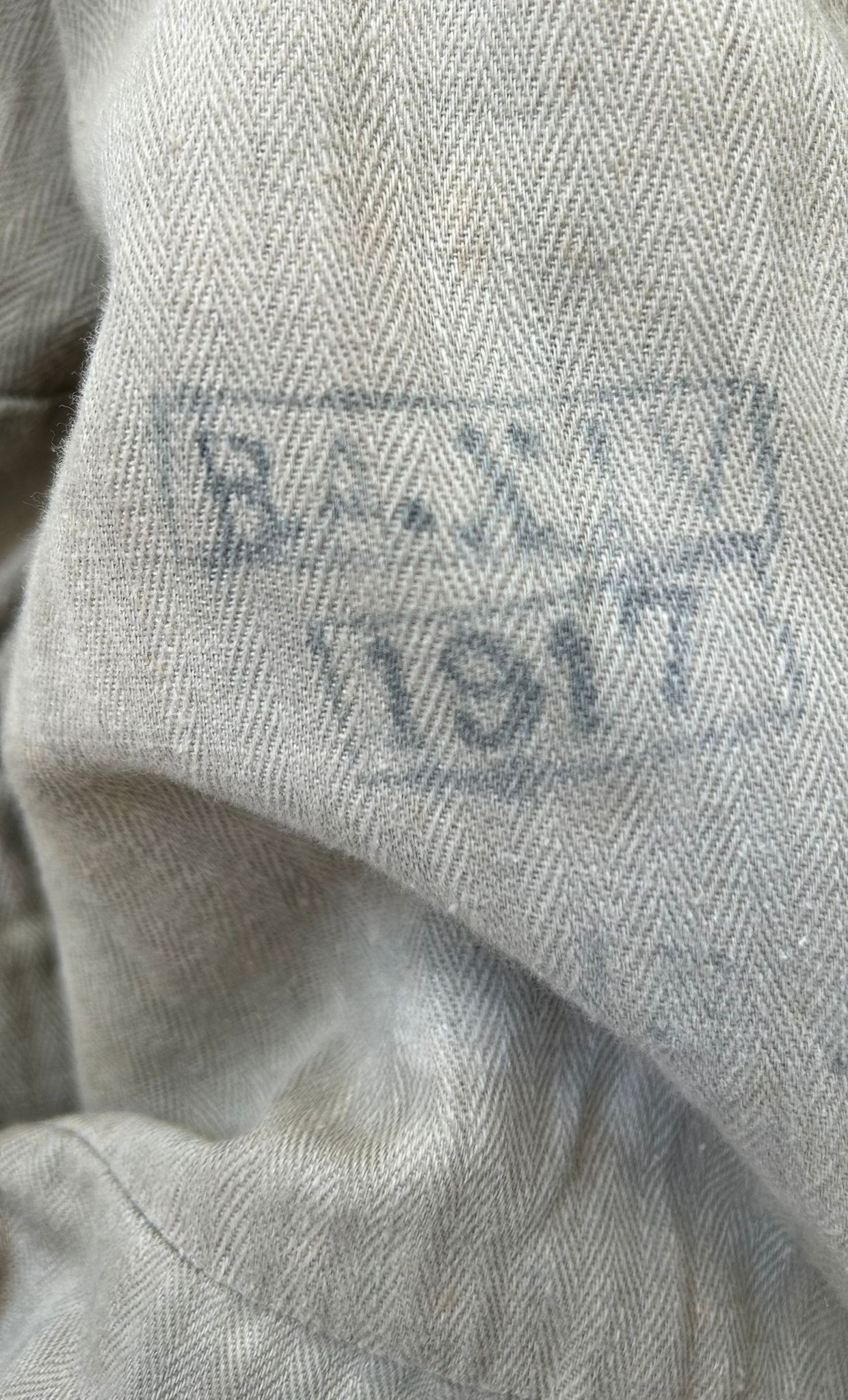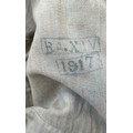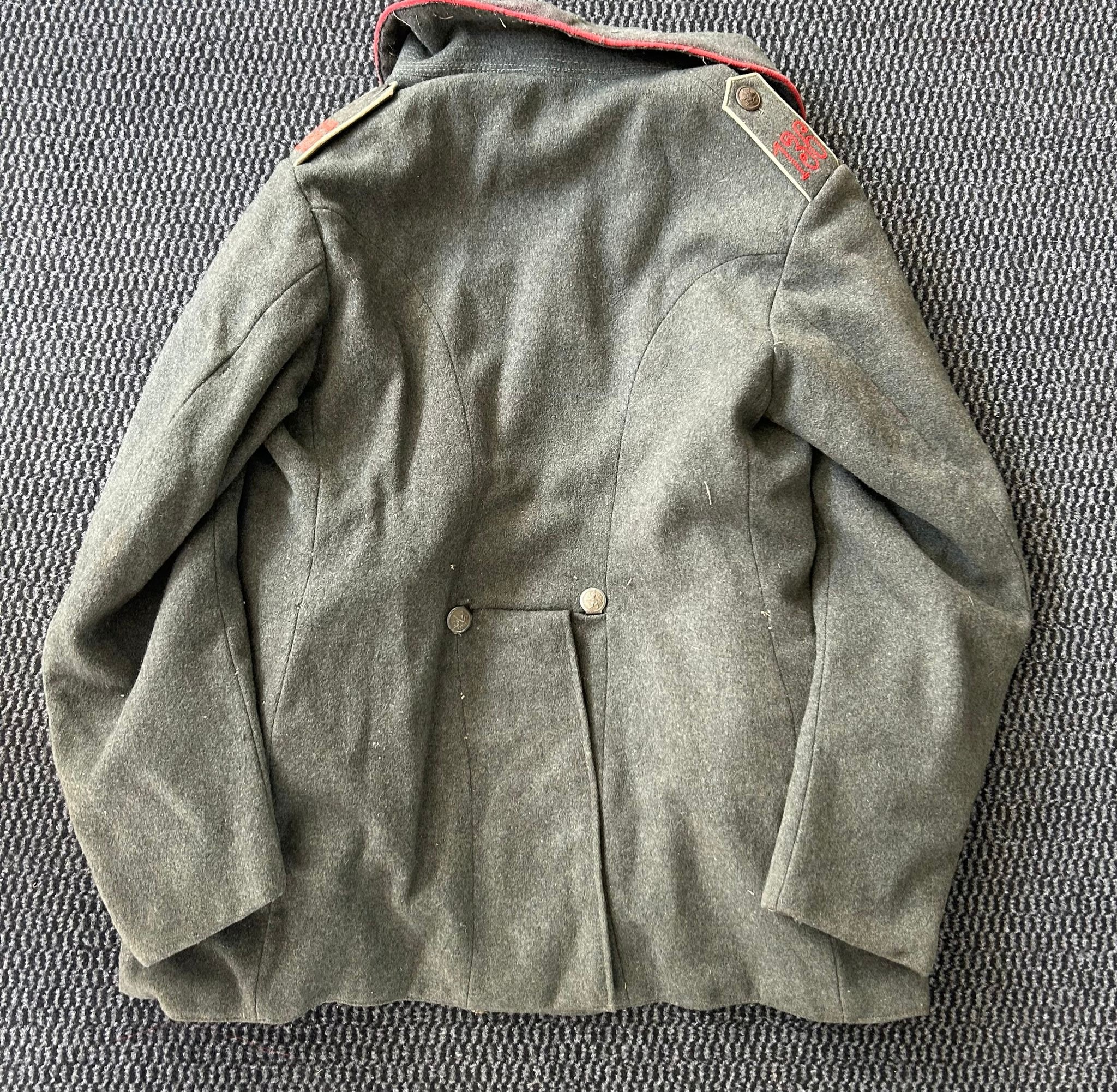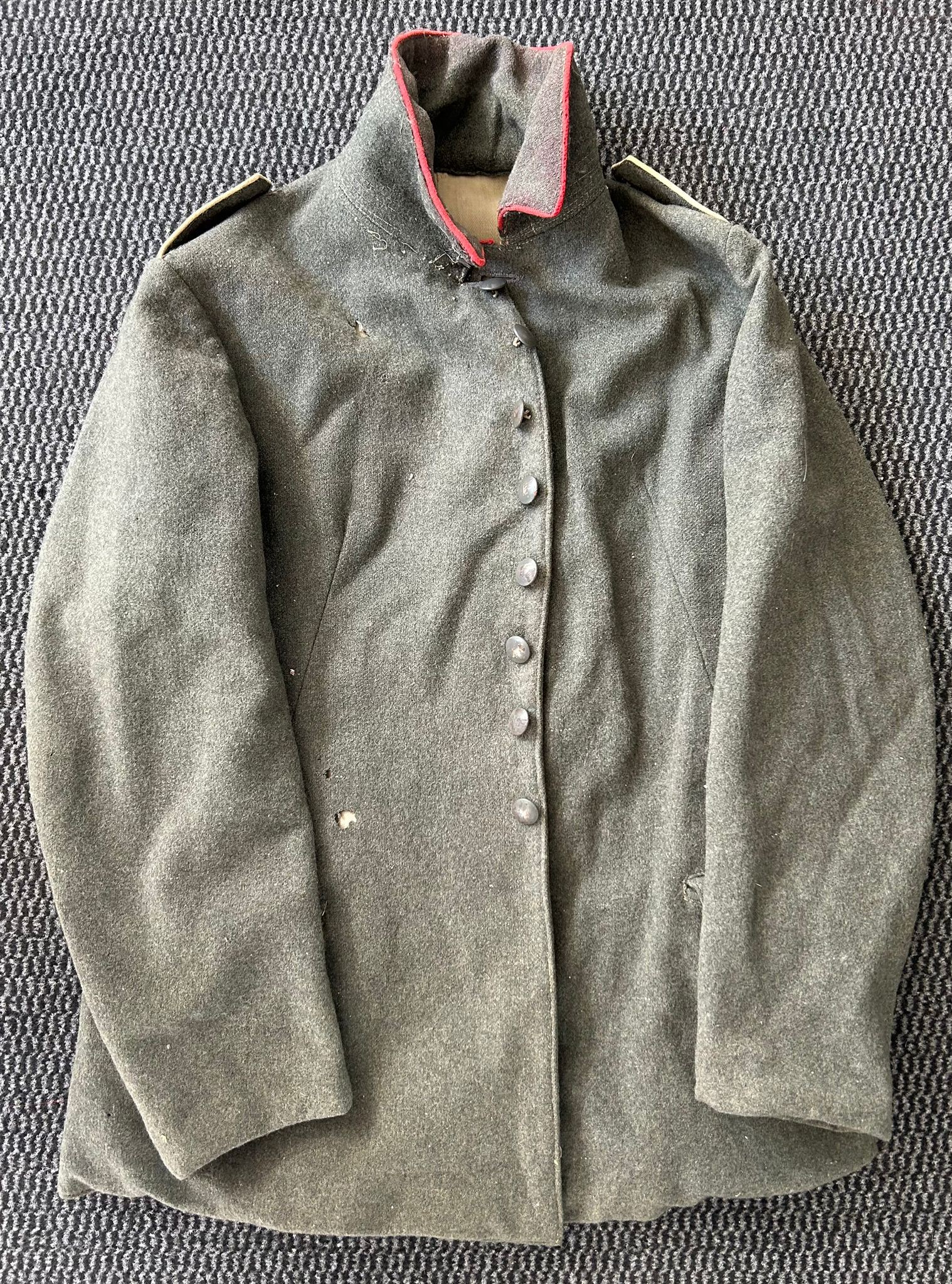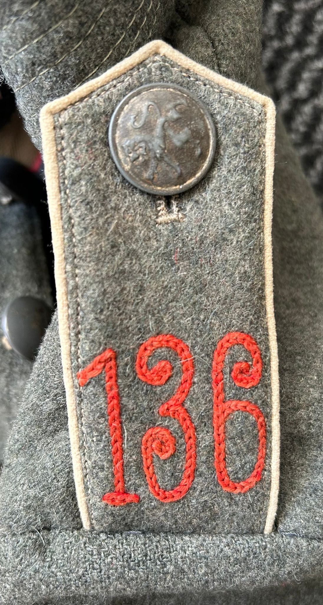 WW1 German army infantry tunic with 136 shoulder boards dated inside 1917 and makers initials B.X.IV., some moth.