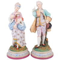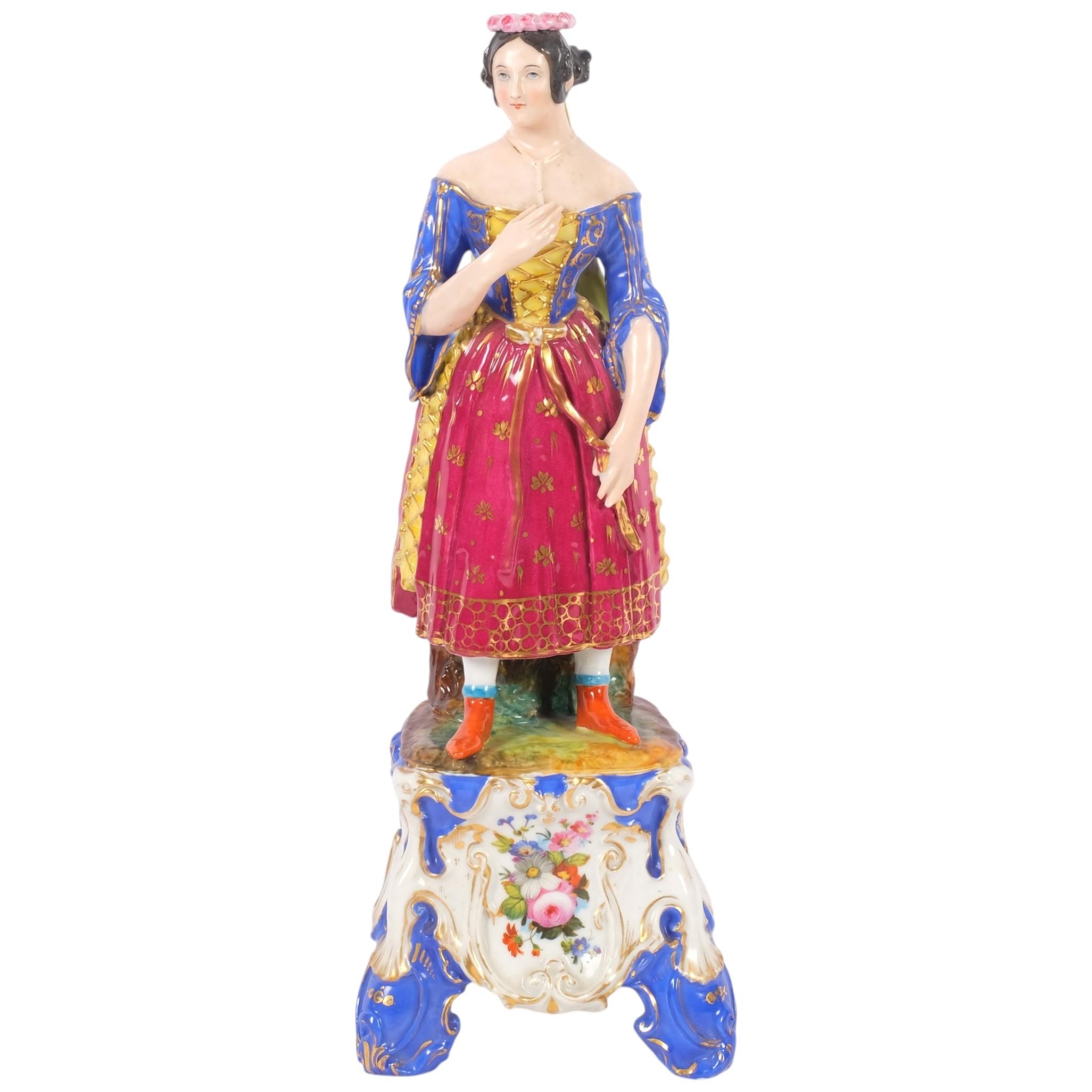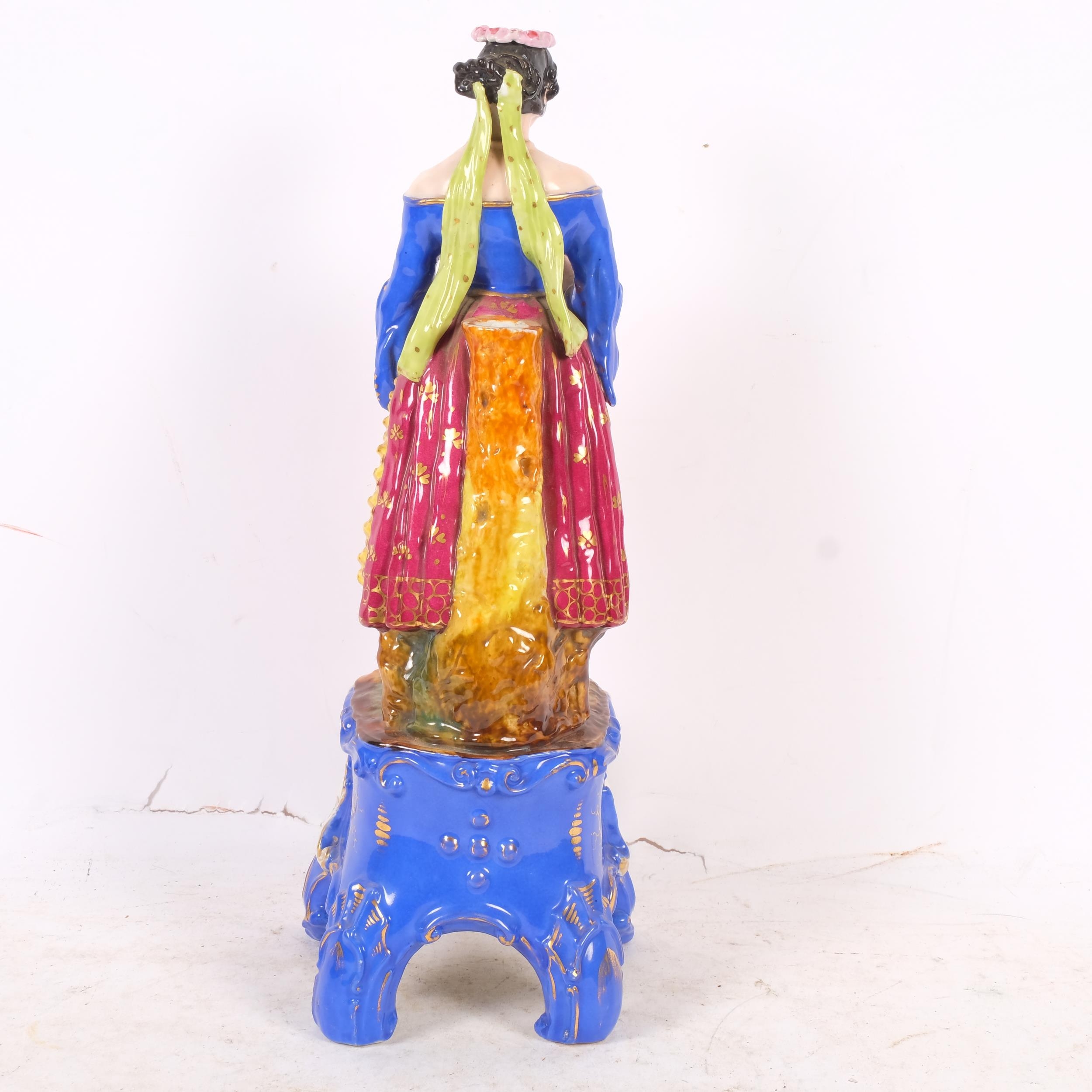 A Continental painted and glazed figural spill vase, gilded decoration, H38cm