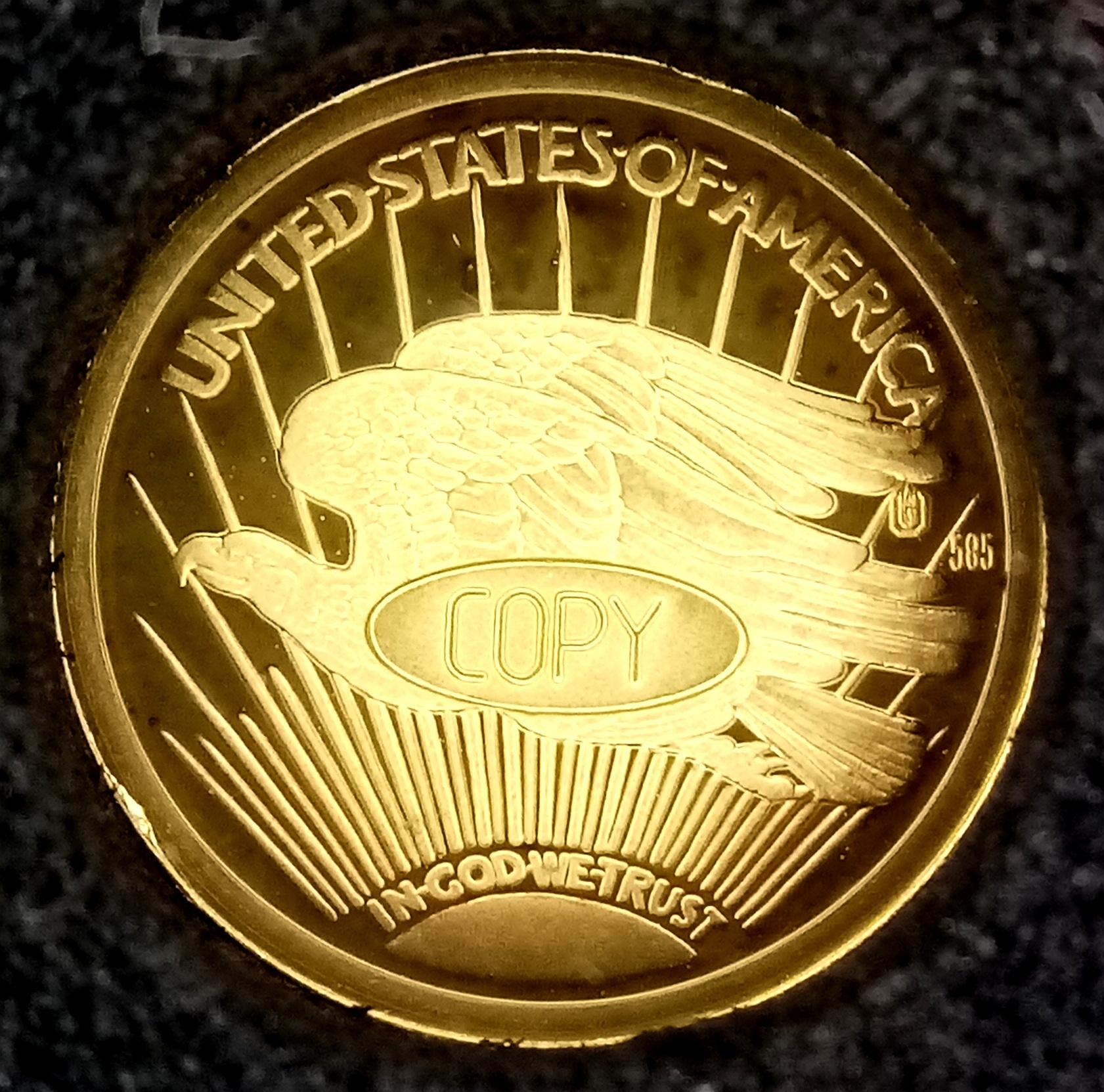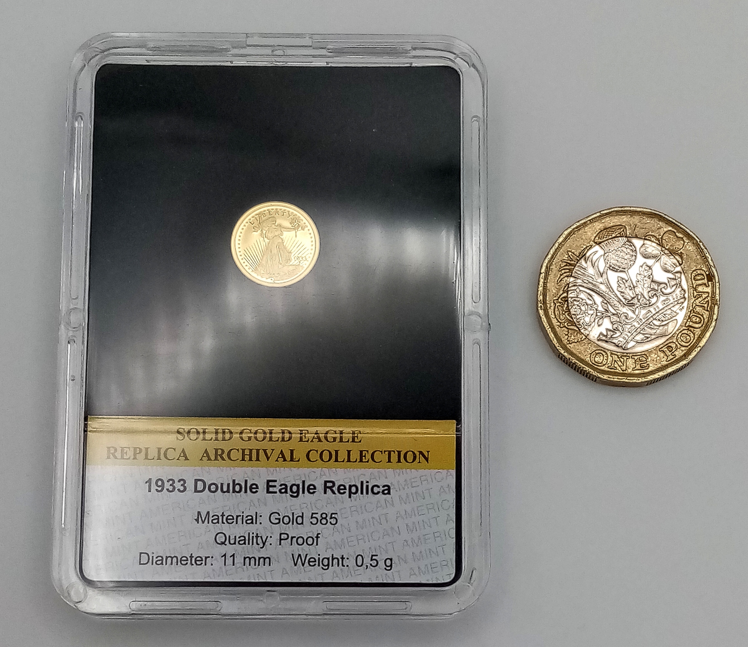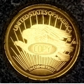 An American Mint 14K Yellow Gold Replica Double Eagle Coin. Limited edition, proof, encapsulated with COA and case.