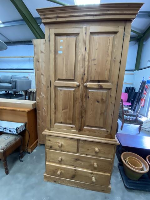 Pine 2 door/4 drawer wardrobe with hanging rail to the interior 204H 95W 56D