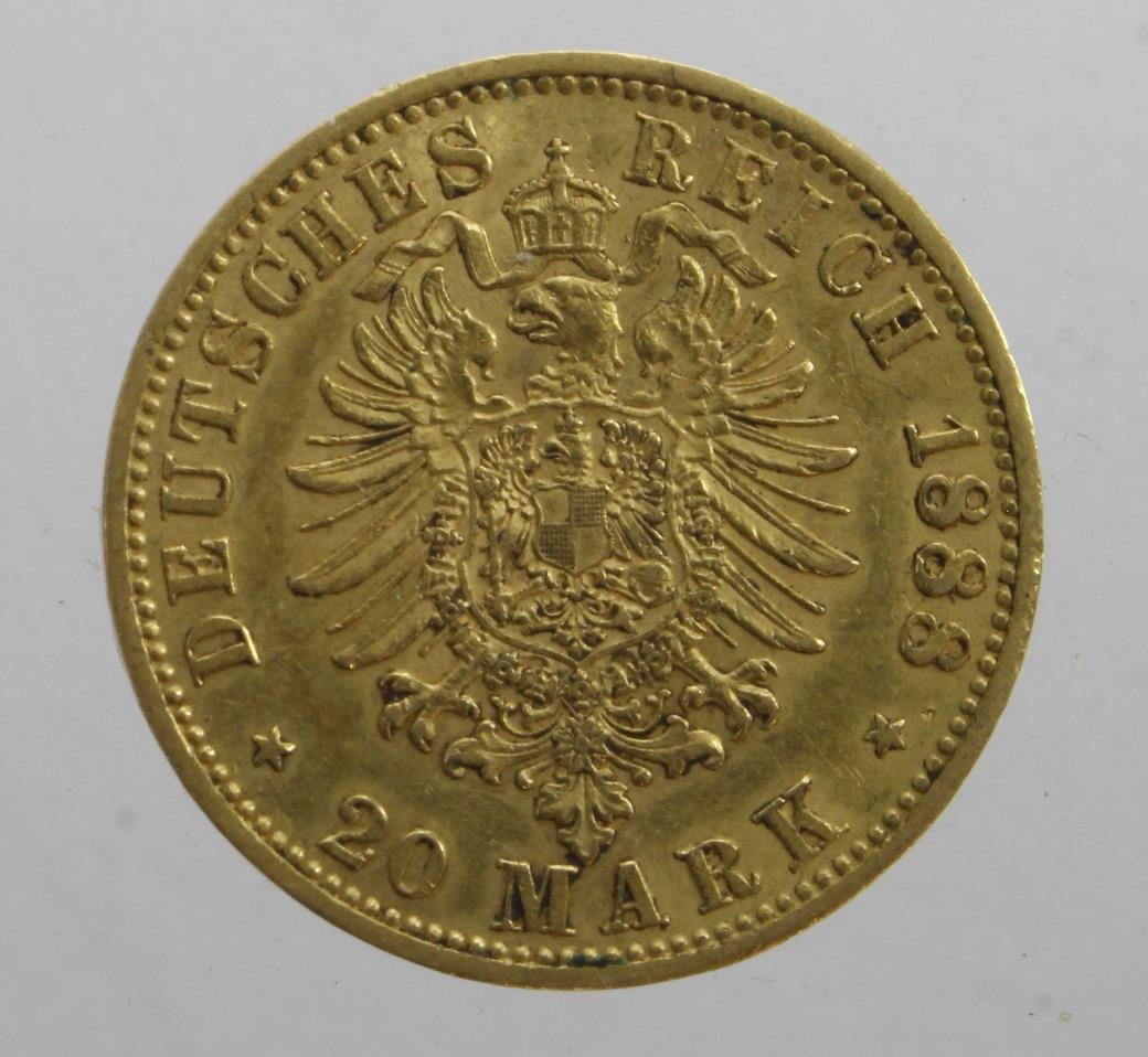 German States, Prussia gold 20 Mark 1888A, GVF (0.2305 troy oz AGW)