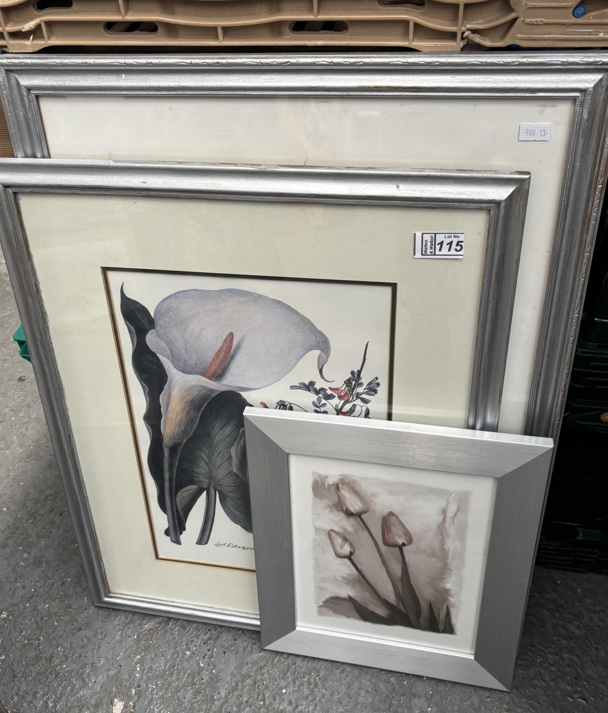 3 Framed and glazed floral prints