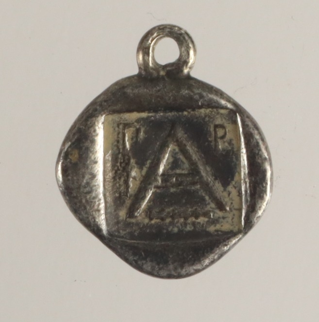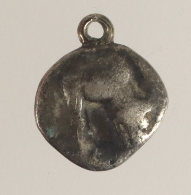 Ancient Greek: Argolis, Argos silver Triobol 330-270 BC. Forepart of wolf at bay left. / Large A, club below, grapes to left. 2.47g. F/GF mounted with loop.