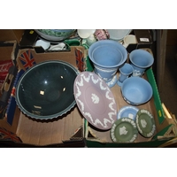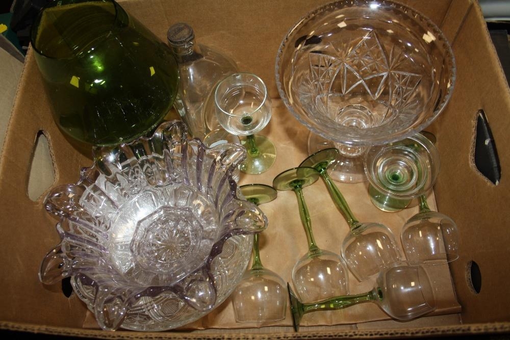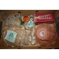 TWO TRAYS OF ASSORTED GLASSWARE TO INCLUDE A CAITHNESS VASE, AND CUT GLASS VASES