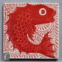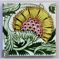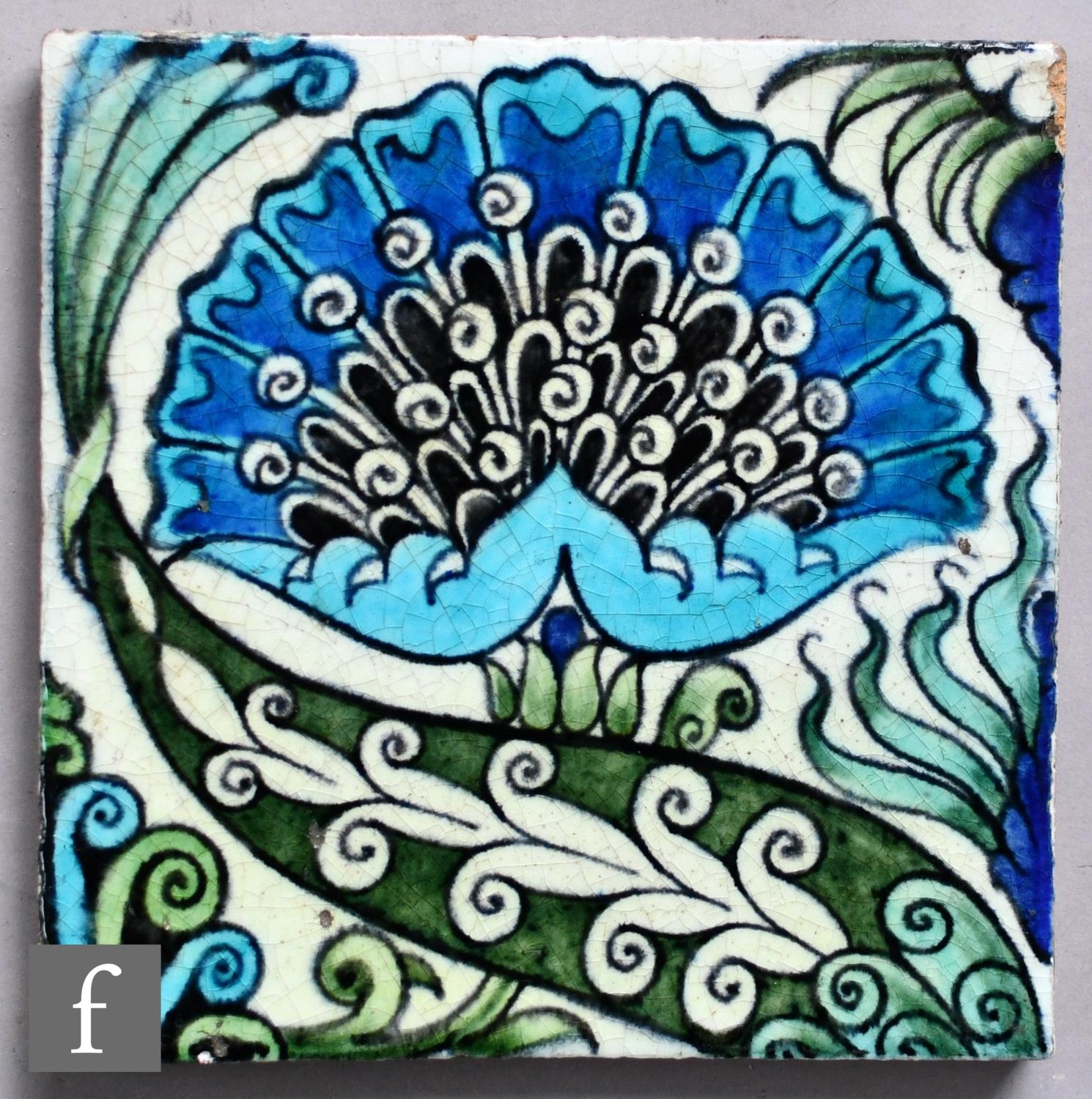 William de Morgan - An Arts and Crafts 6in plastic clay tile decorated in the Mongolian design, indistinct impressed mark, S/D.