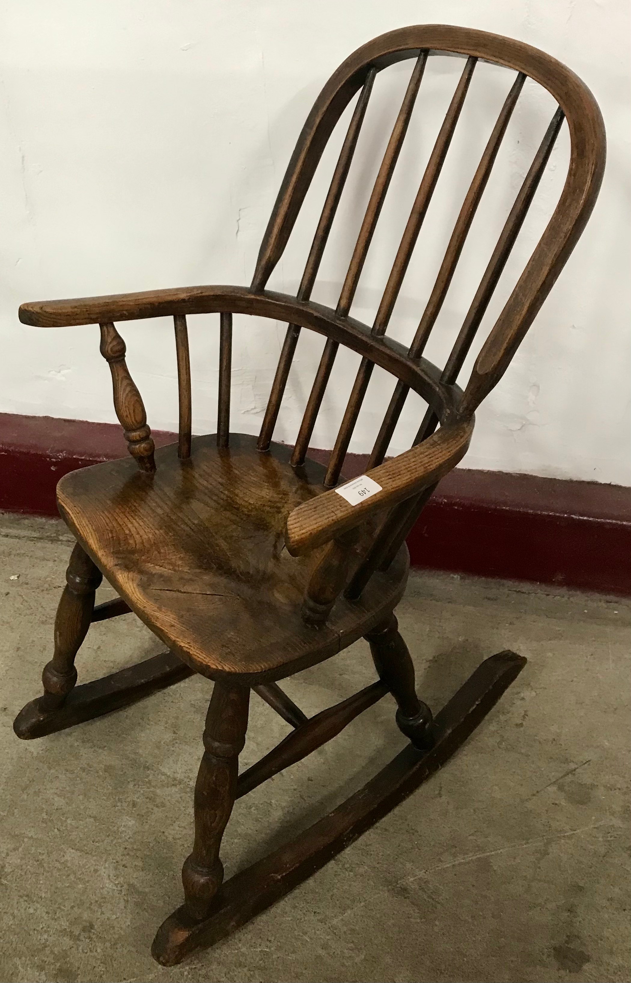 A 19th Century child's elm Windsor rocking chair