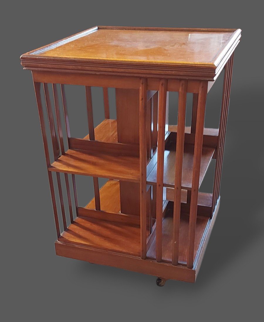 An Edwardian mahogany revolving bookcase, 81cms tall